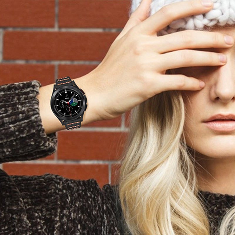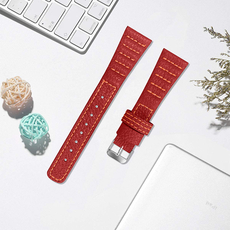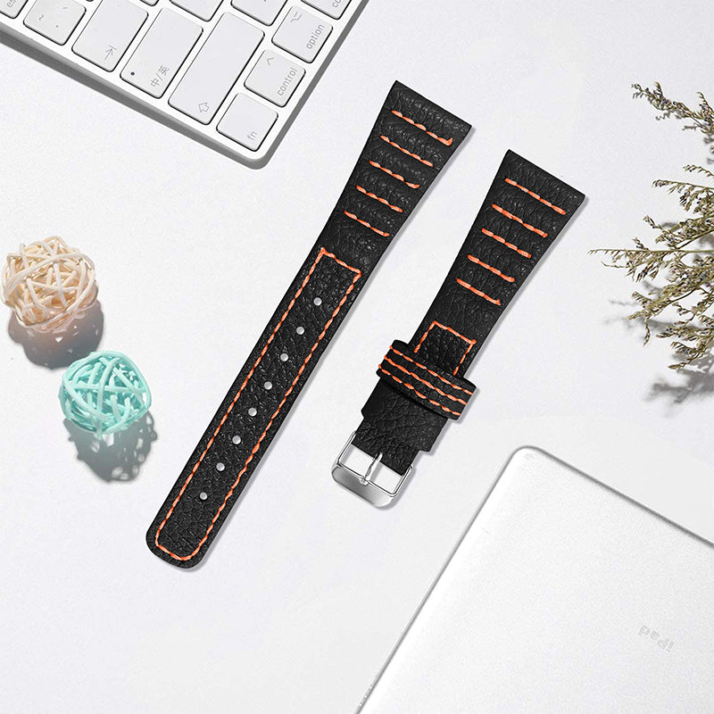 For Huami Amazfit Bip 1S/GTR 42mm/GTS/Bip Lite Soft Durable Top Layer Genuine Leather Wrist Strap Wave Stitching Lines Watchband