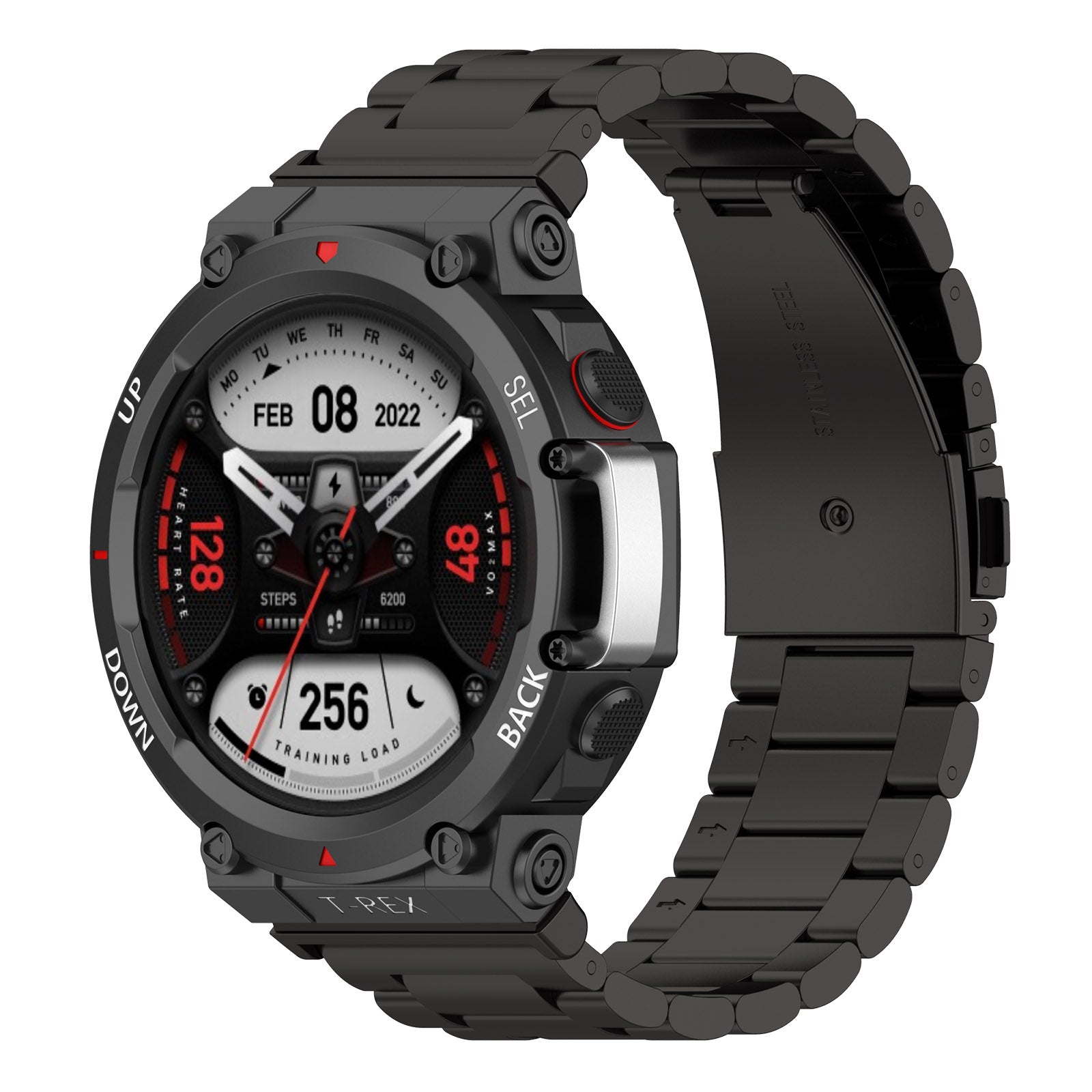 For Huami Amazfit T-Rex 2 Smart Watch Stainless Steel Watch Band Three Beads Strap Replacement with Tool