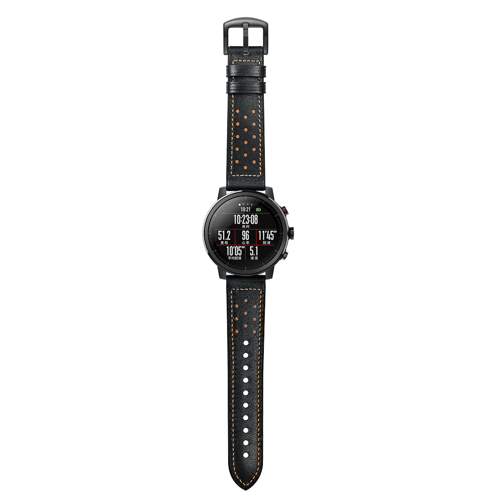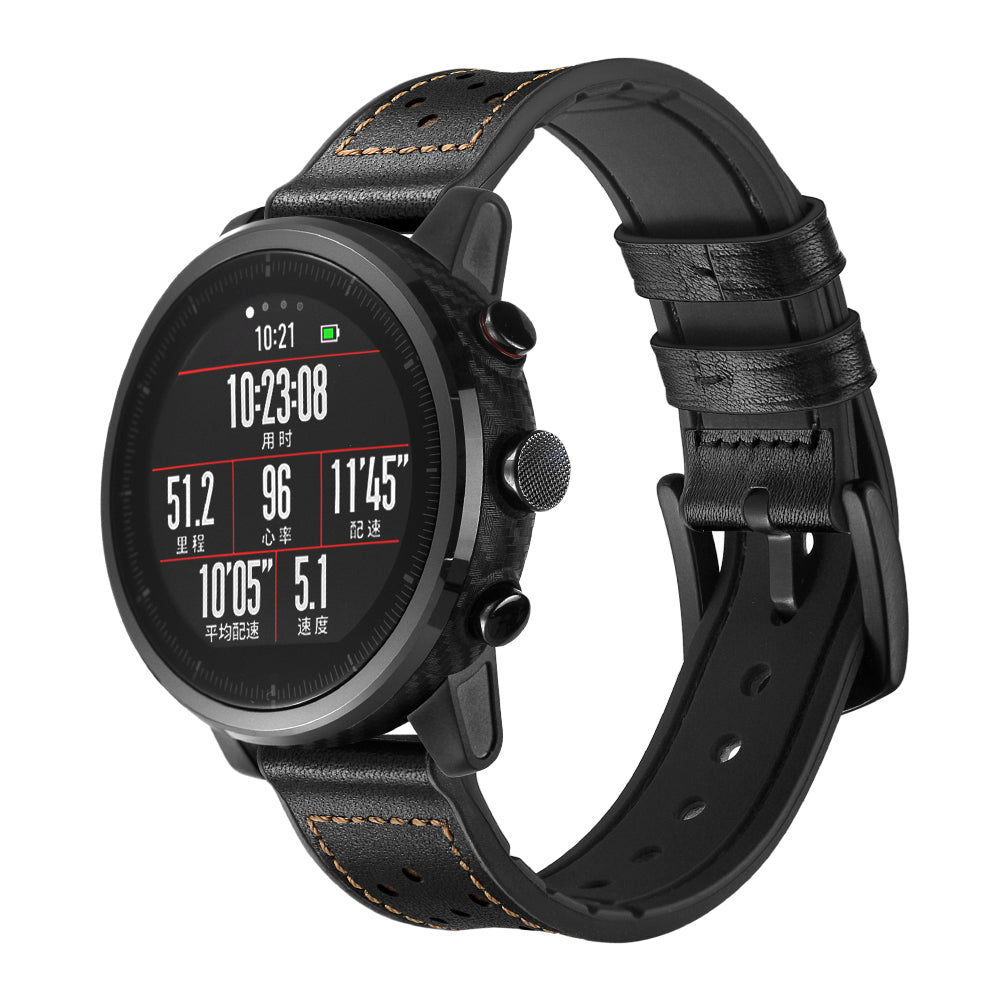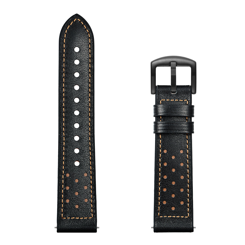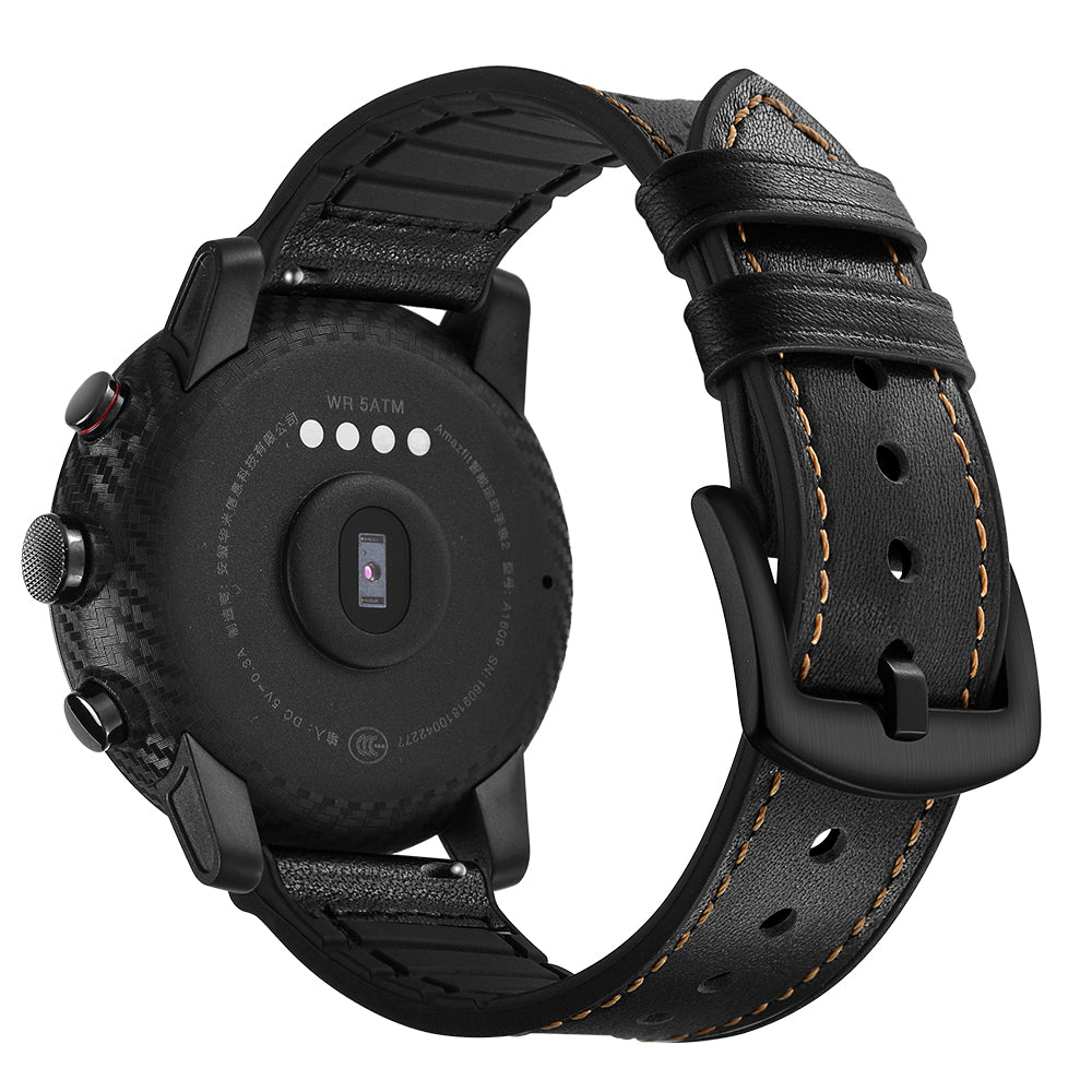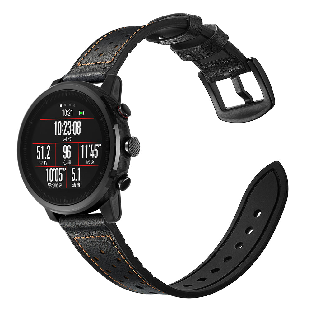 For Huami Amazfit Watch 2 with Holes Cowhide Silicone Surface Genuine Leather Smart Watch Band