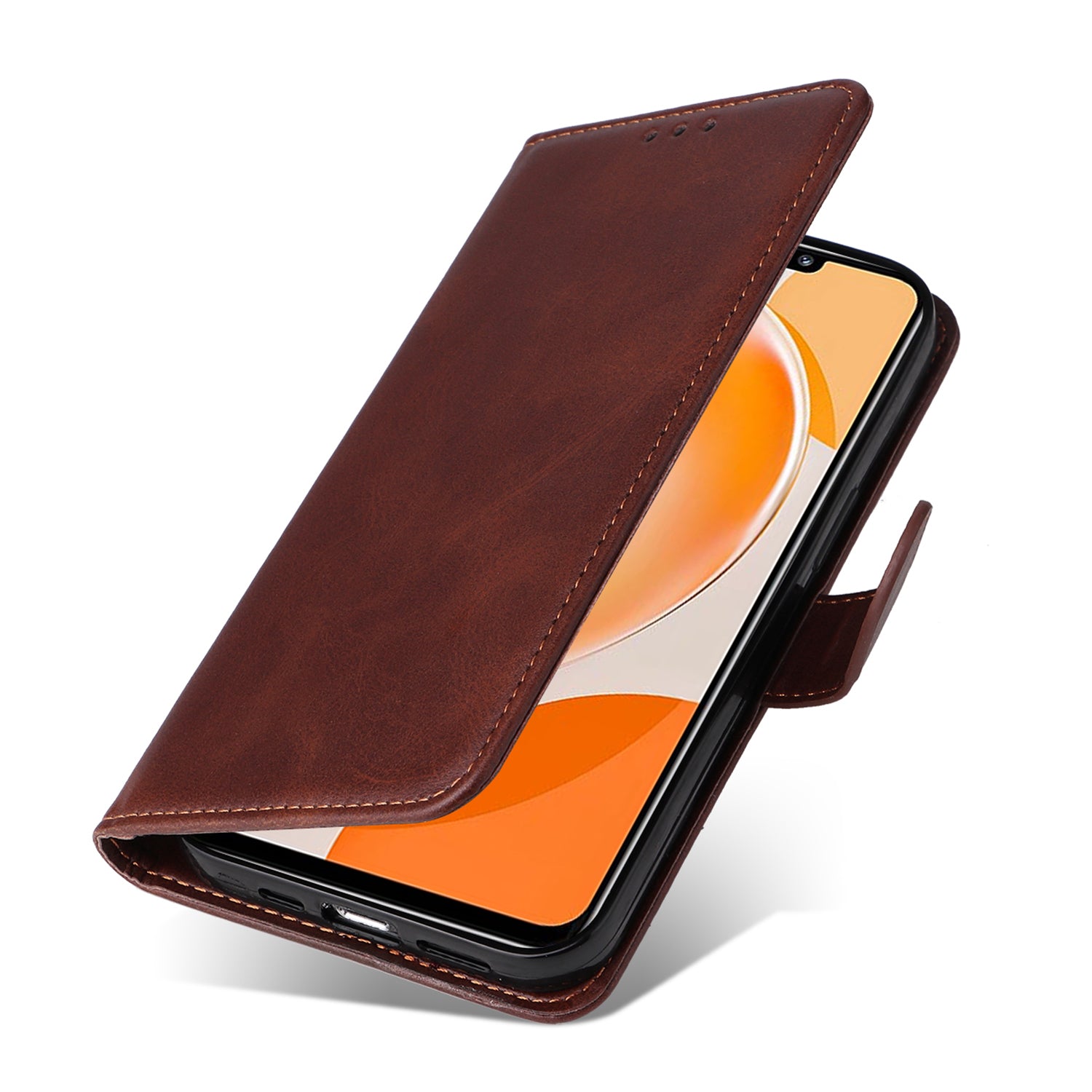 For Huawei Enjoy 60X Calf Texture Leather Case Wallet Stand Cell Phone Cover with Strap