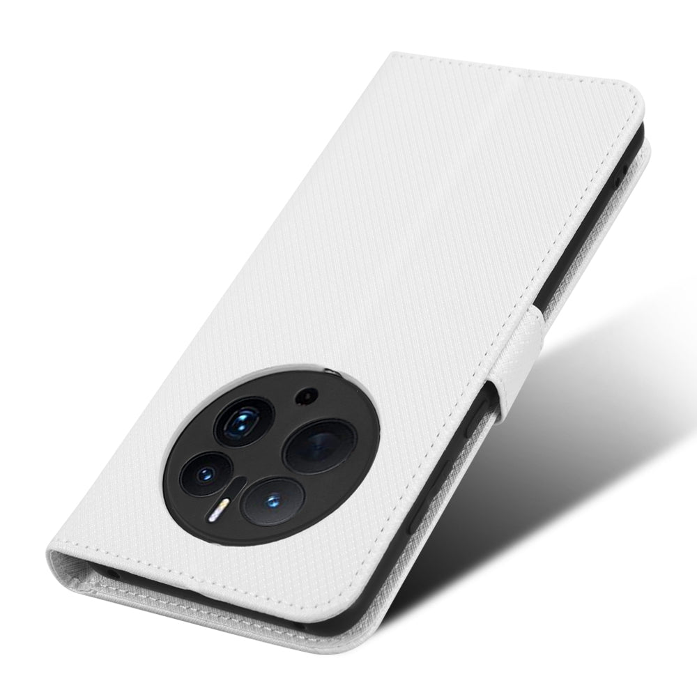 For Huawei Mate 50 Pro 4G Diamond Texture Phone Wallet Cover Anti-fingerprint PU Leather Hands-free Stand Case