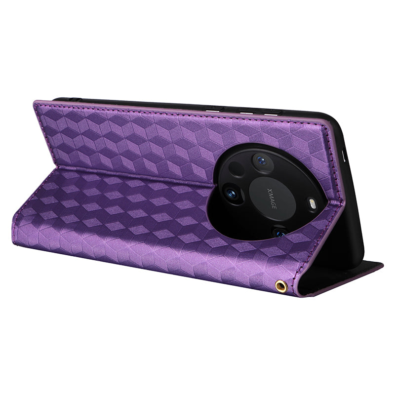 For Huawei Mate 60 Case Rhombus Imprinted PU Leather Wallet Phone Stand Cover