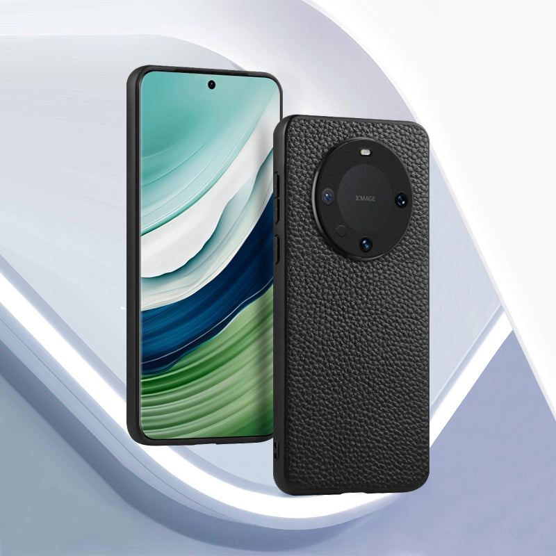 For Huawei Mate 60 PC+TPU Phone Case Genuine Cow Leather Coated Mobile Phone Protective Back Cover