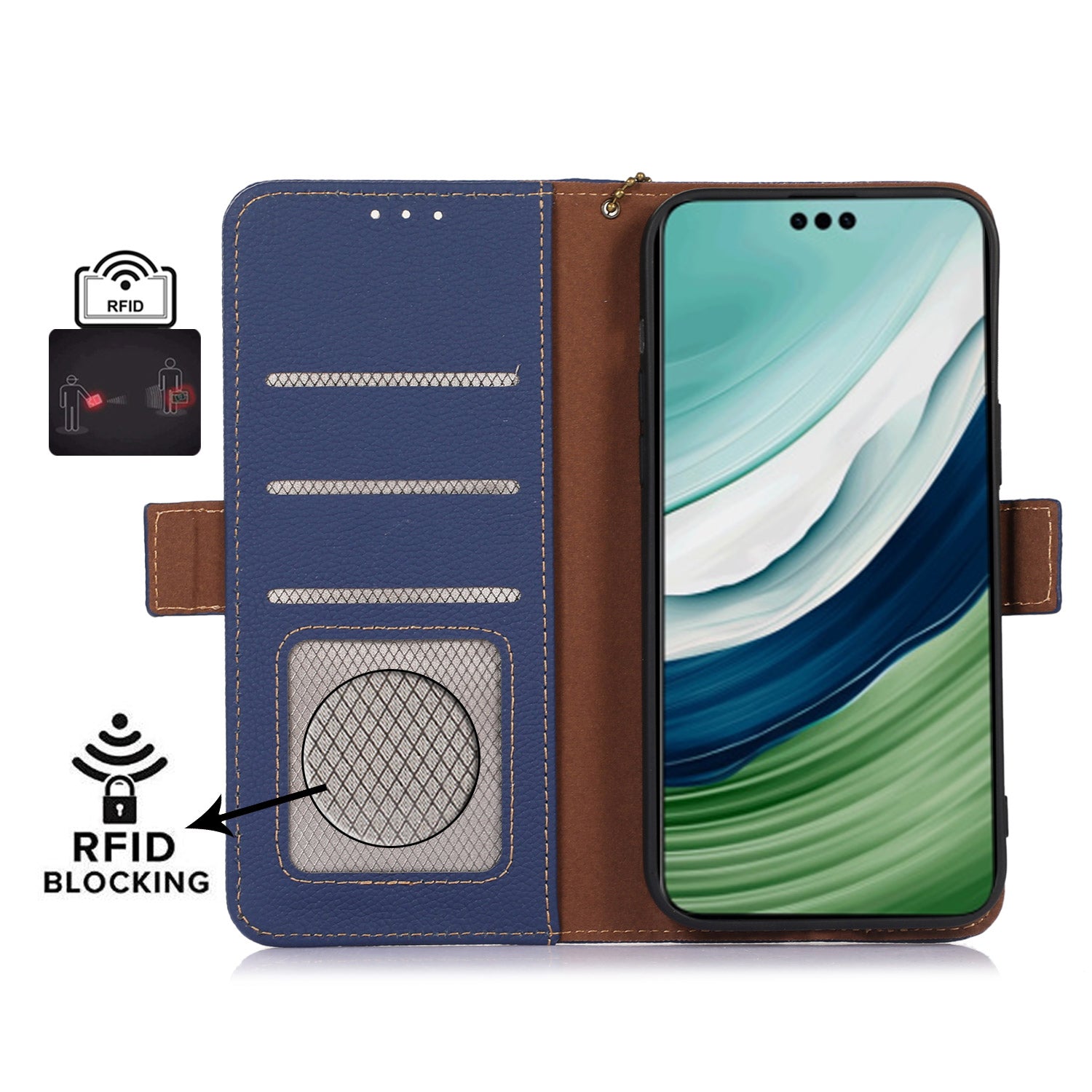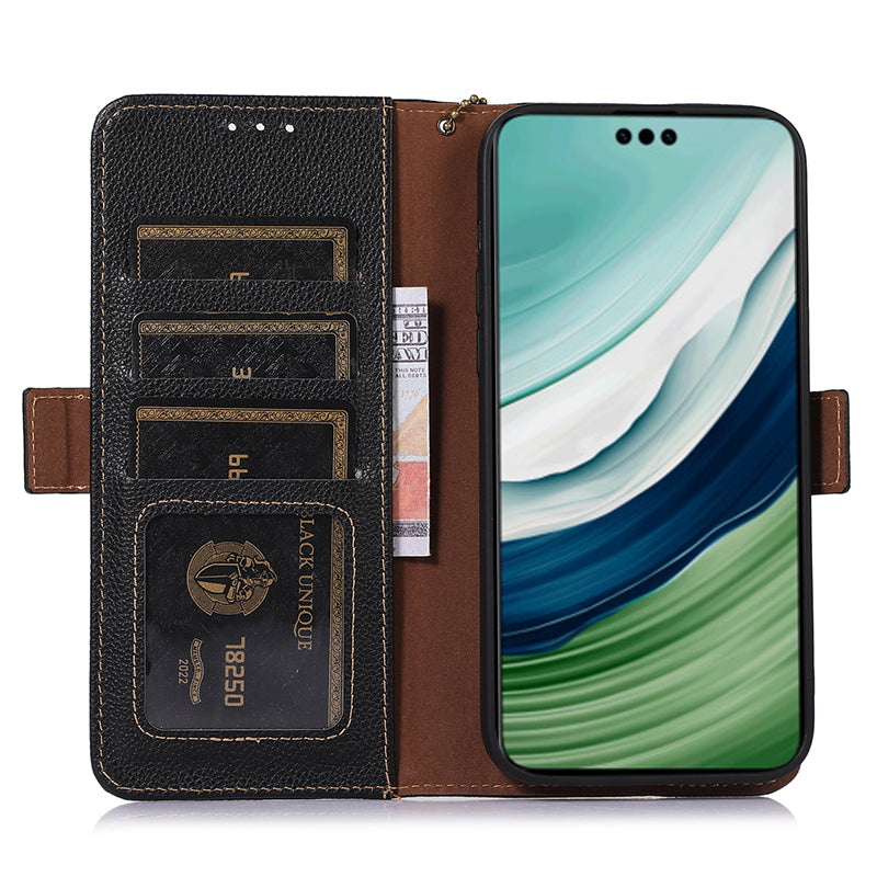For Huawei Mate 60 Pro RFID Blocking Wallet Stand Shell Genuine Cow Leather Anti-drop Phone Case