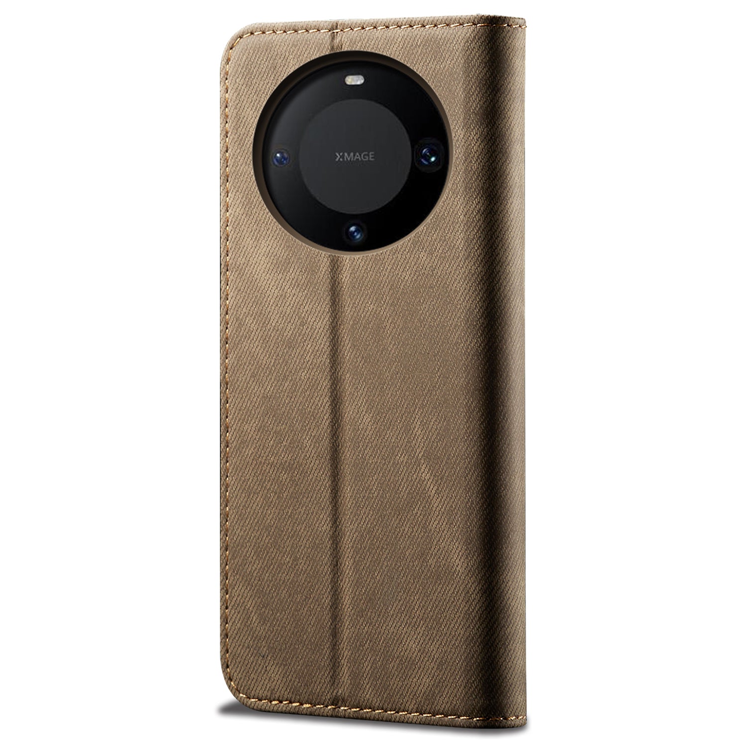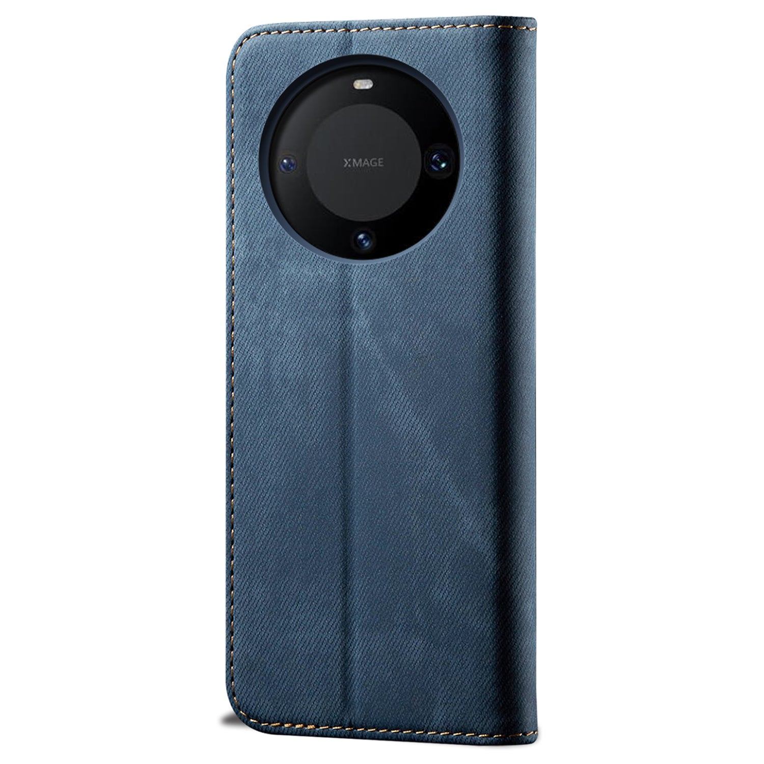 For Huawei Mate 60 Pro Wallet Phone Case PU Leather Jeans Cloth Texture Phone Stand Cover
