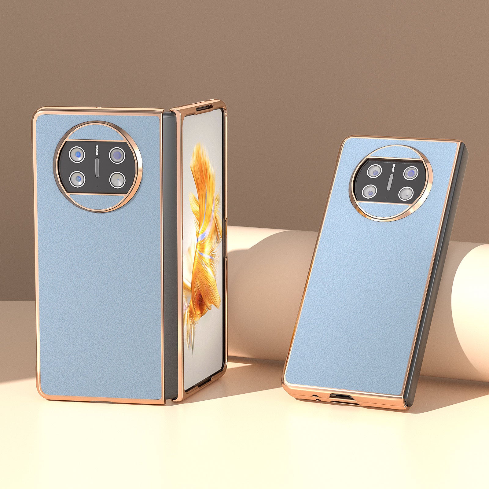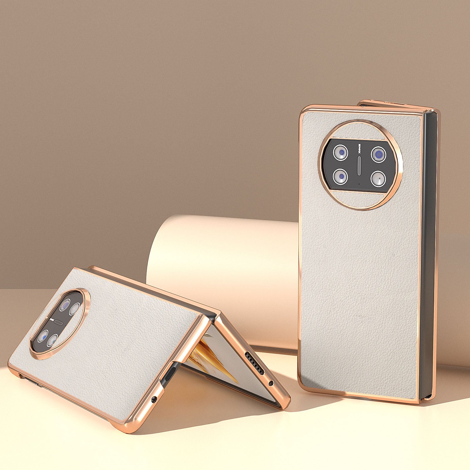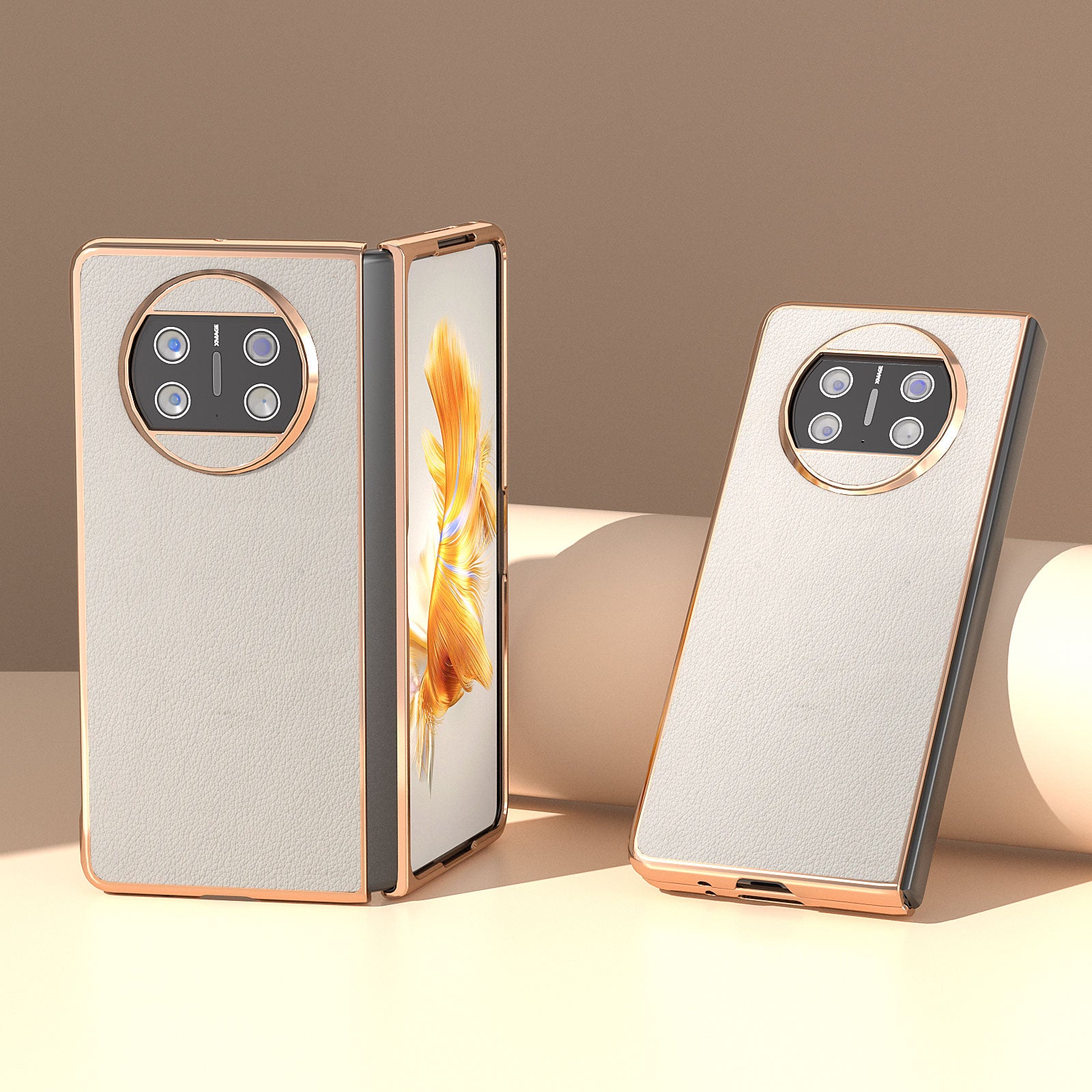 For Huawei Mate X3 5G Genuine Cow Leather + PC Case Electroplating Protective Phone Cover
