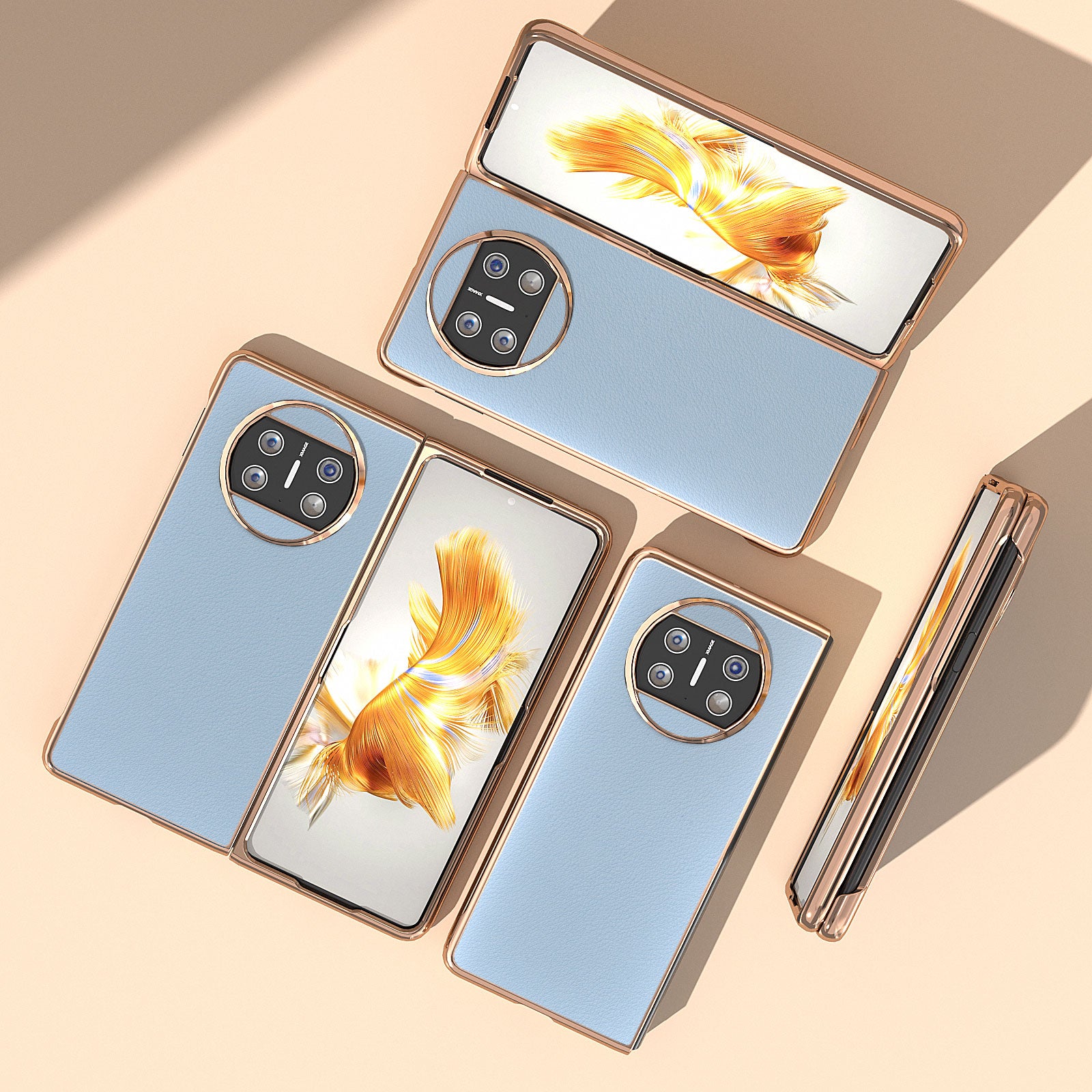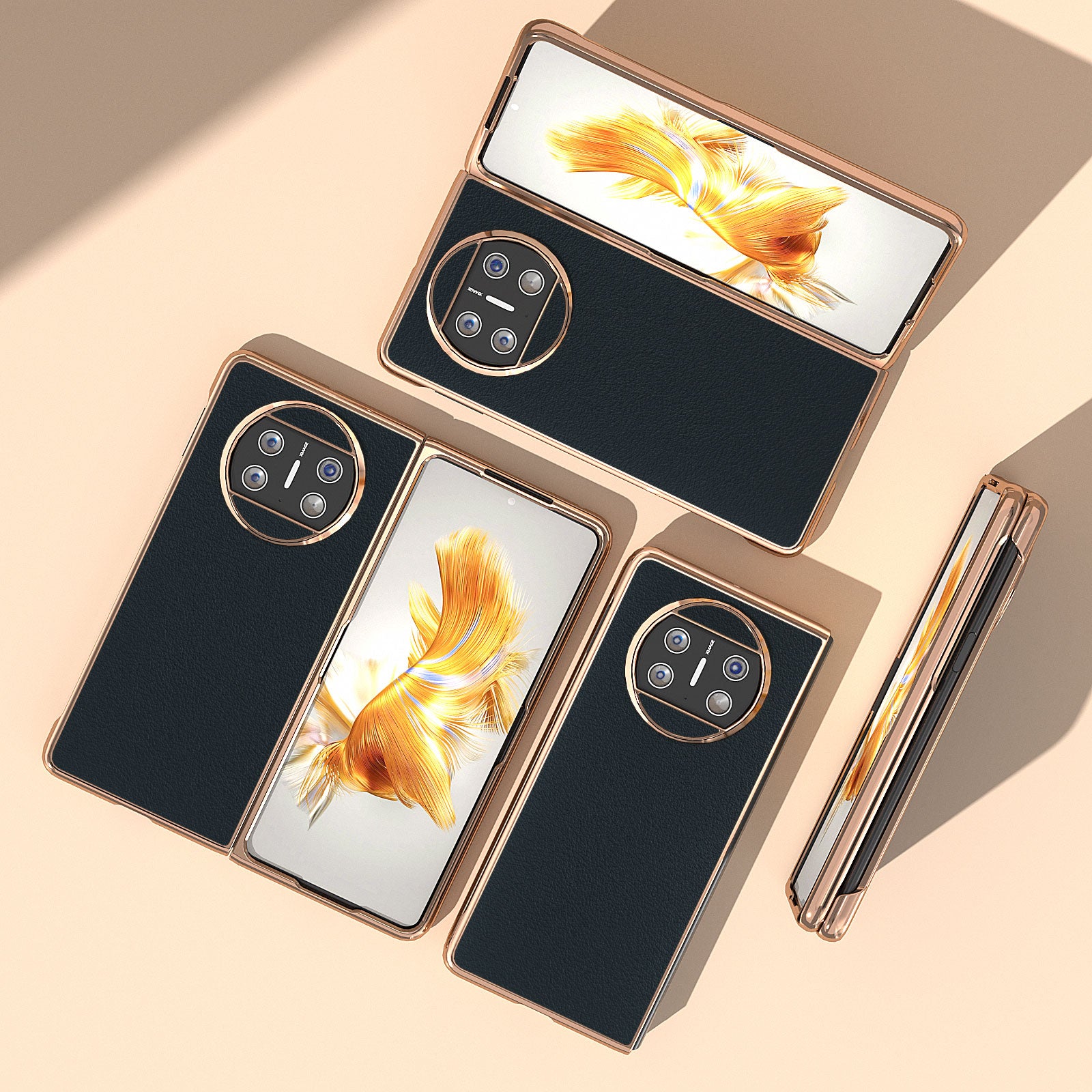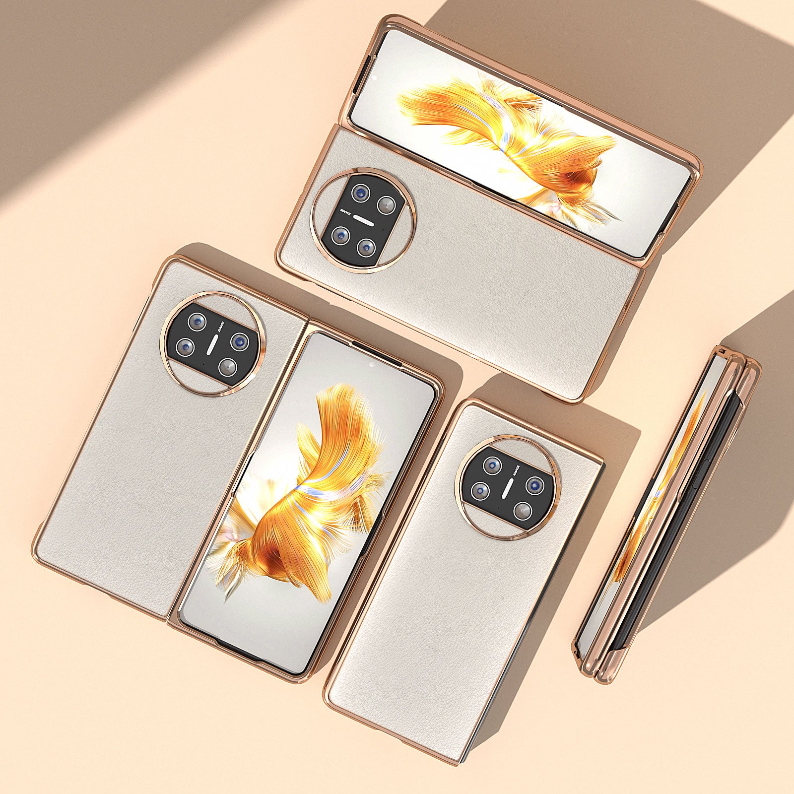 For Huawei Mate X3 5G Genuine Cow Leather + PC Case Electroplating Protective Phone Cover