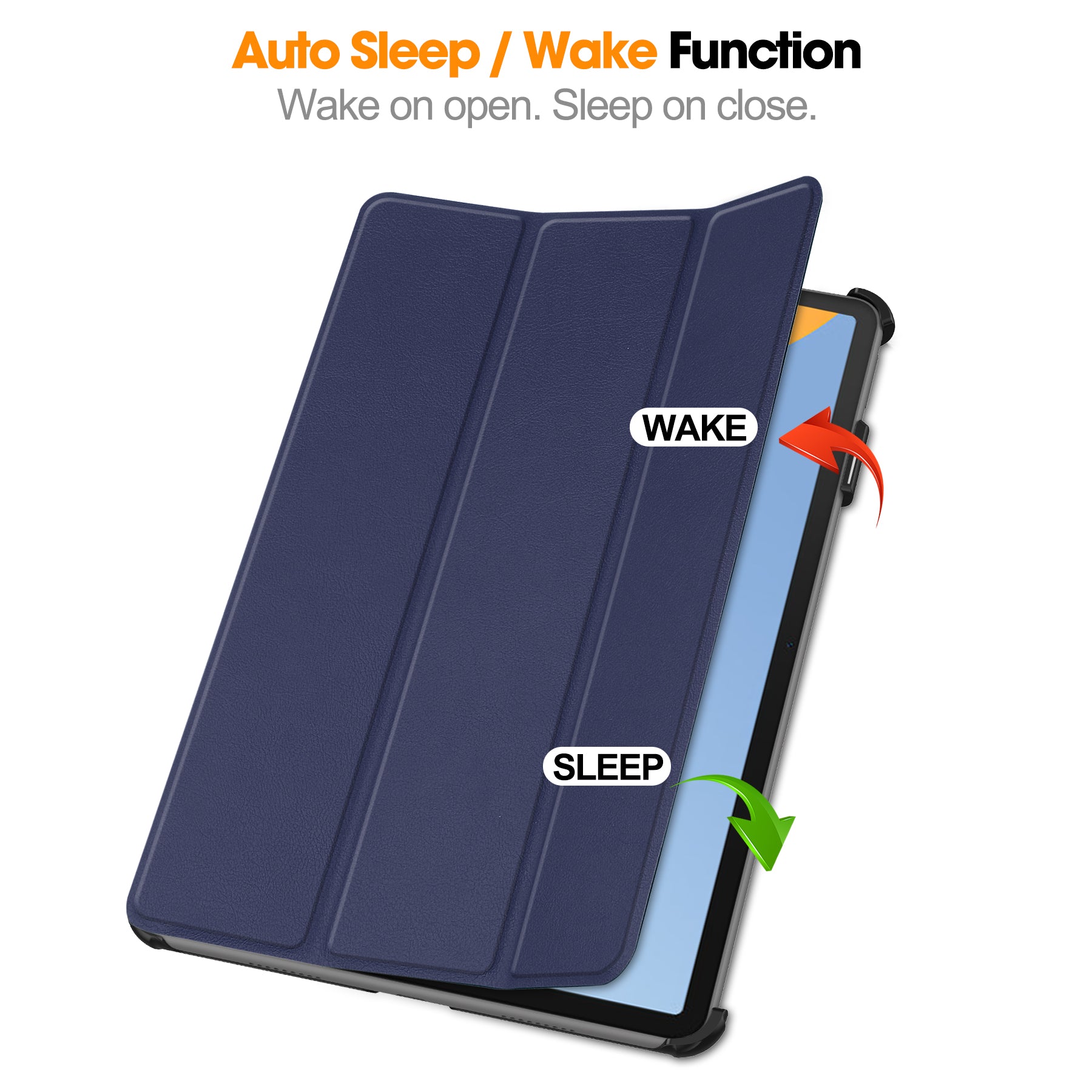 This case is characterized by delicate PU leather, combined with a PC inner case, fine quality, and a tempting appearance. Tri-fold stand design provides a suitable angle for you to read, type, and watch videos, simplifying your work and life. Microfiber lining is scratch-proof and anti-dirt, protecting your tablet's screen.