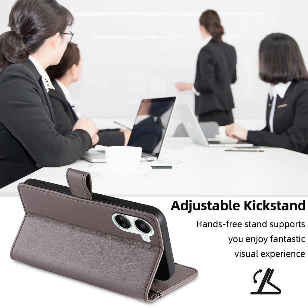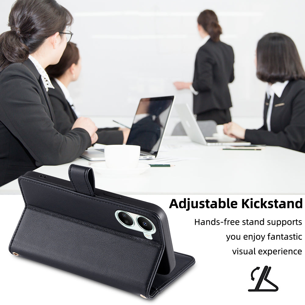 For Huawei nova 10 SE 4G PU Leather Hands-free Stand Case Zipper Pocket Card Slots Flip Phone Cover with Wrist Strap and Shoulder Strap