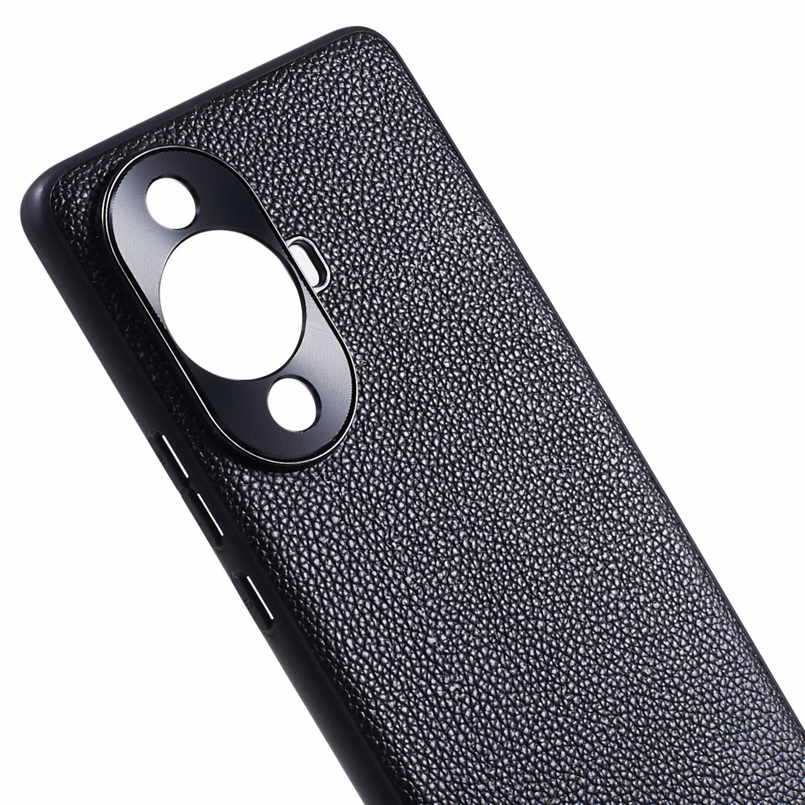 For Huawei nova 11 Pro / nova 11 Ultra Litchi Texture Phone Case Genuine Cow Leather + PC+TPU Cover with Metal Camera Guard