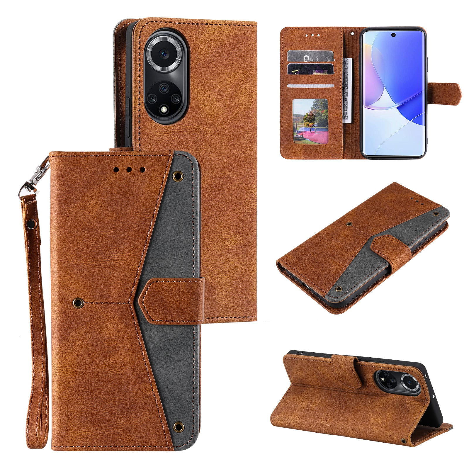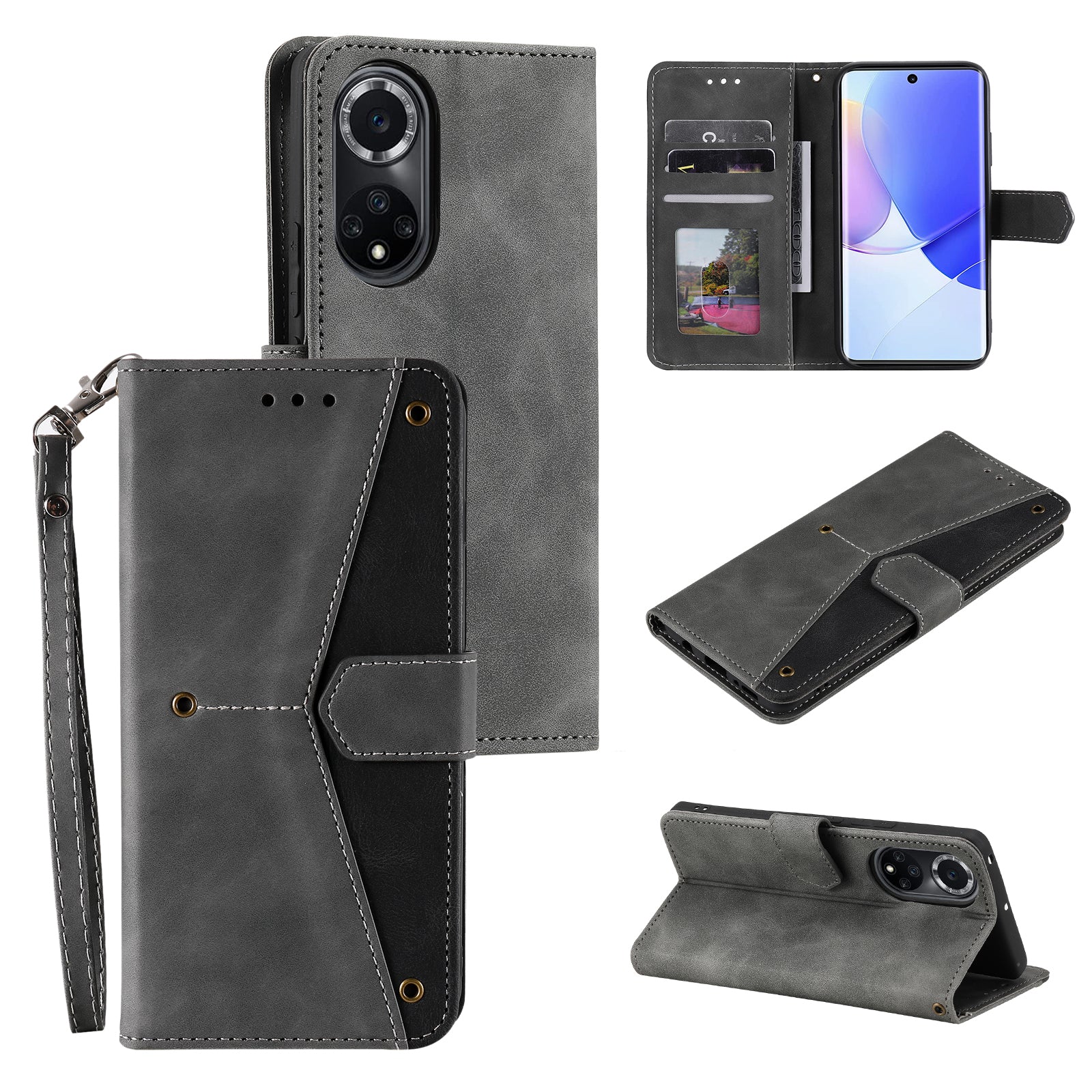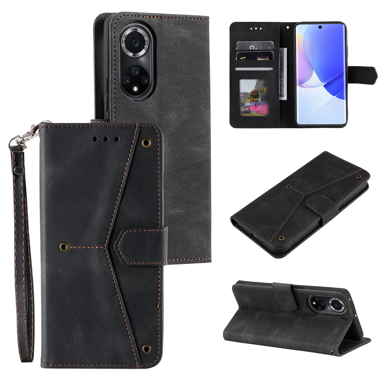 For Huawei nova 9 Shockproof PU Leather Wallet Phone Stand Case Rivet Decor Full Protection Phone Cover