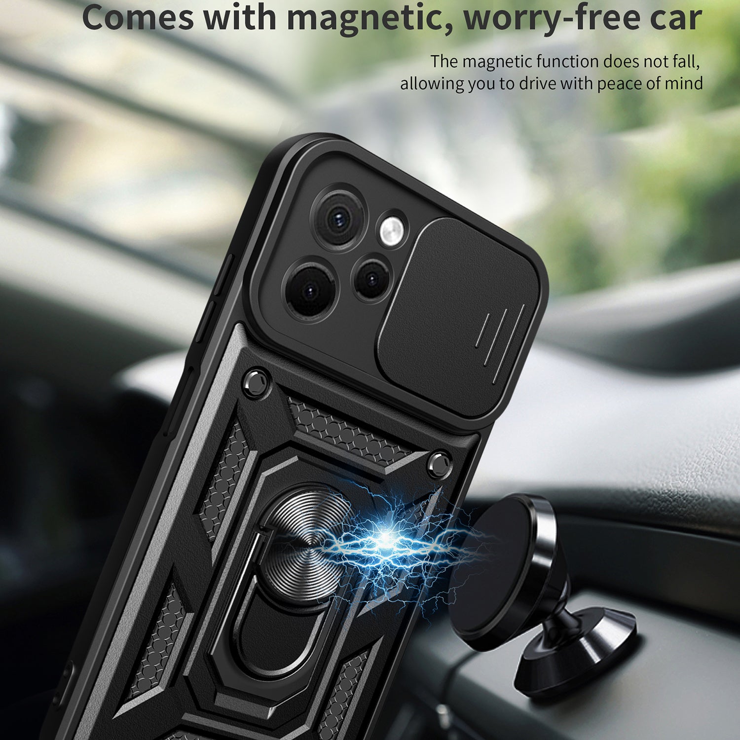 - Built-in magnetic holder metal sheet, can use with car mount holder (car mount holder not included)