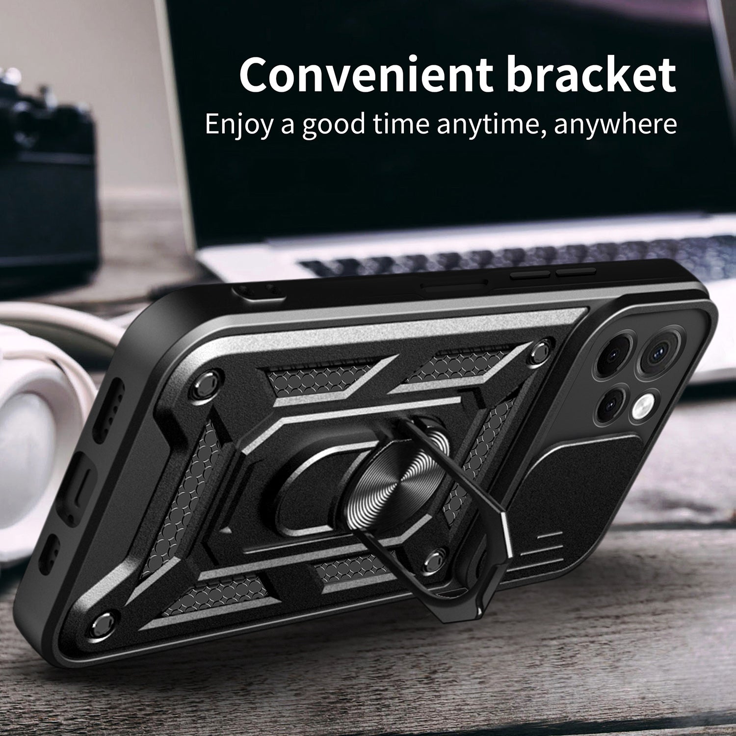 - The built-in rotary kickstand allows a one-hand operation and multi-angle support