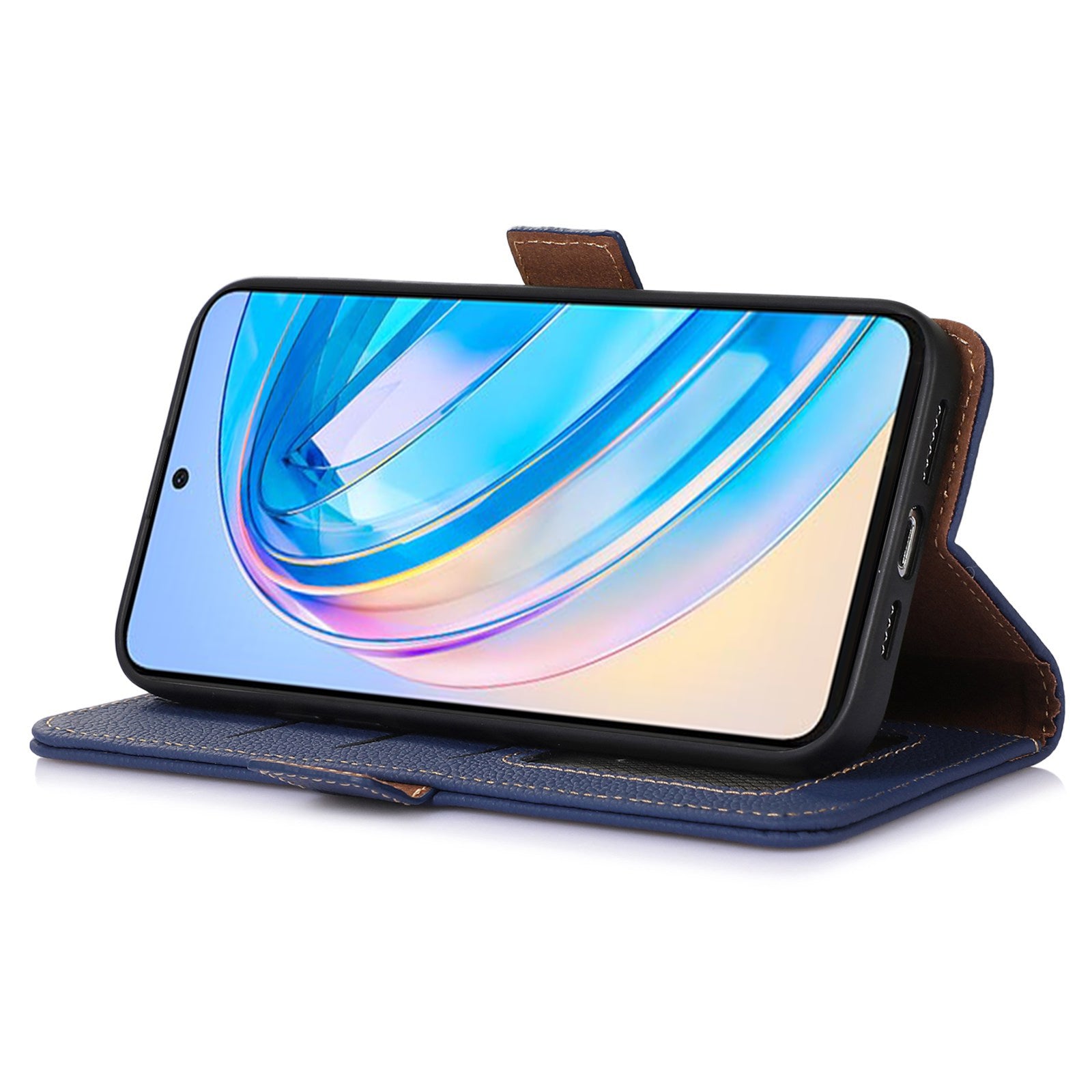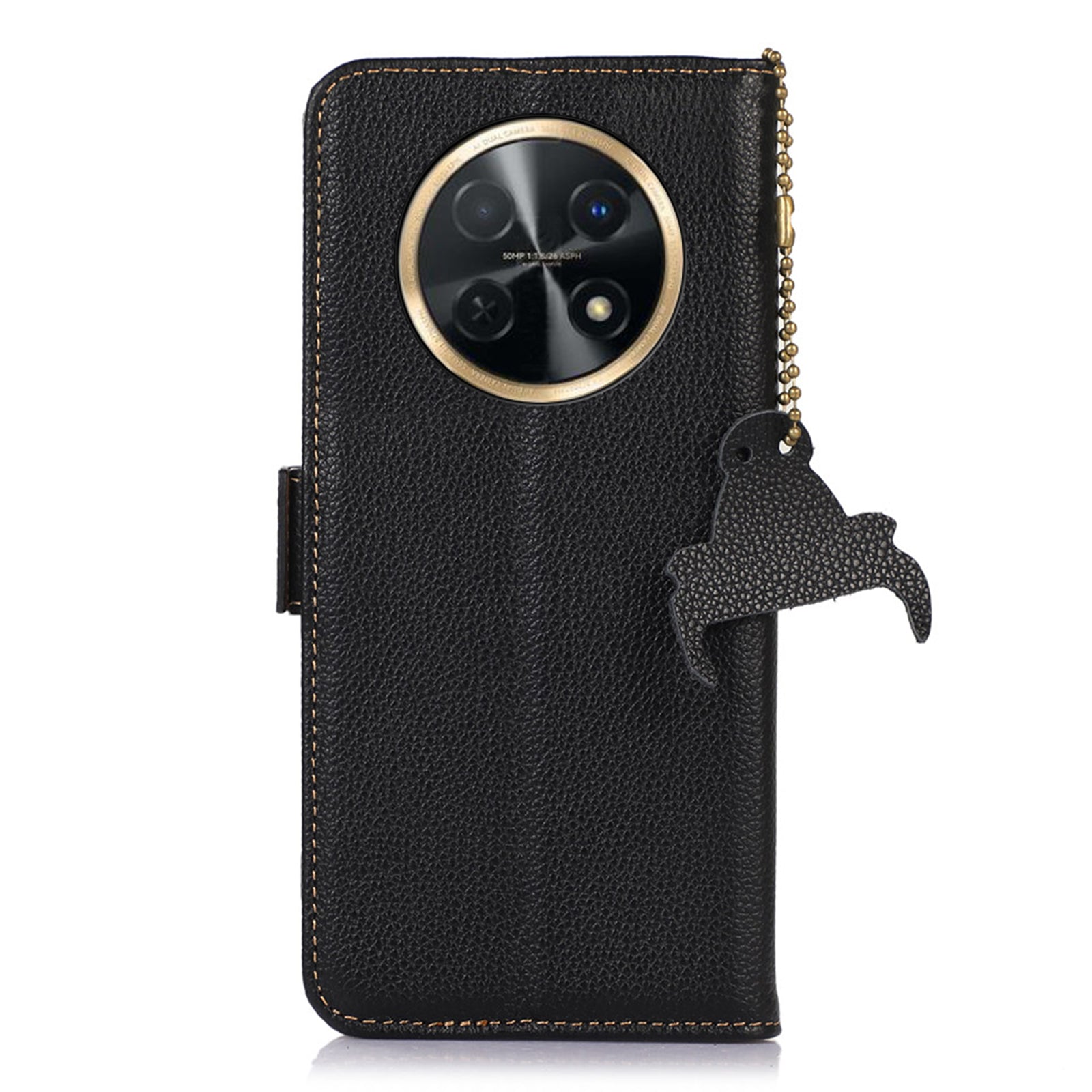 For Huawei nova Y91 4G / Enjoy 60X Wallet Phone Case RFID Blocking Genuine Cow Leather Litchi Texture Stand Cover