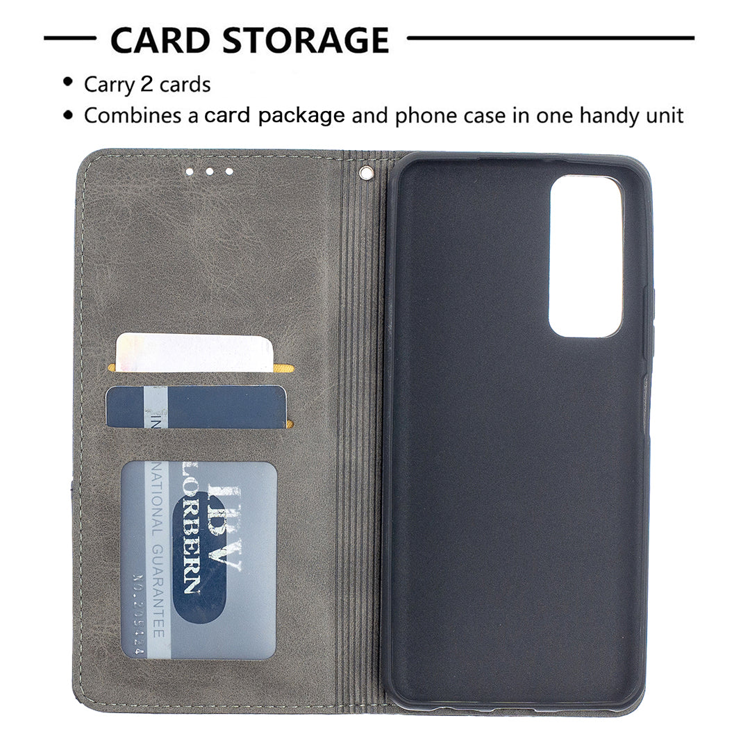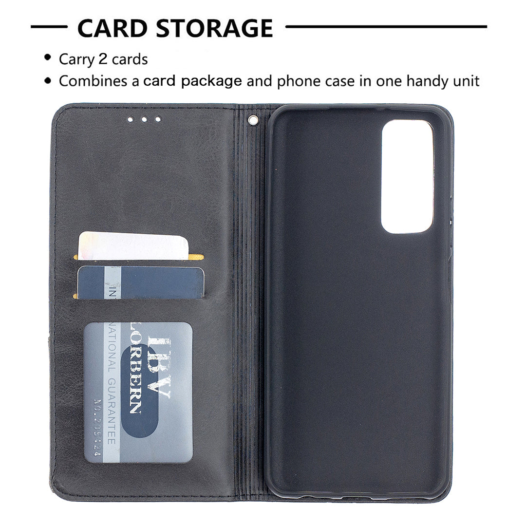 For Huawei P Smart 2021 / Y7a Geometric Pattern Leather Stand Case Card Holder Shell - Black