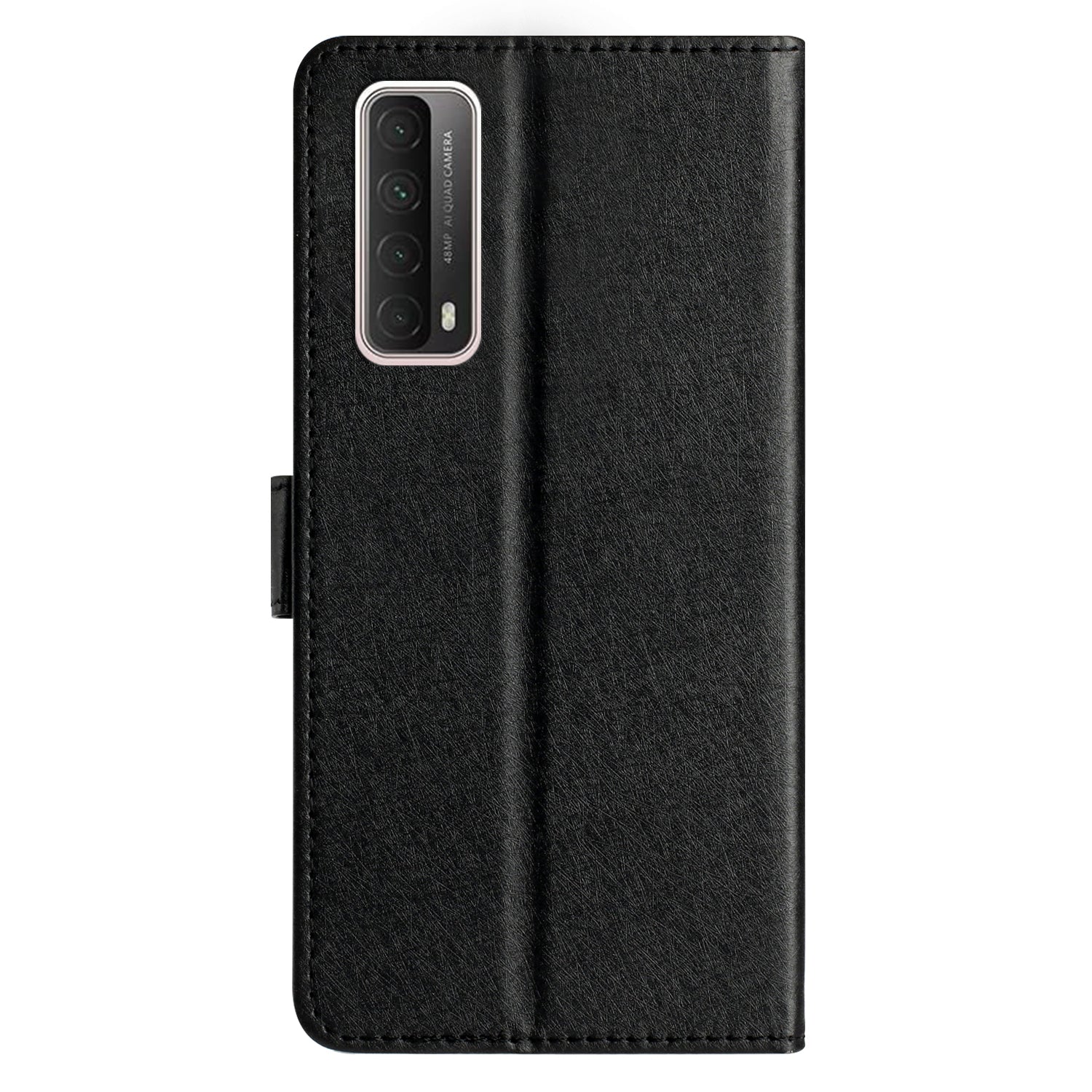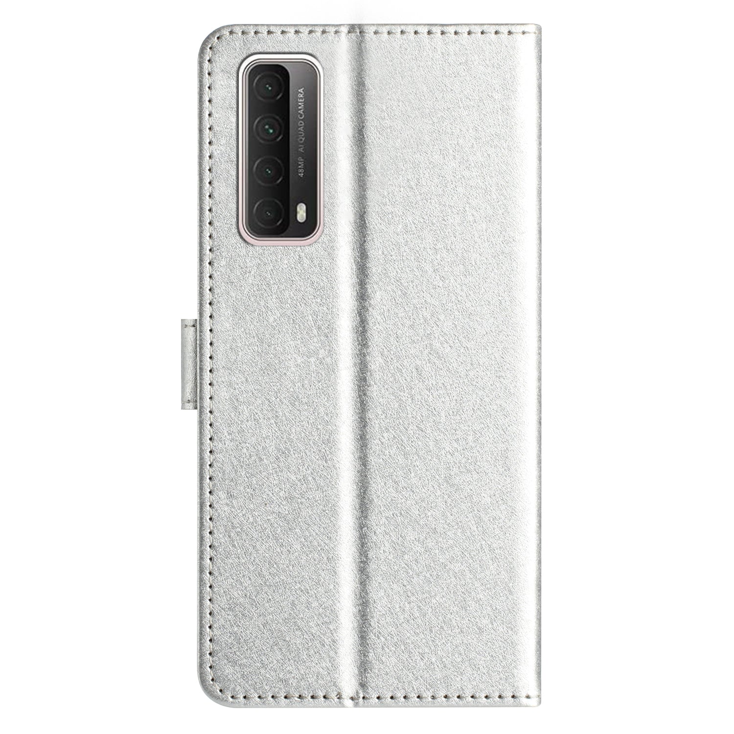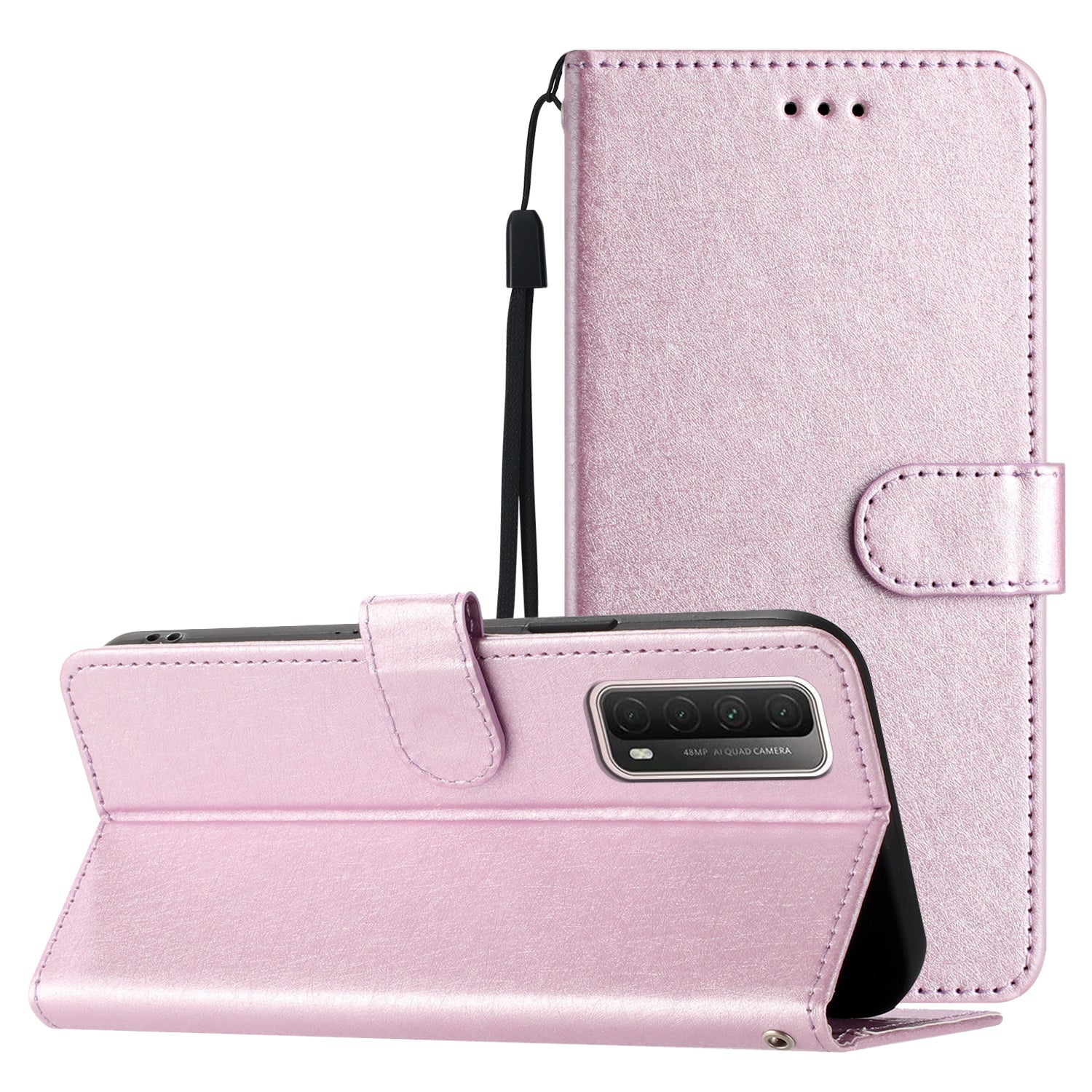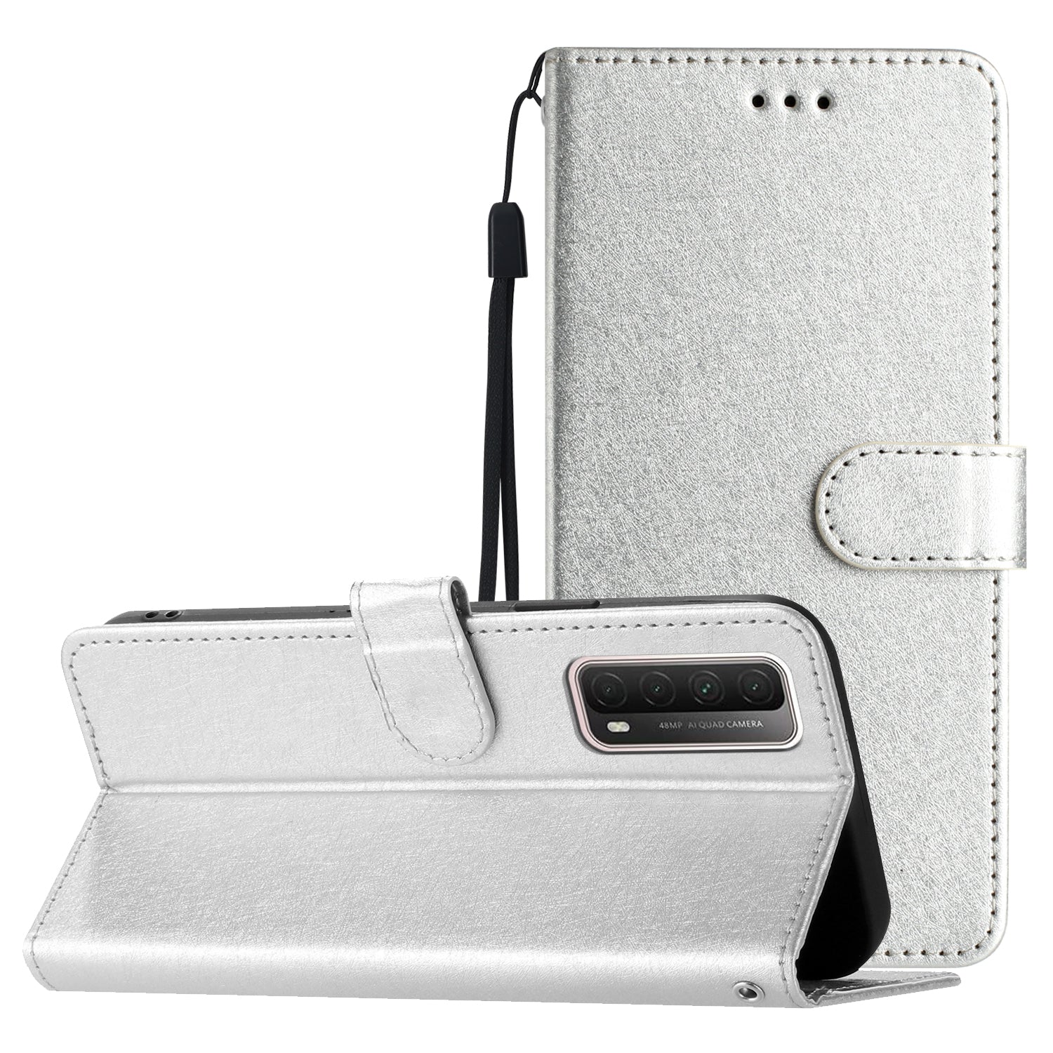For Huawei P smart 2021 / Y7a Phone Case PU Leather Silk Texture Stand Wallet Flip Cover with Strap