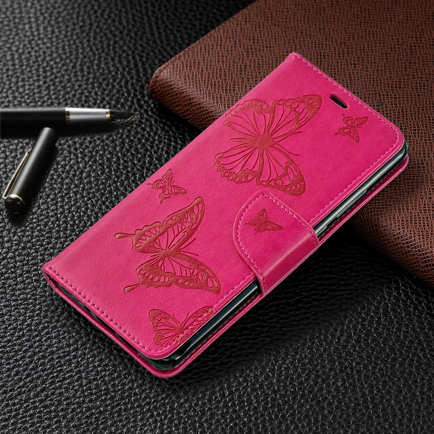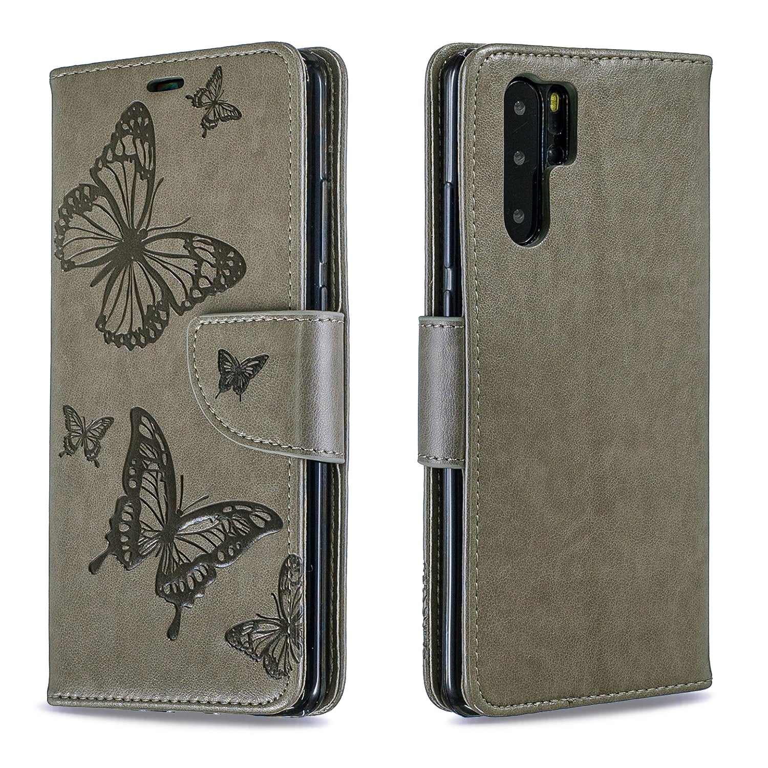 For Huawei P30 Pro PU Leather Imprint Butterflies Phone Case