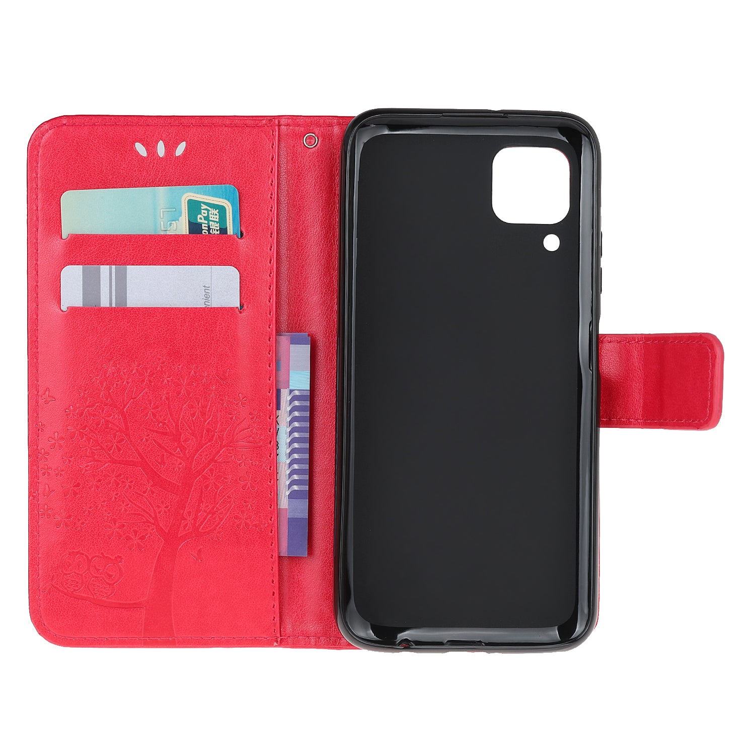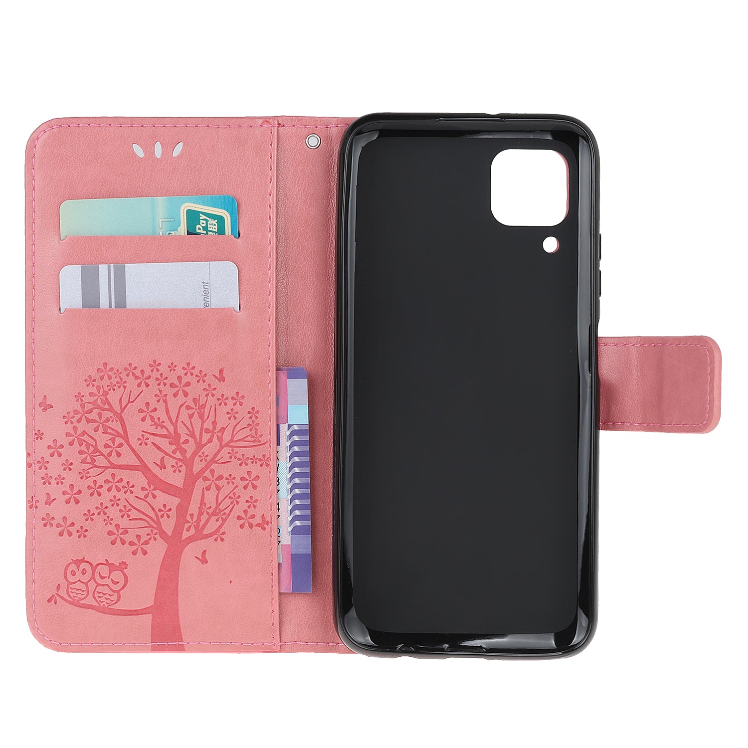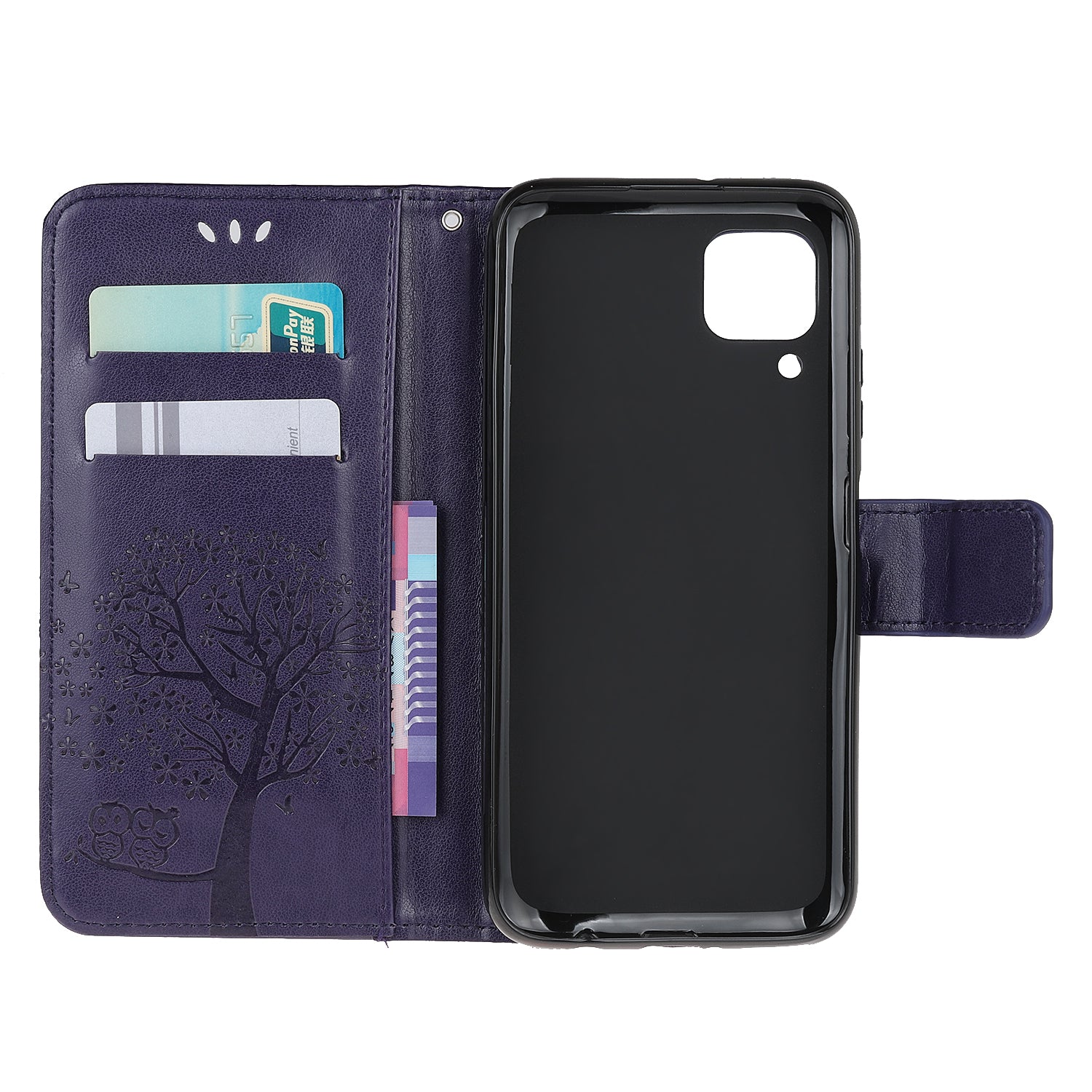 For Huawei P40 Lite/nova 7i/nova 6 SE Imprint Tree Owl Leather Wallet Stand Shell
