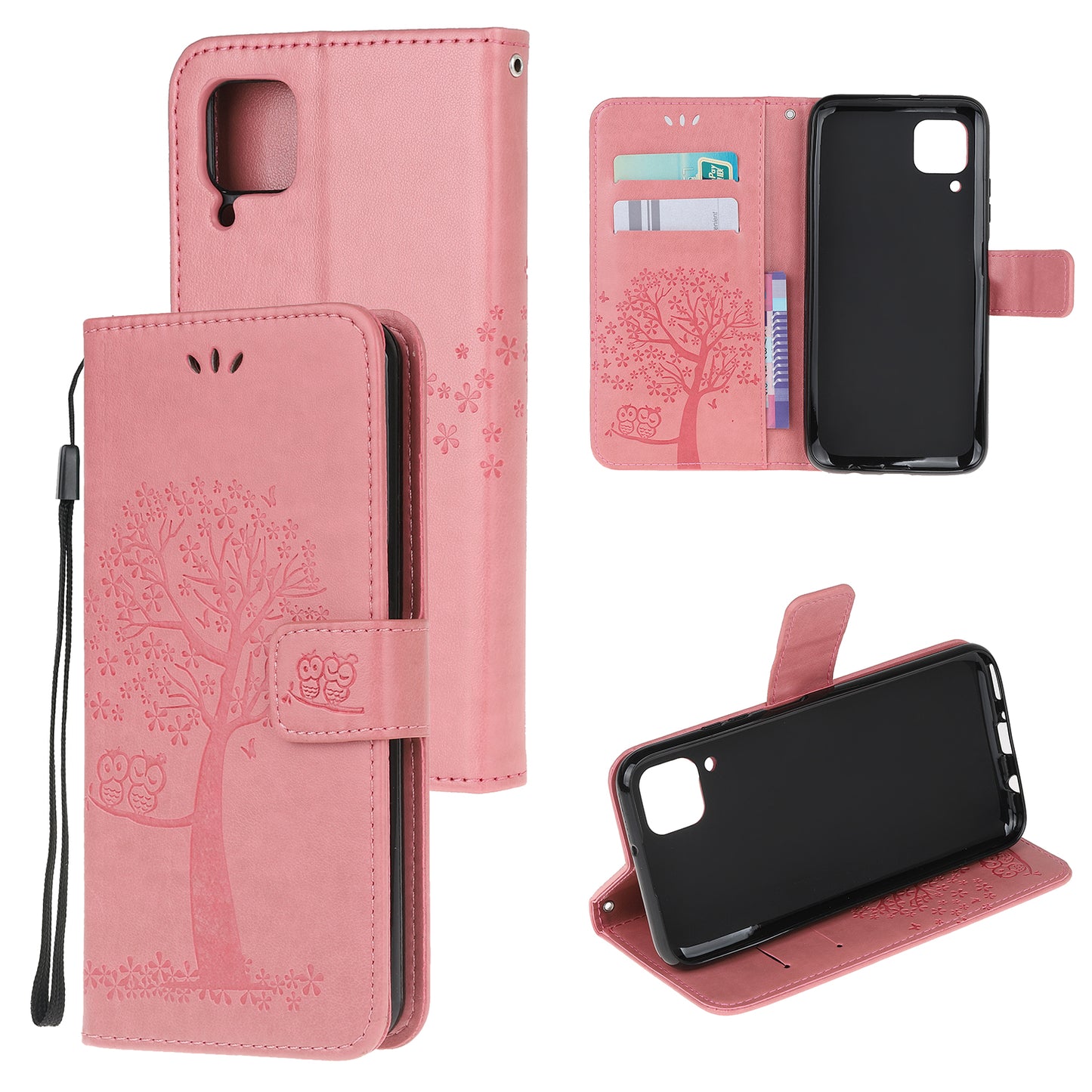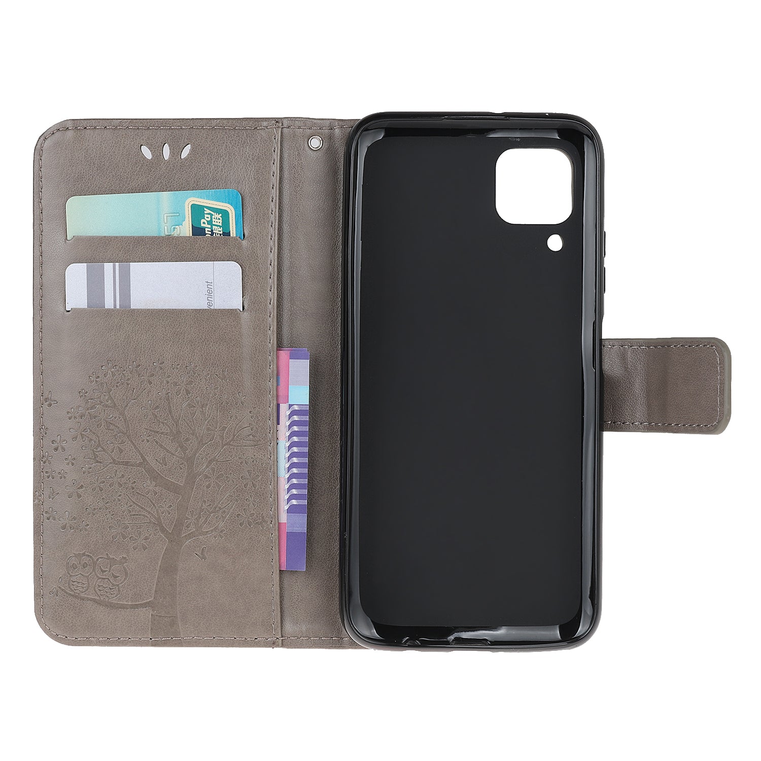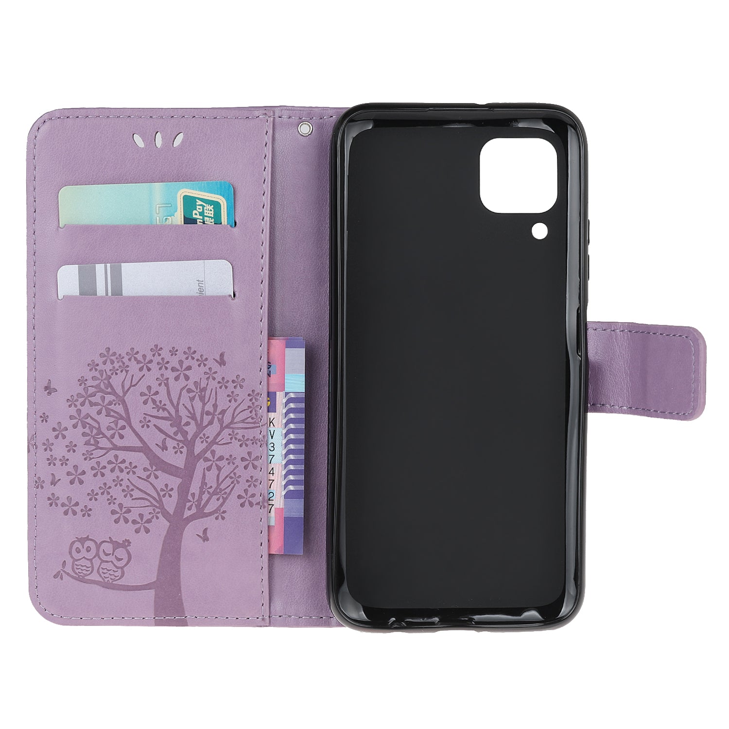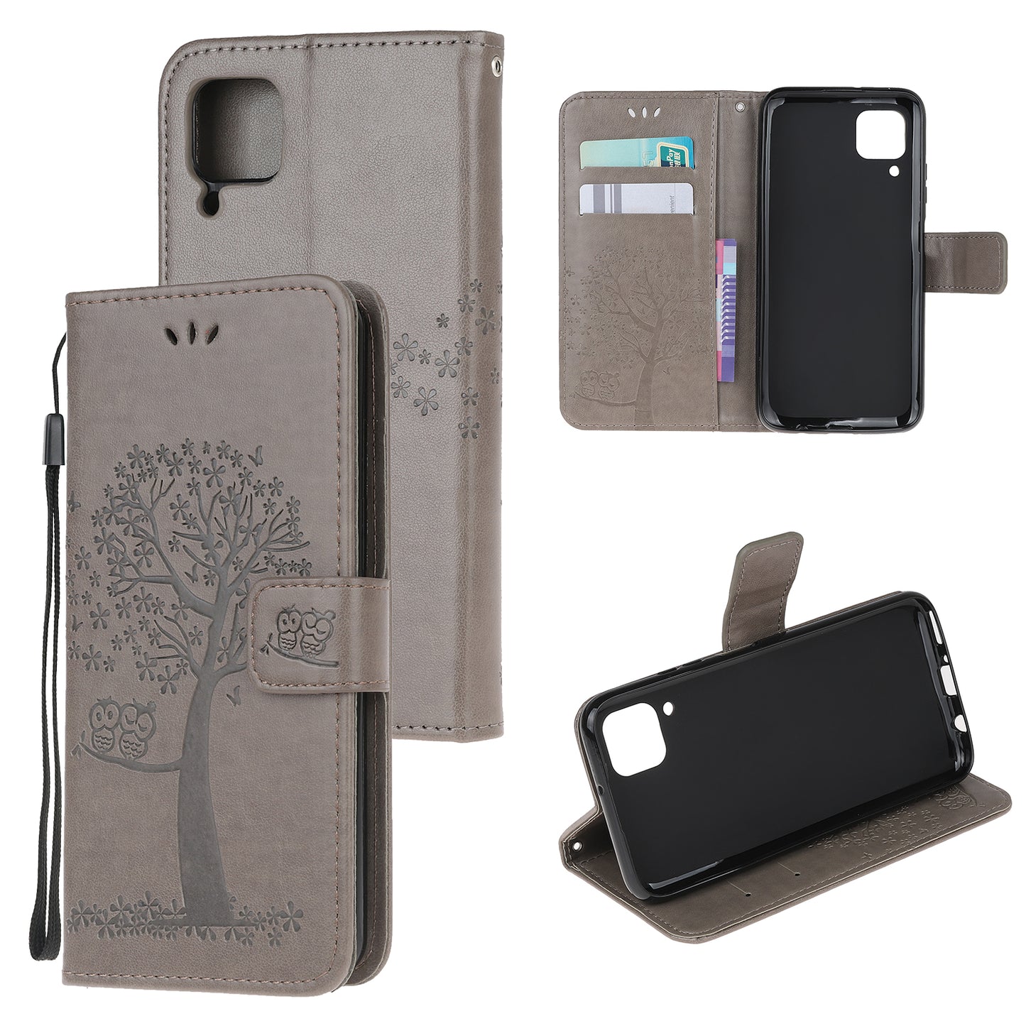 For Huawei P40 Lite/nova 7i/nova 6 SE Imprint Tree Owl Leather Wallet Stand Shell