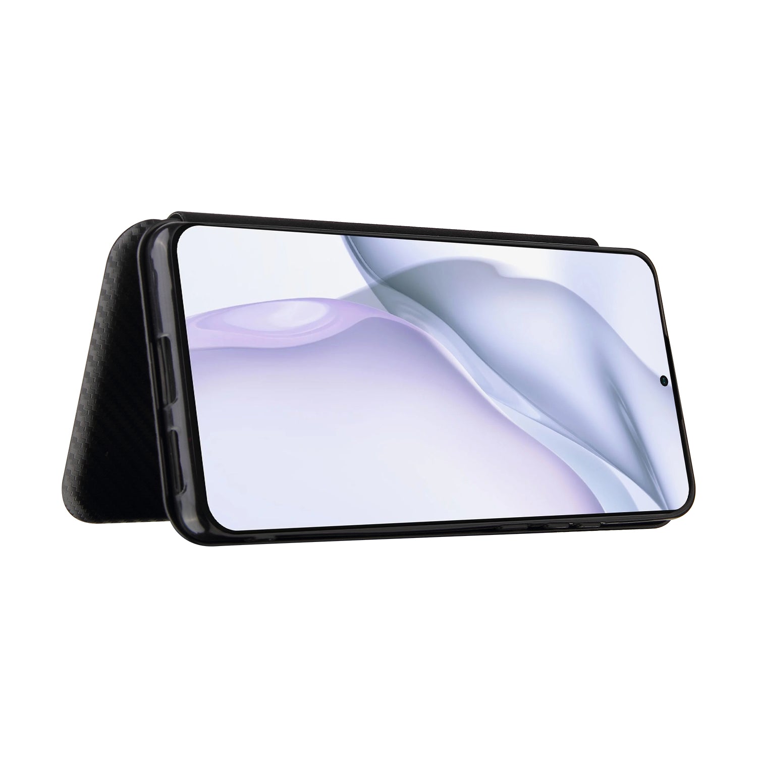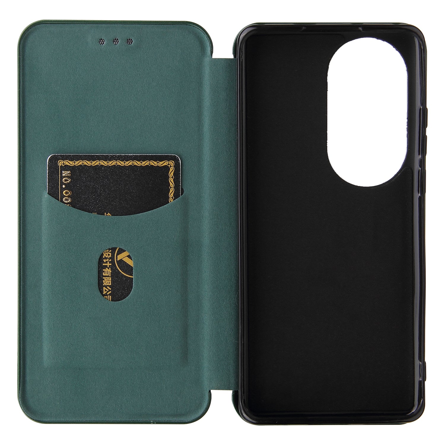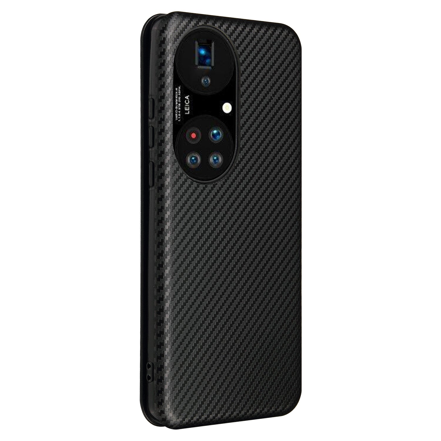 For Huawei P50 Pro Auto-absorbed Leather Cover Carbon Fiber Texture, with Detachable Ring Kickstand Strap