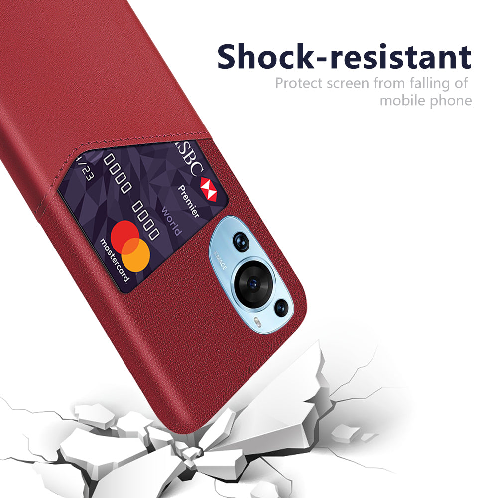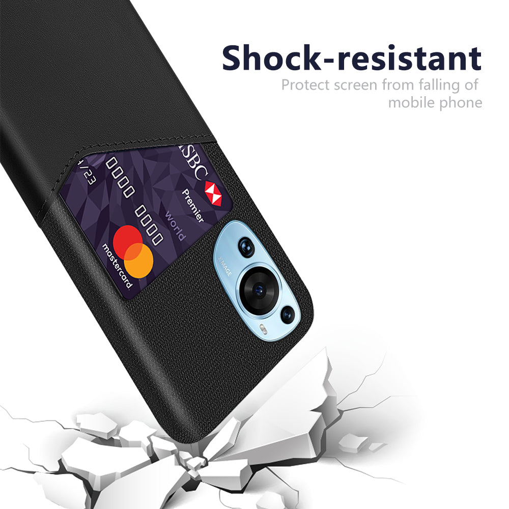 For Huawei P60 Art Cloth Texture Card Holder Phone Case Leather Coated Hard PC Cover