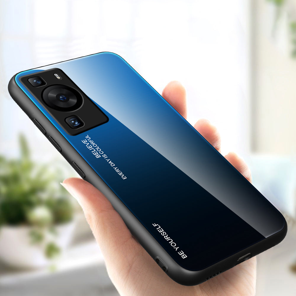 For Huawei P60 Gradient Color Back Shell Tempered Glass + PC + TPU Hybrid Protective Phone Case