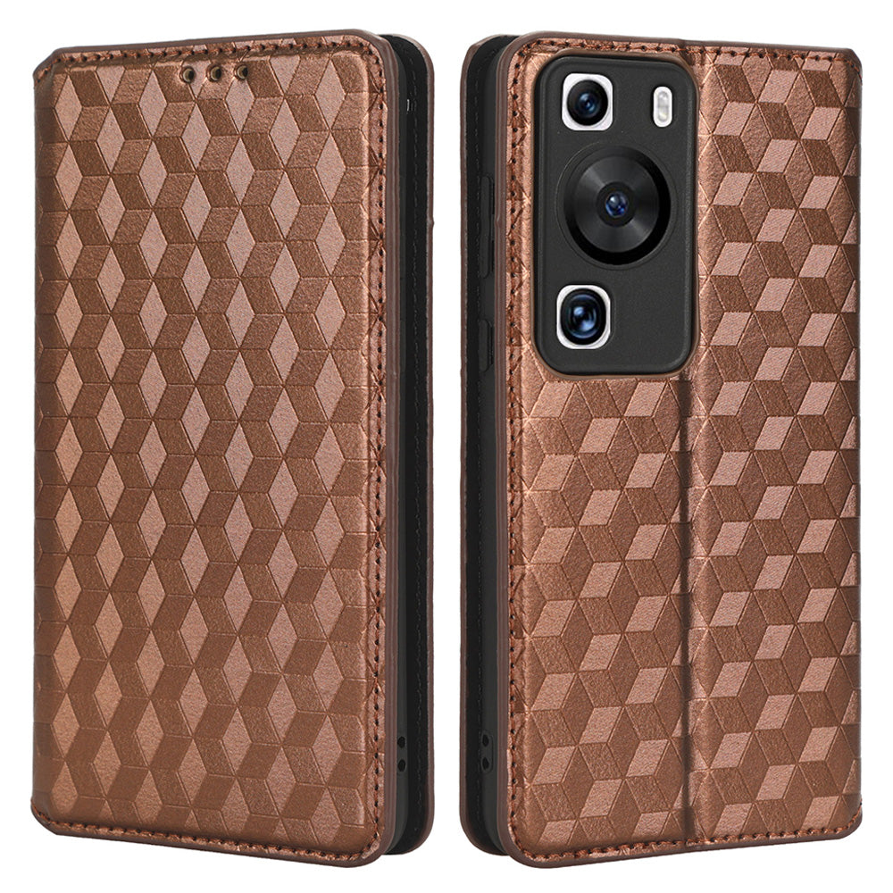 For Huawei P60 / P60 Pro Rhombus Imprint PU Leather Phone Case Flip Stand Wallet Cover