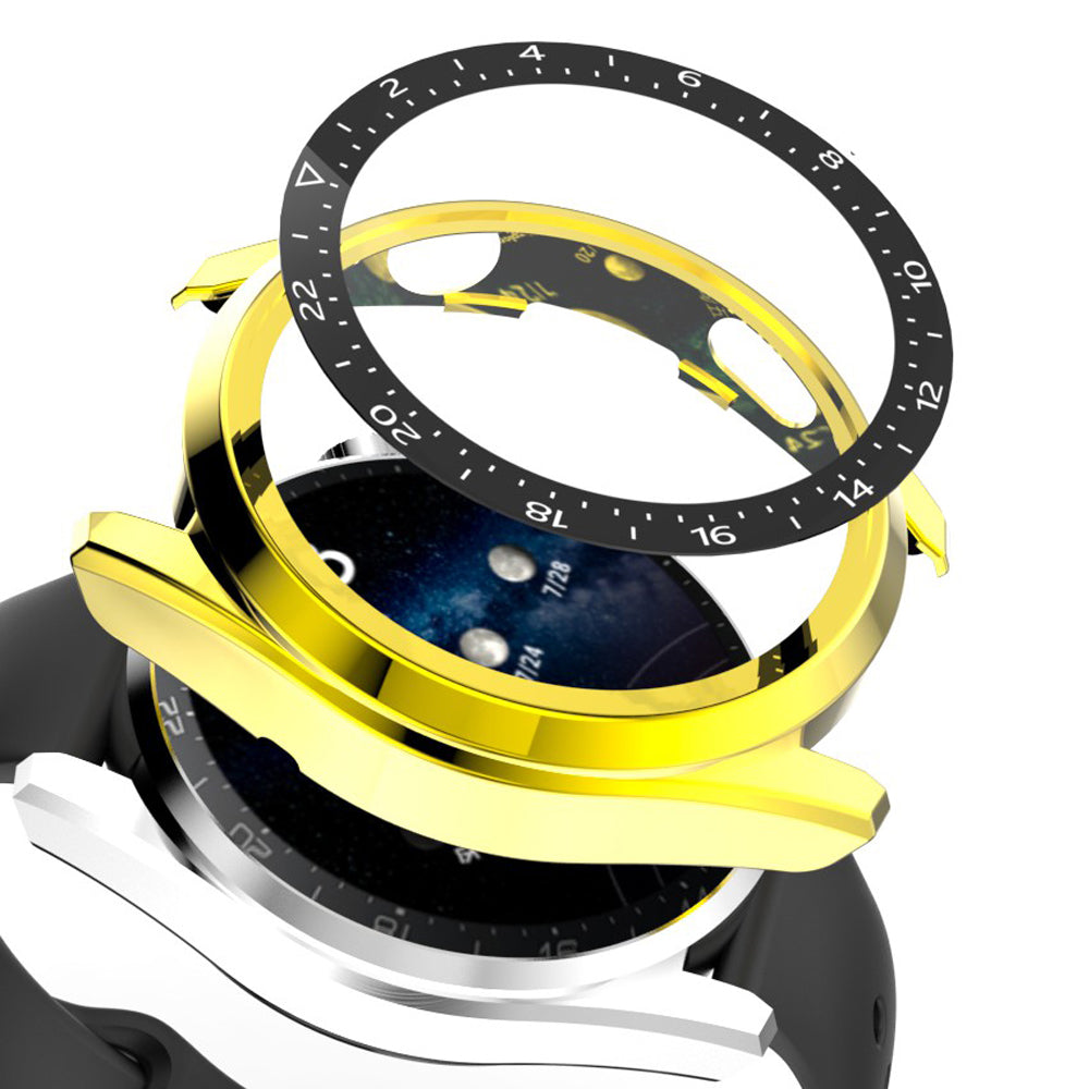 For Huawei Watch 3 Pro Electroplating PC Case + Tempered Glass Screen Protector Scratch Resistant Smart Watch Cover with Dial Plate
