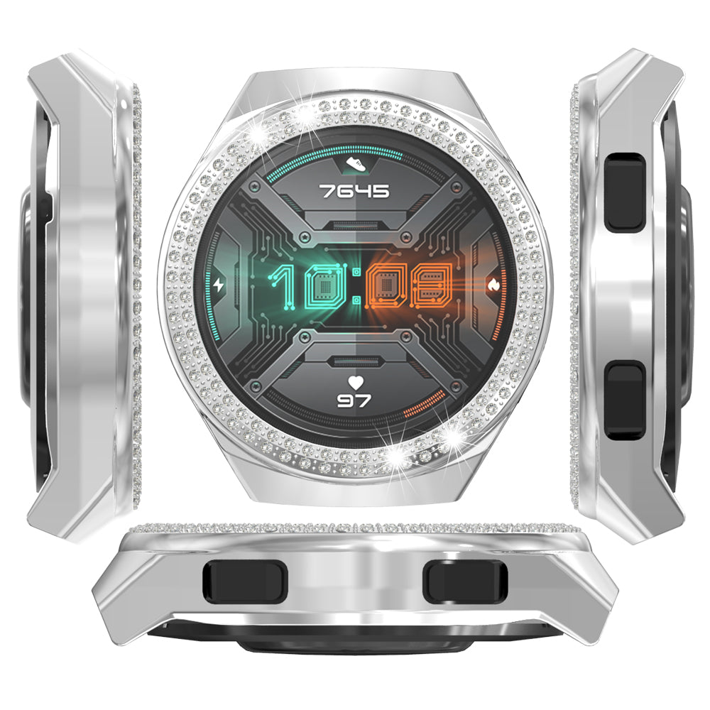 For Huawei Watch GT 2e Two Row Rhinestones Decor PC Watch Protective Case Half Cover