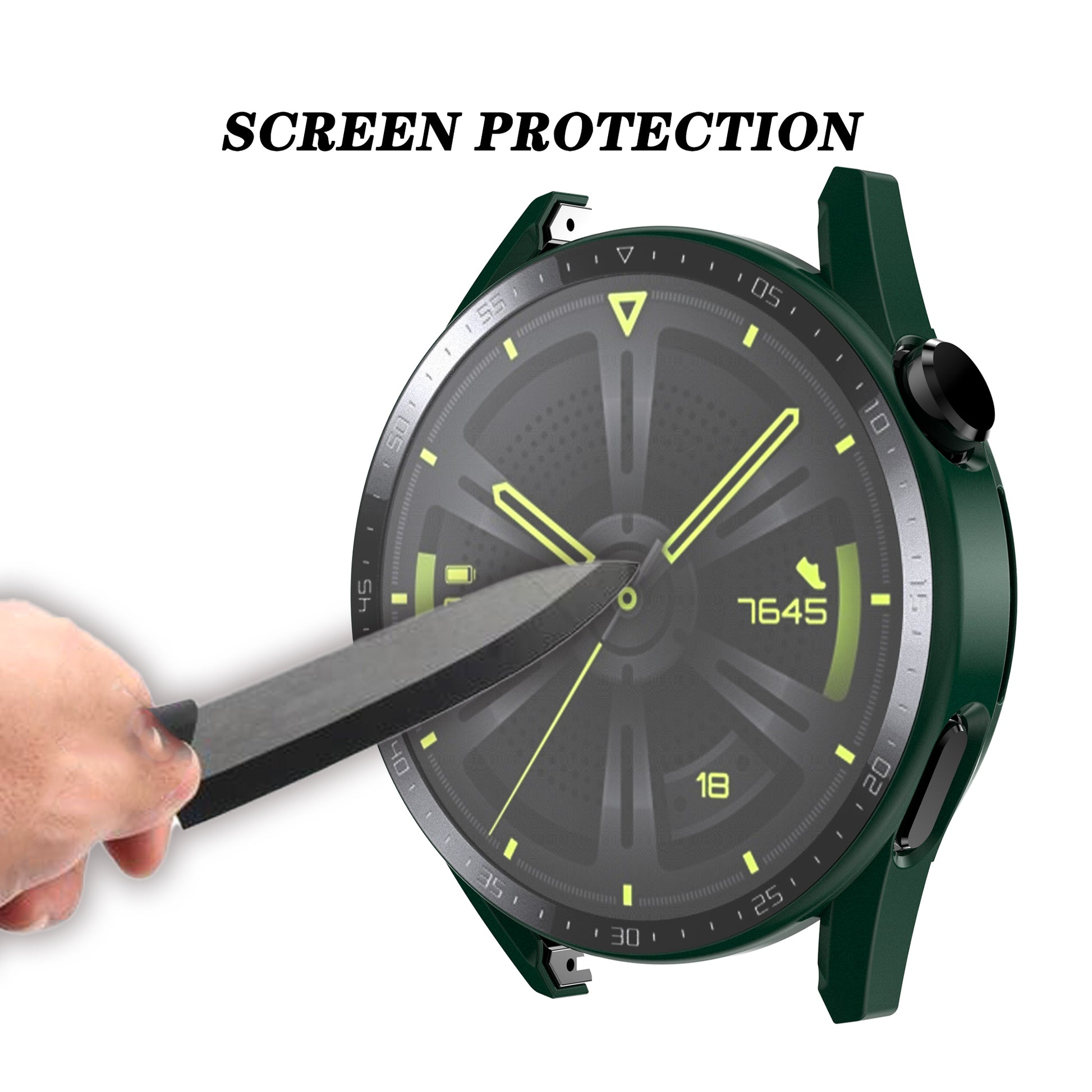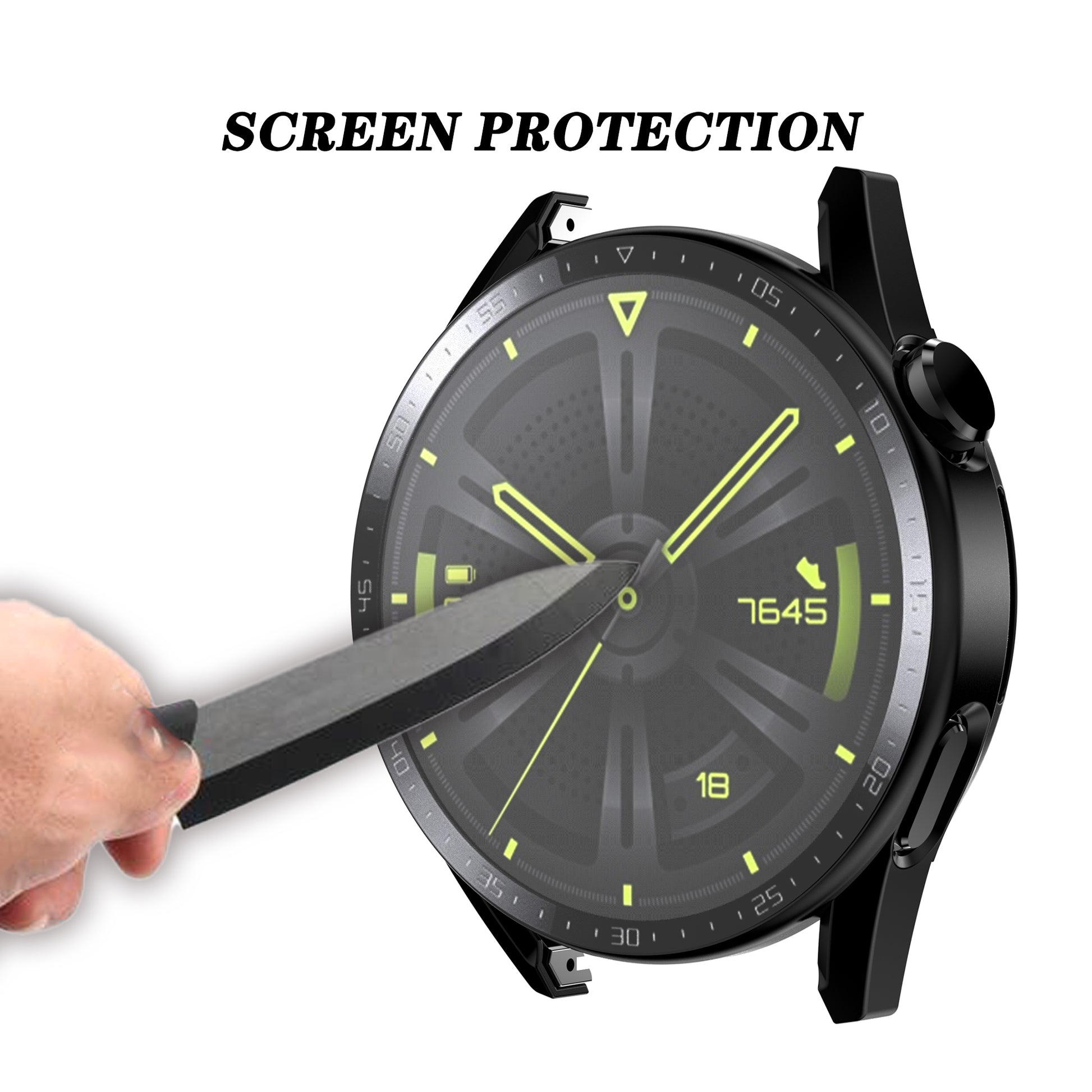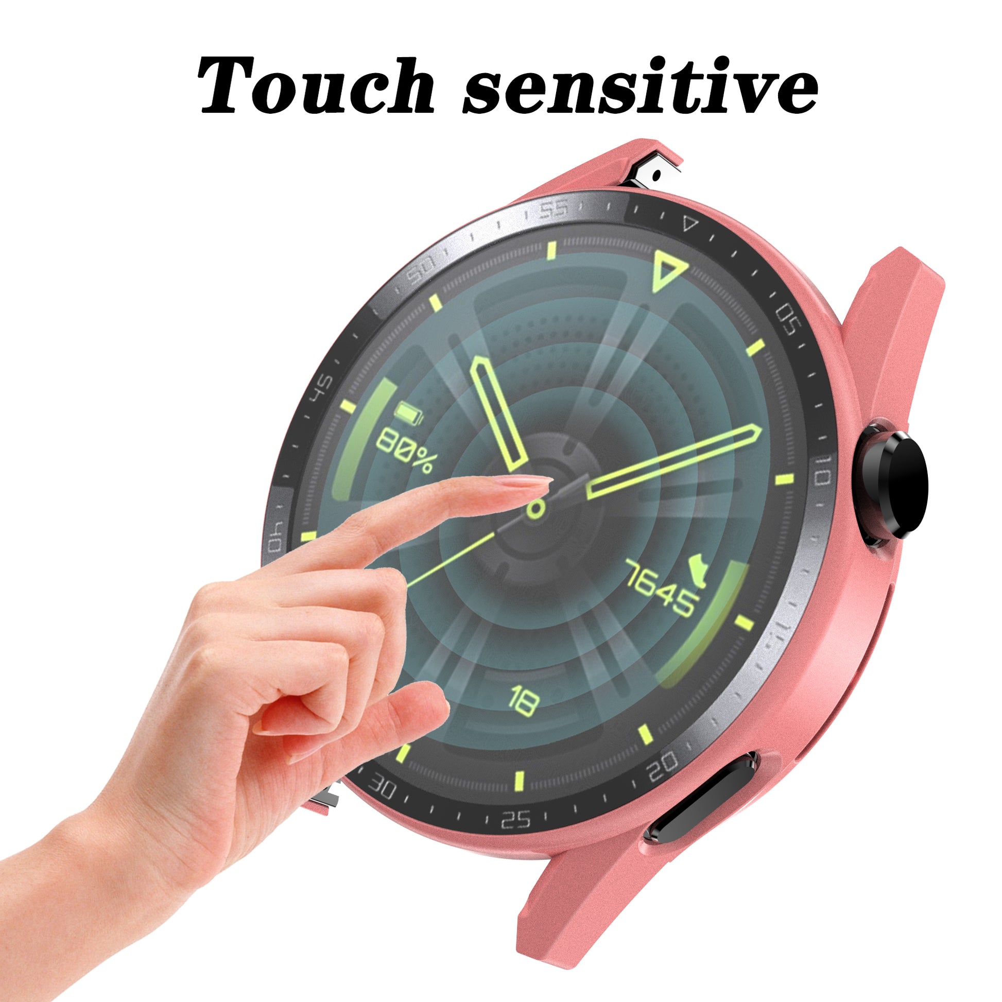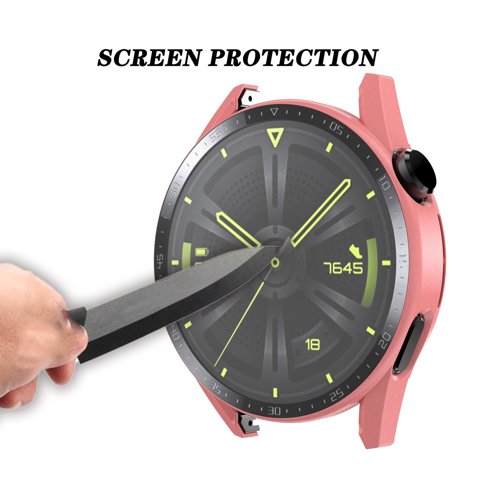For Huawei Watch GT 3 46mm Hard PC Matte Smart Watch Case+HD Tempered Glass Dial Plate Design Screen Protector