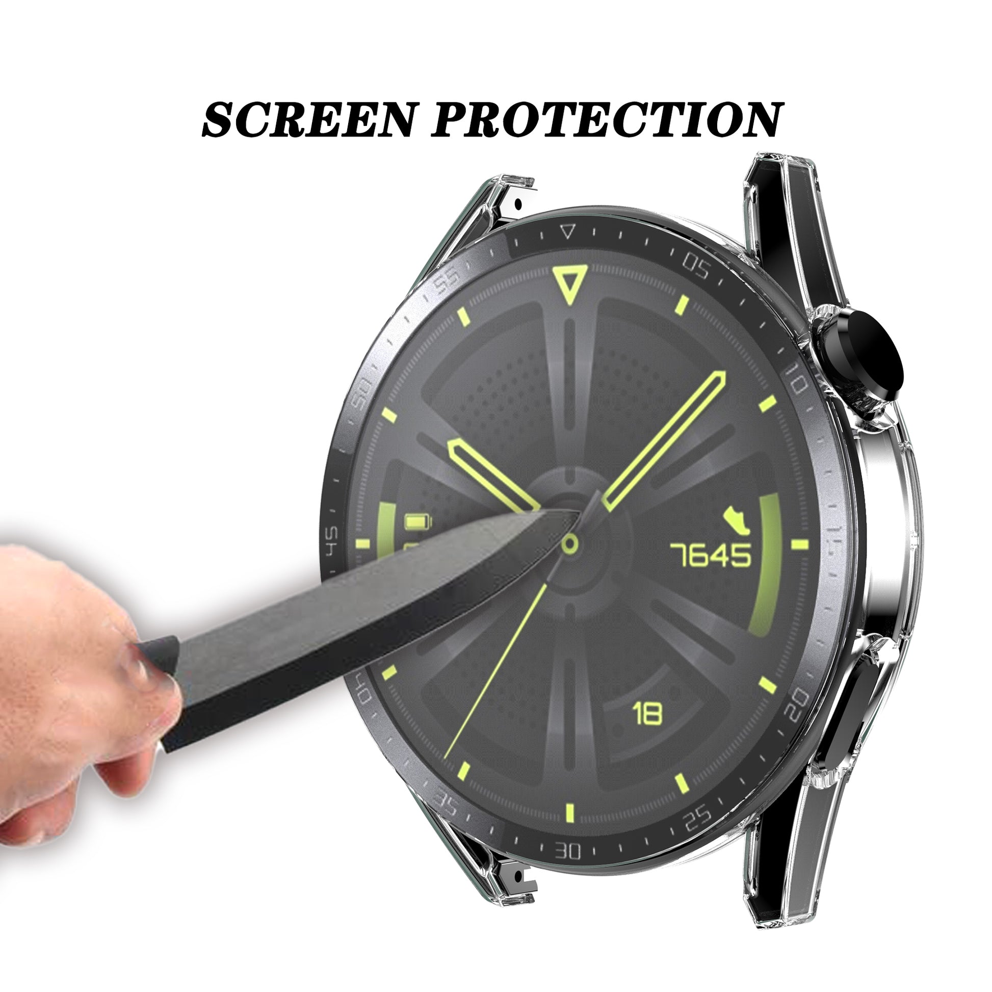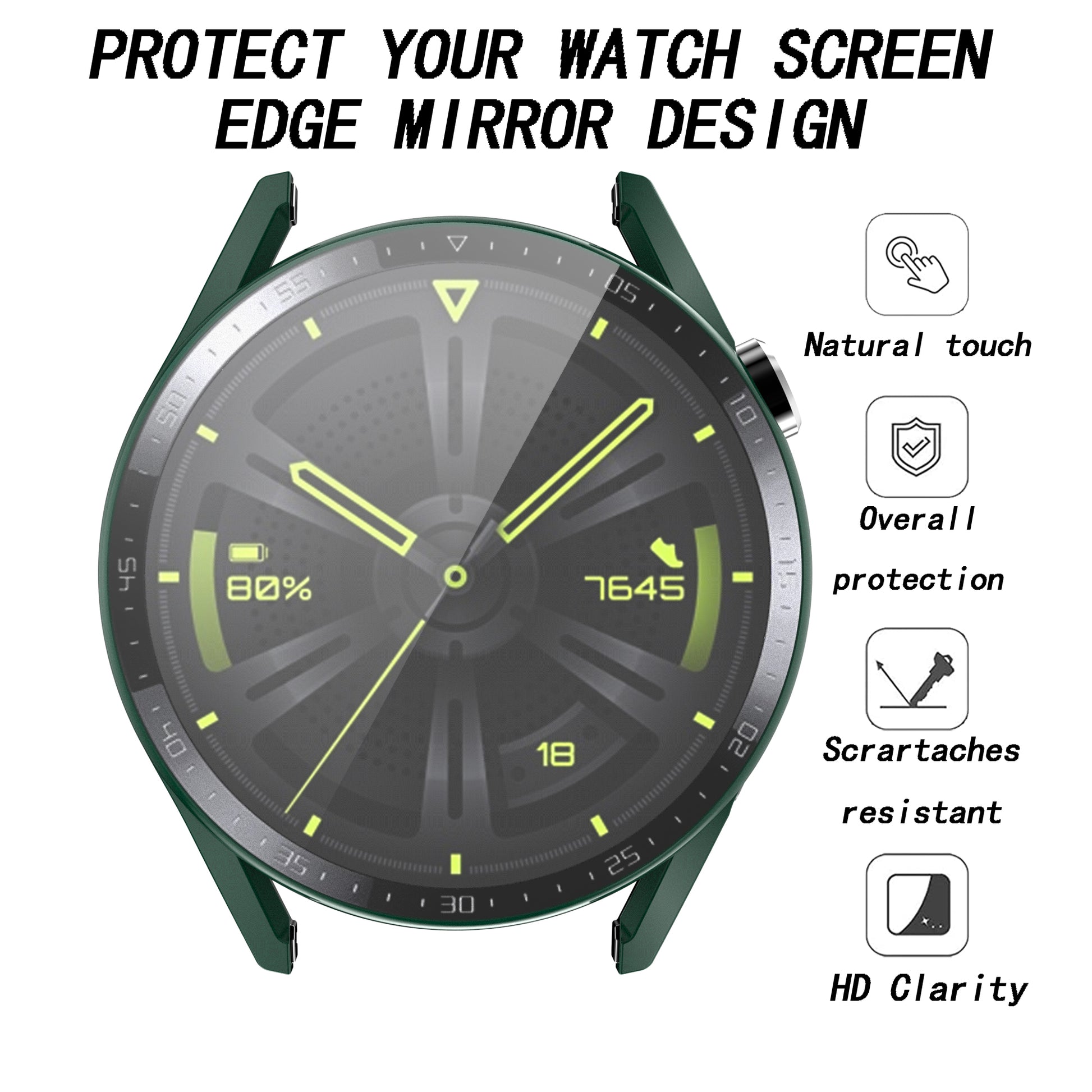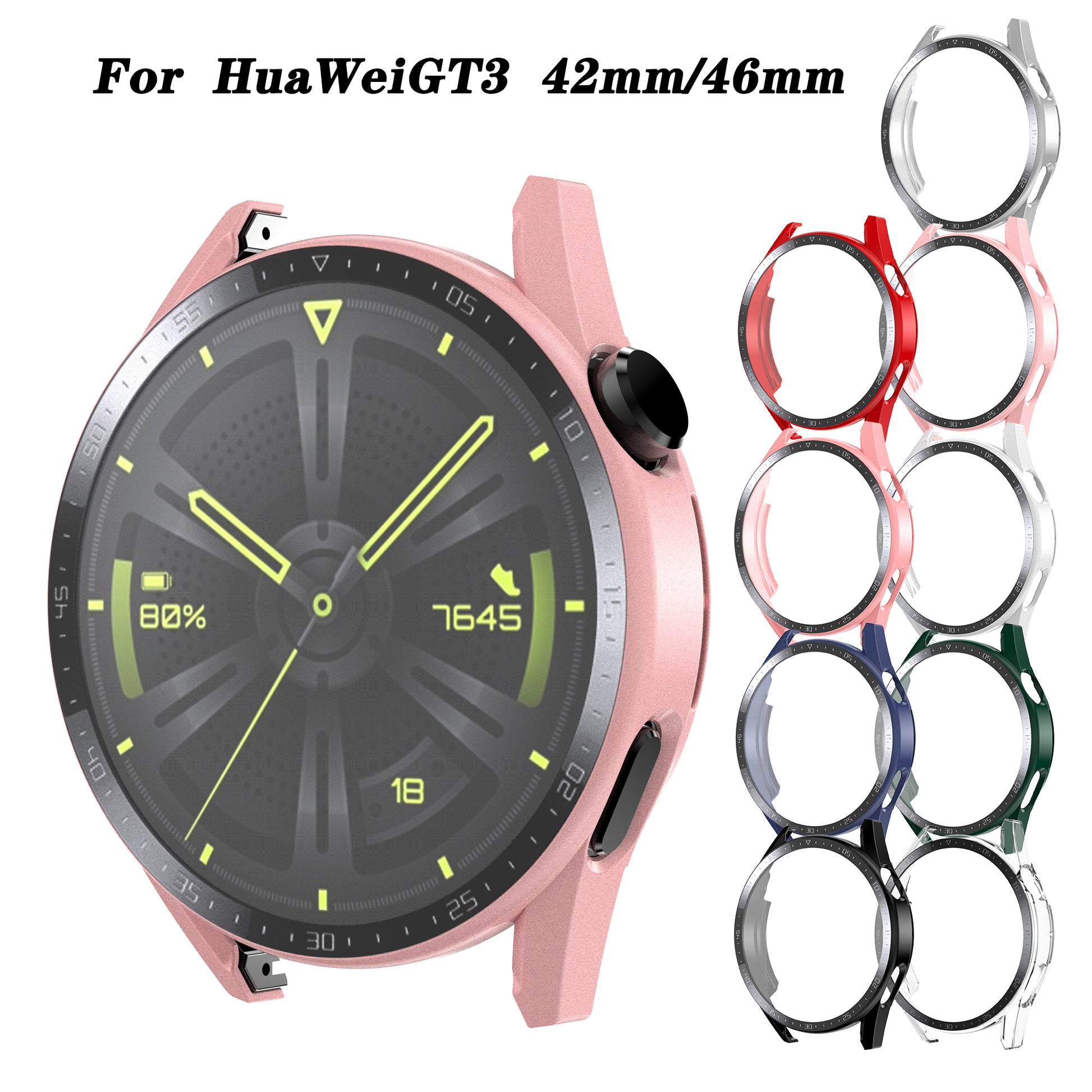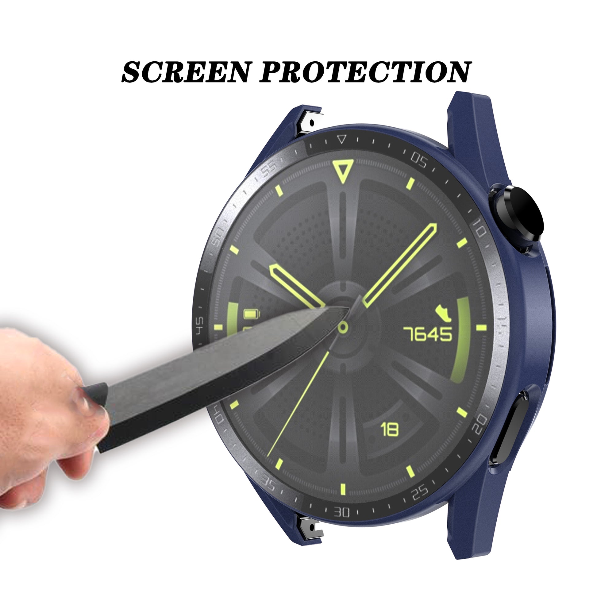 For Huawei Watch GT 3 46mm Hard PC Matte Smart Watch Case+HD Tempered Glass Dial Plate Design Screen Protector