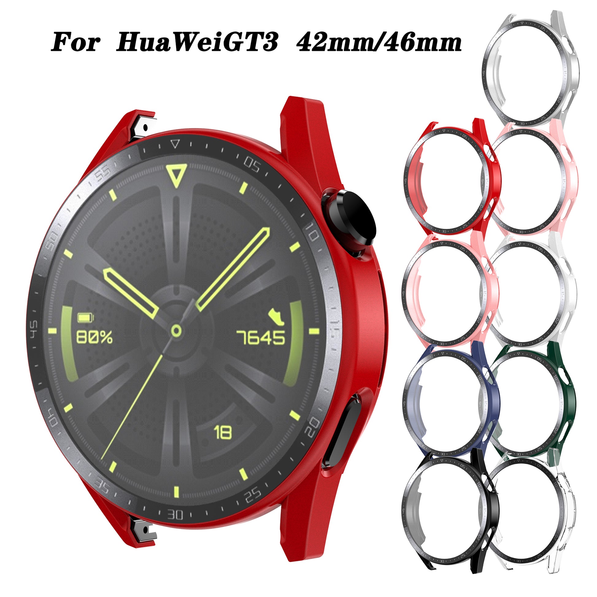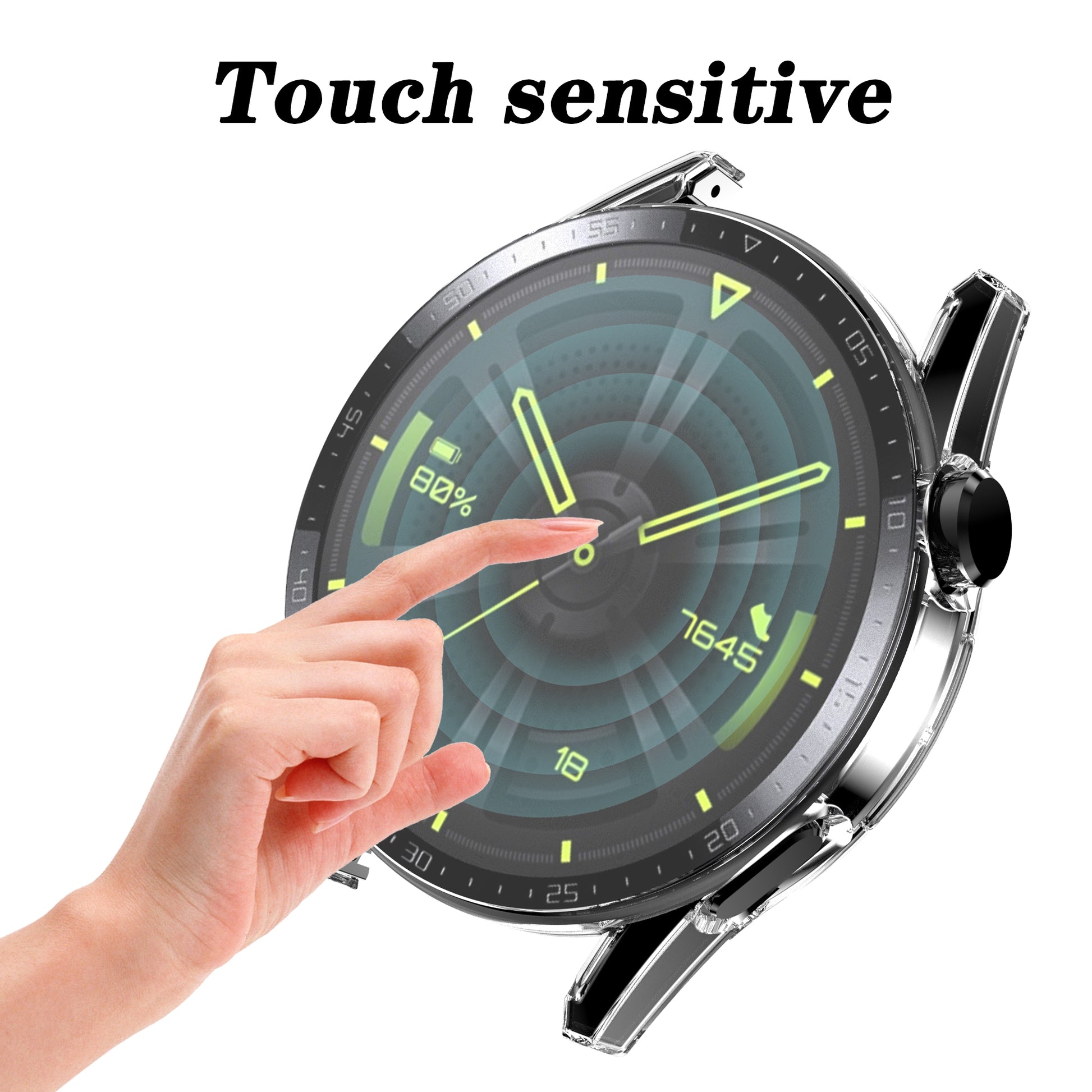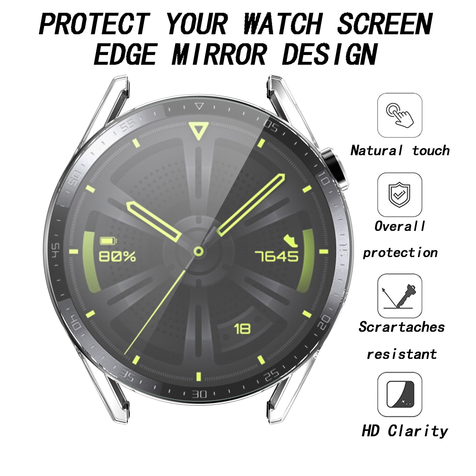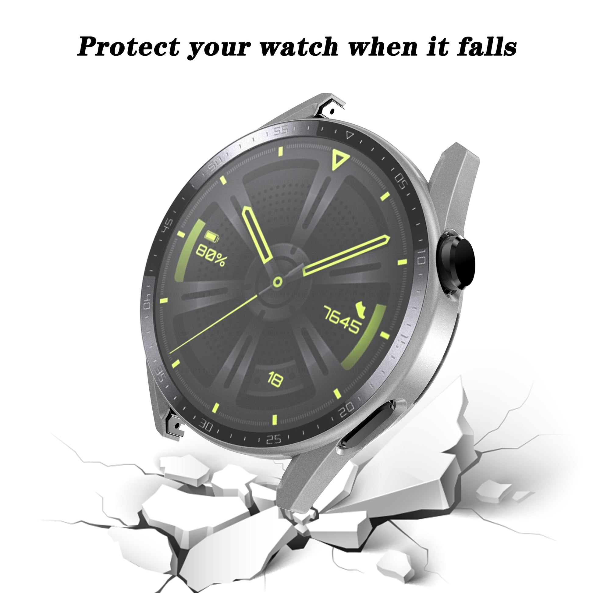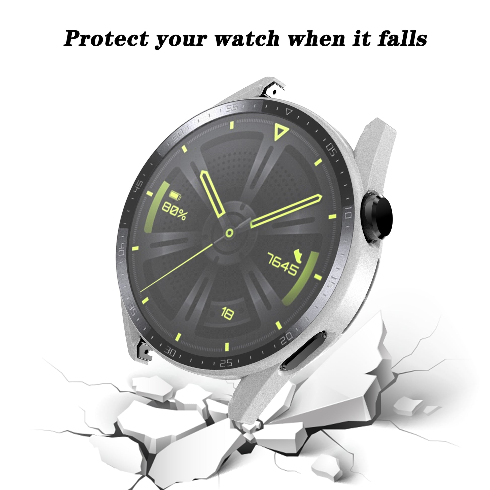 For Huawei Watch GT 3 46mm Hard PC Matte Smart Watch Case+HD Tempered Glass Dial Plate Design Screen Protector