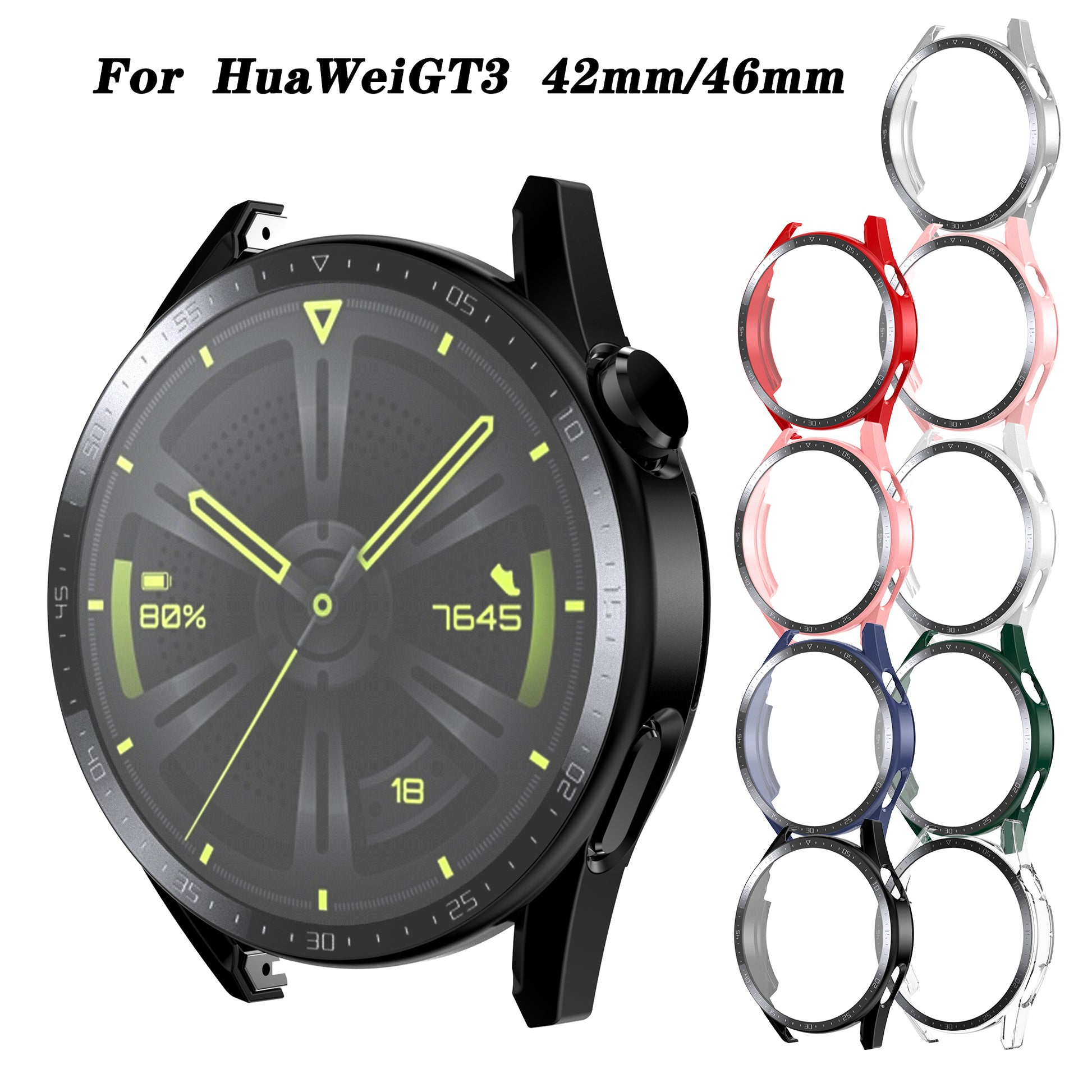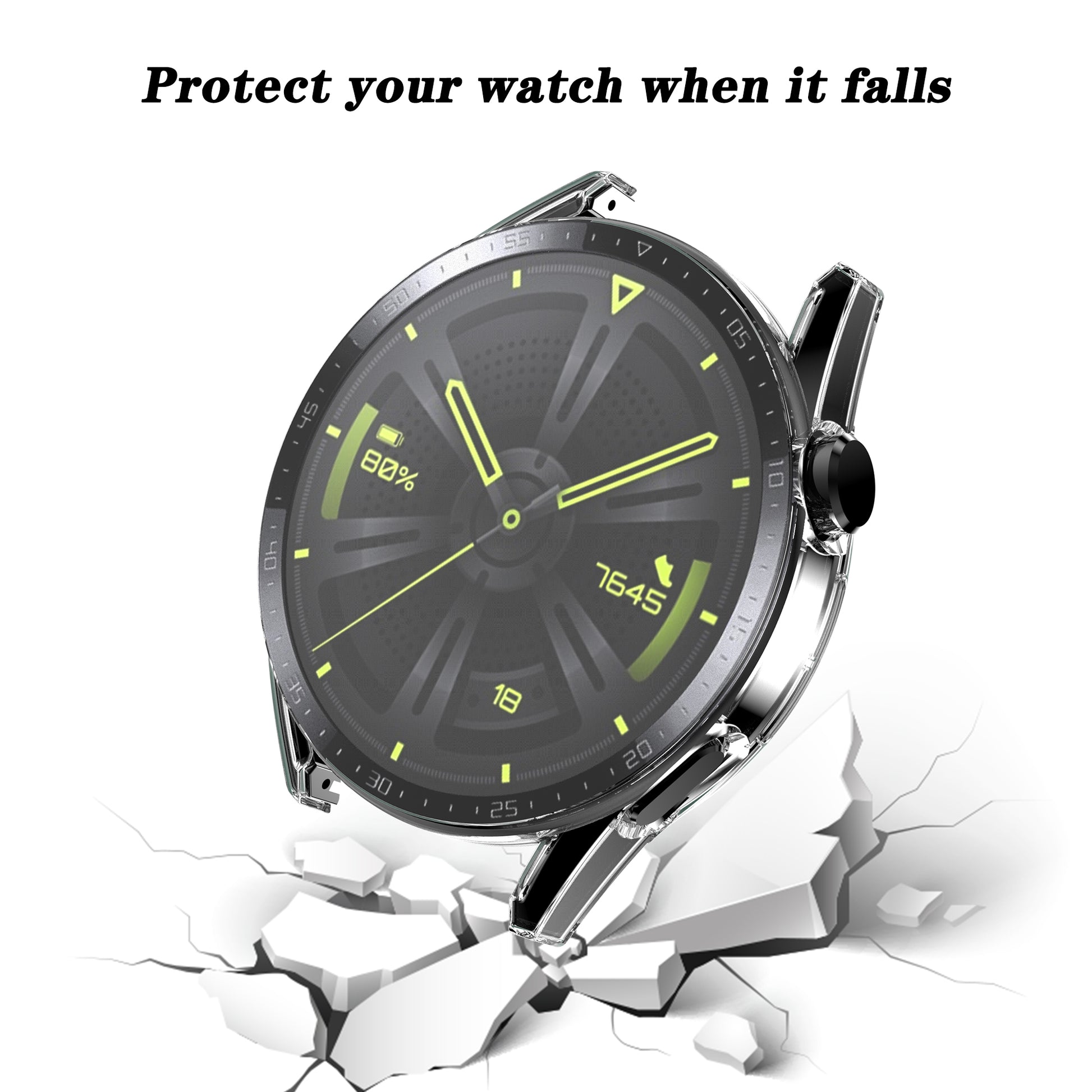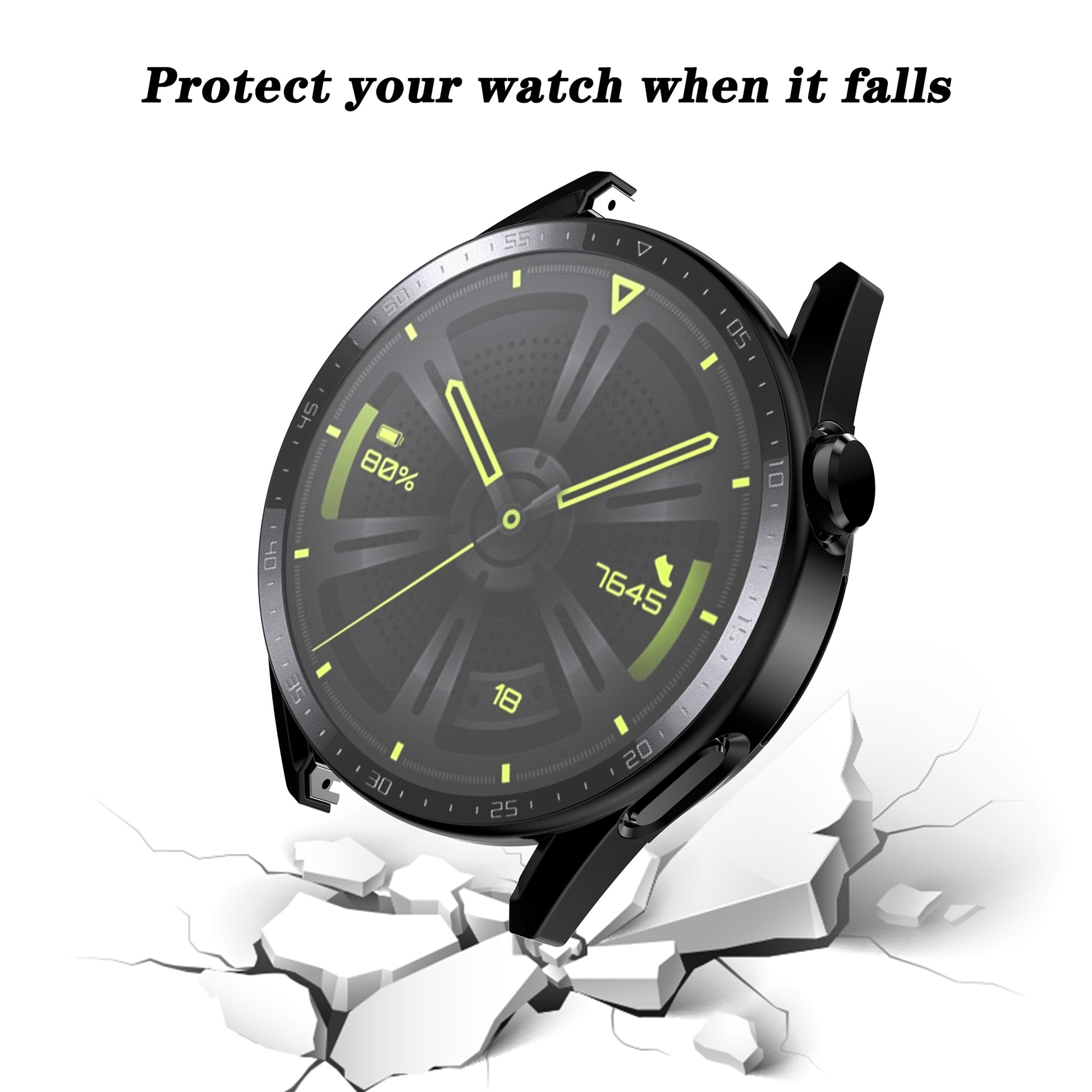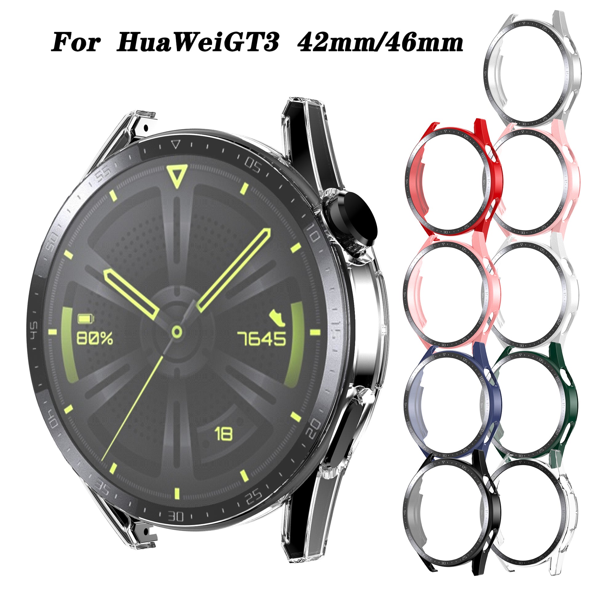 For Huawei Watch GT 3 46mm Hard PC Matte Smart Watch Case+HD Tempered Glass Dial Plate Design Screen Protector