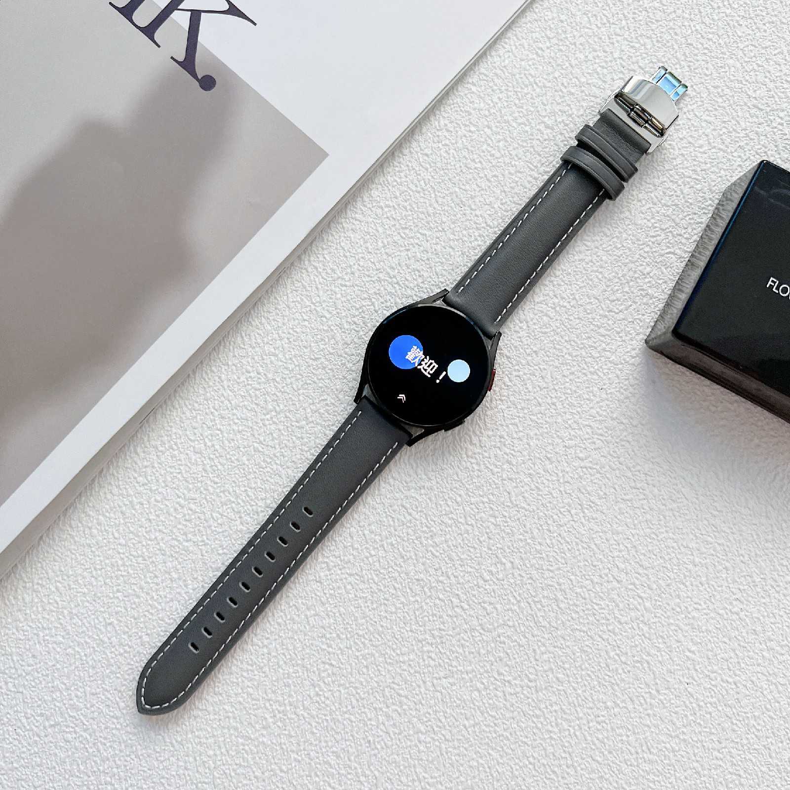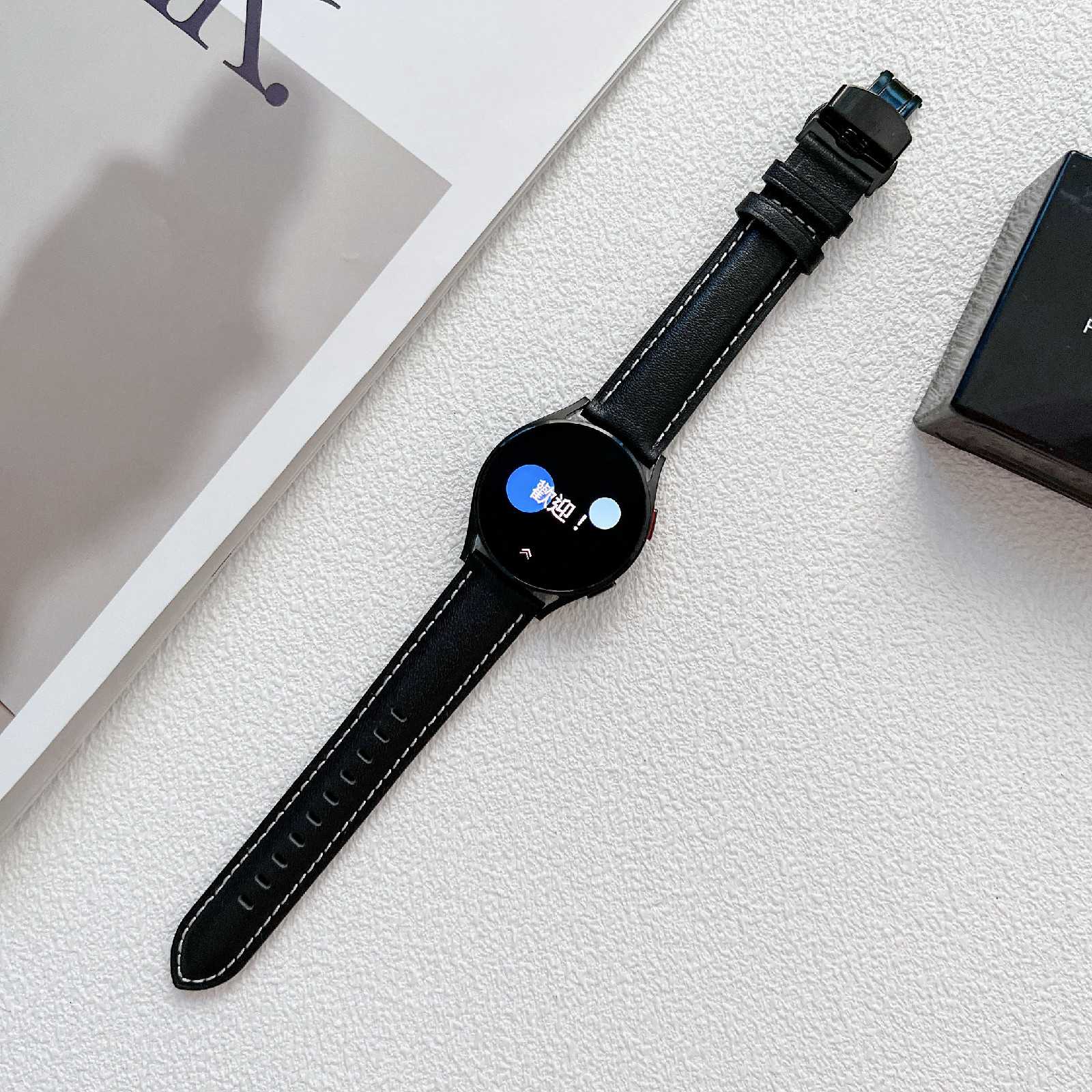 For Huawei Watch GT 3 Pro 46mm/Garmin Venu 2 22mm Stitching Line Genuine Leather Watch Band Strap Replacement