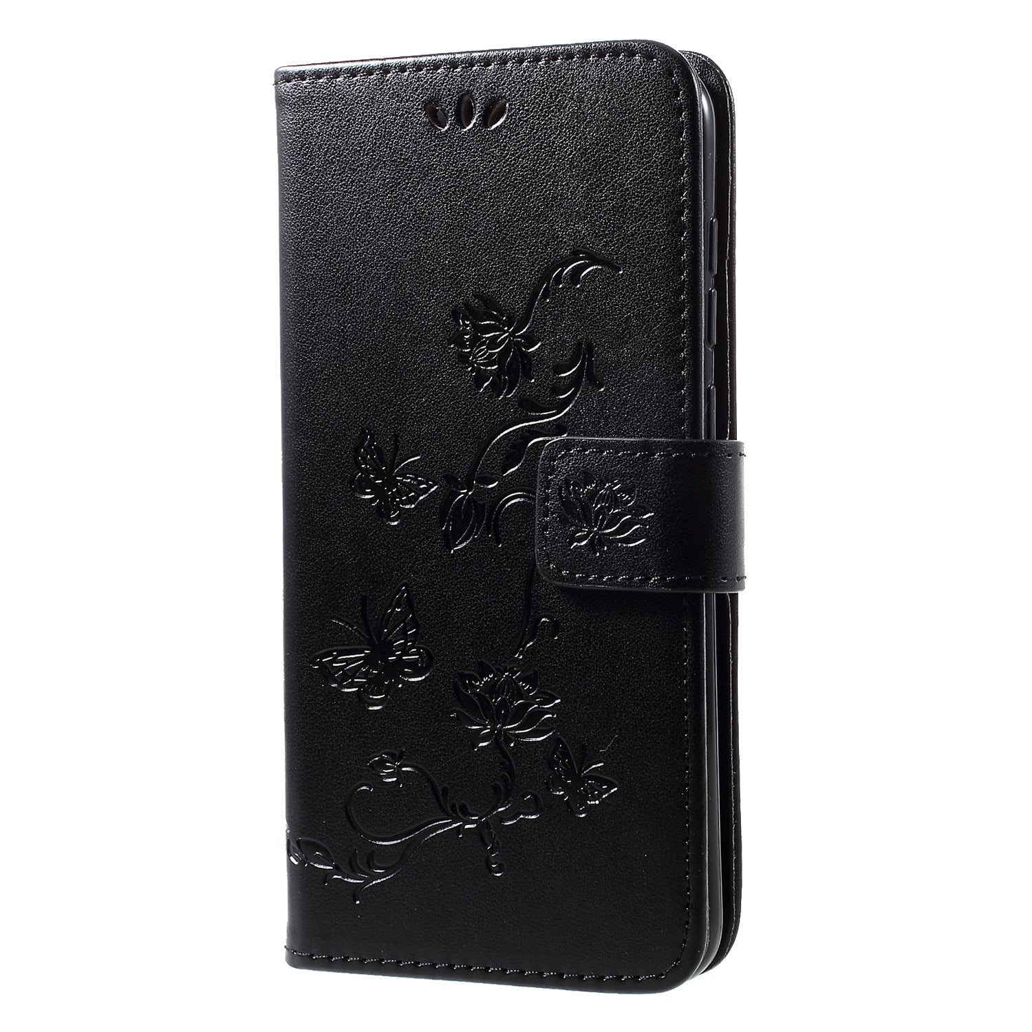 For Huawei Y7 (2019) Imprint Butterfly Flower Leather Phone Case [Wallet Stand]