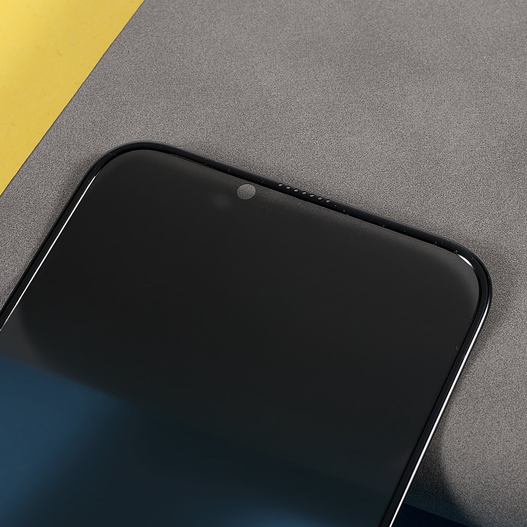 For i iPhone 13 / 13 Pro / 14 Matte Anti-spy Full Glue Silk Printing Full Coverage Tempered Glass Screen Protector Film with Dust-proof Net
