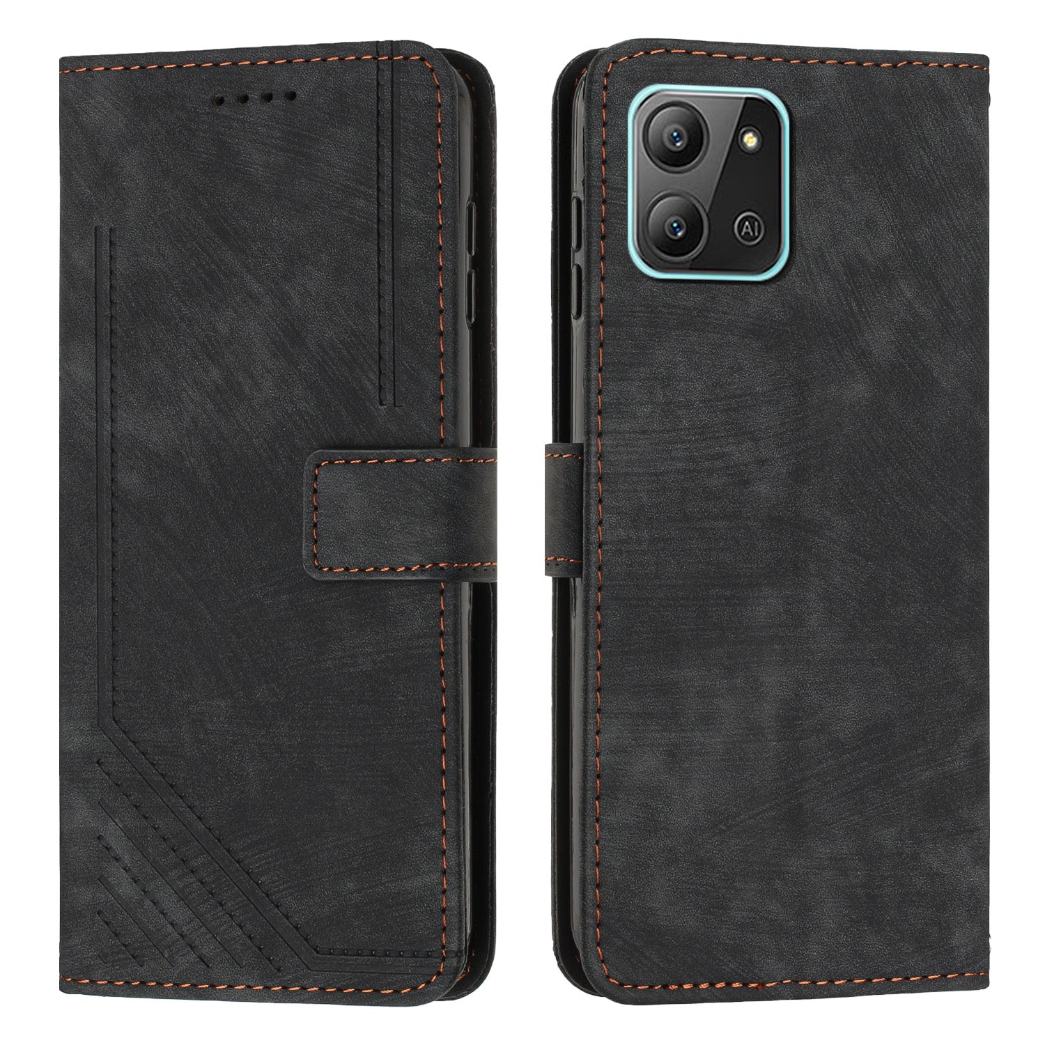 For Infinix Hot 11 2022 4G Flip PU Leather Case Lines Imprinted Stand Wallet Phone Cover