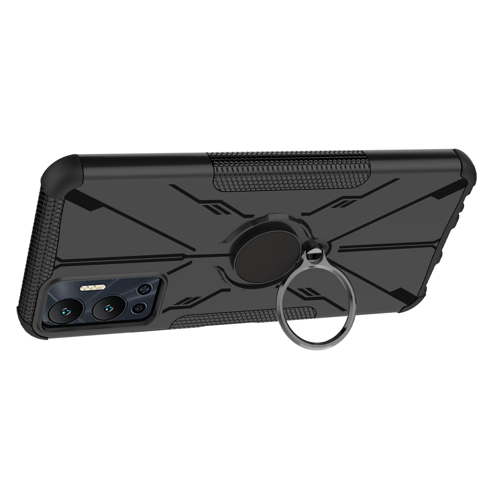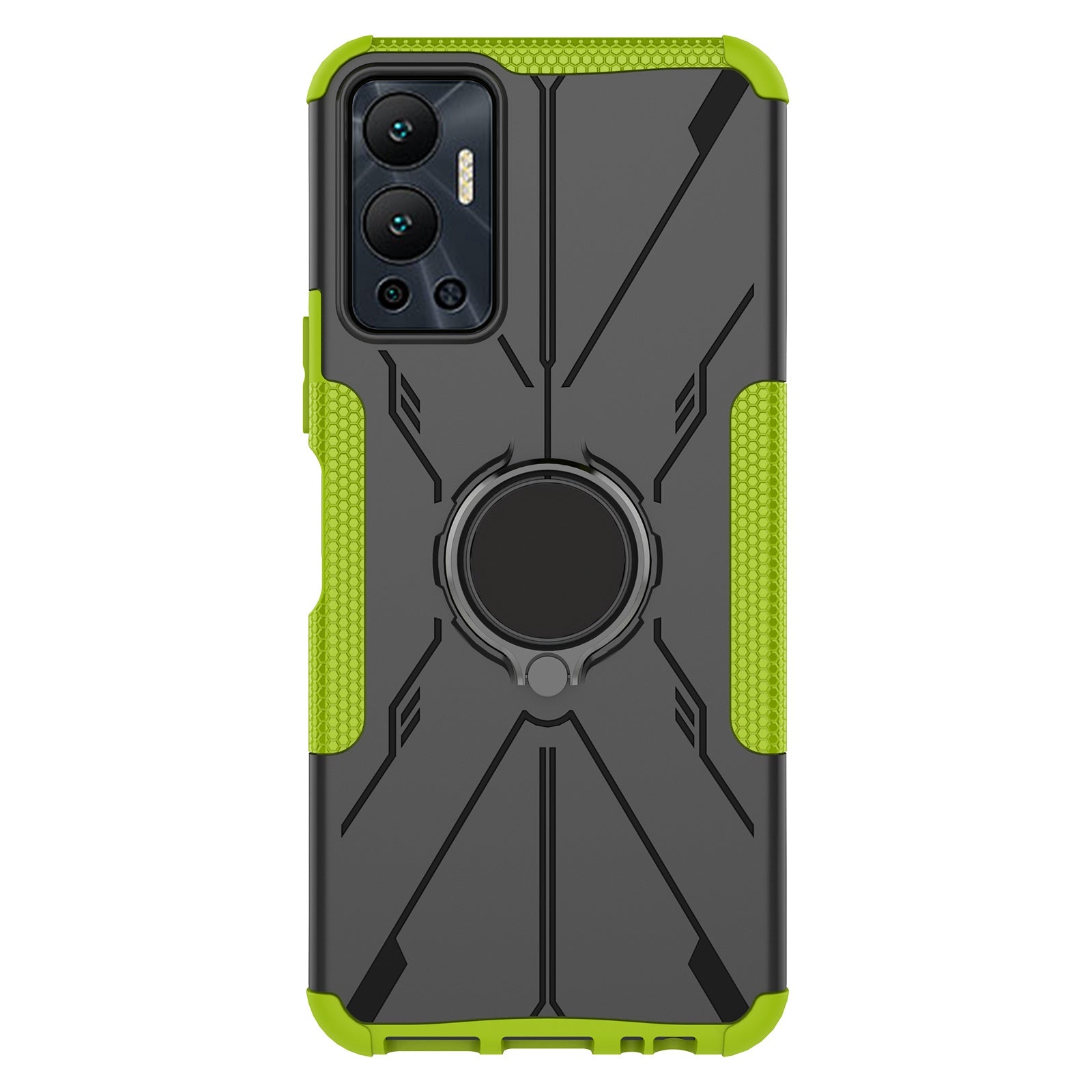 For Infinix Hot 12 4G Hard PC Soft TPU Impact-Resistant Cover Ring Car Mount Kickstand Shockproof Protective Phone Case