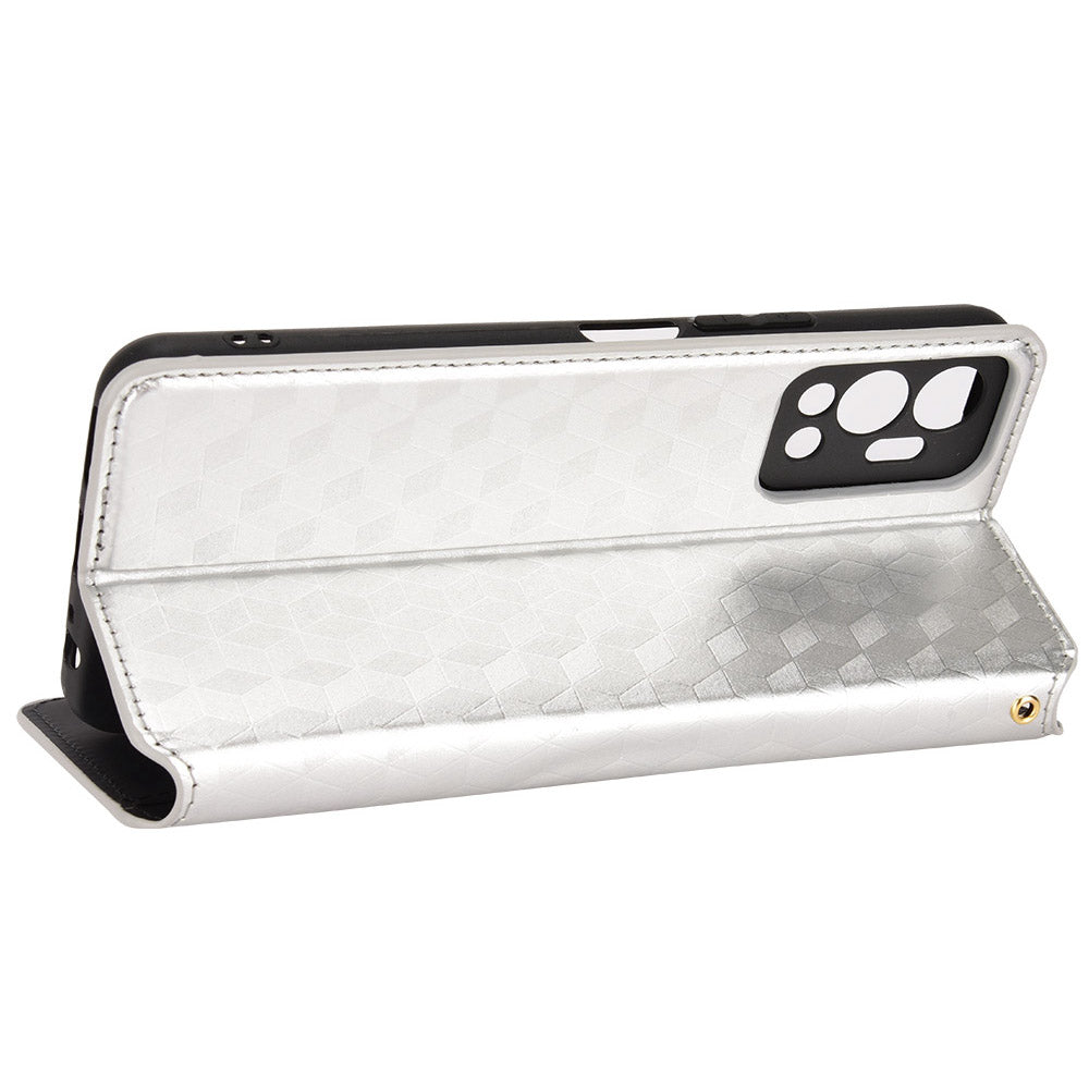 For Infinix Hot 12 4G X6817 PU Leather Flip Wallet Case Stand Feature Imprinted Rhombus Pattern Magnetic Auto Closing Cover