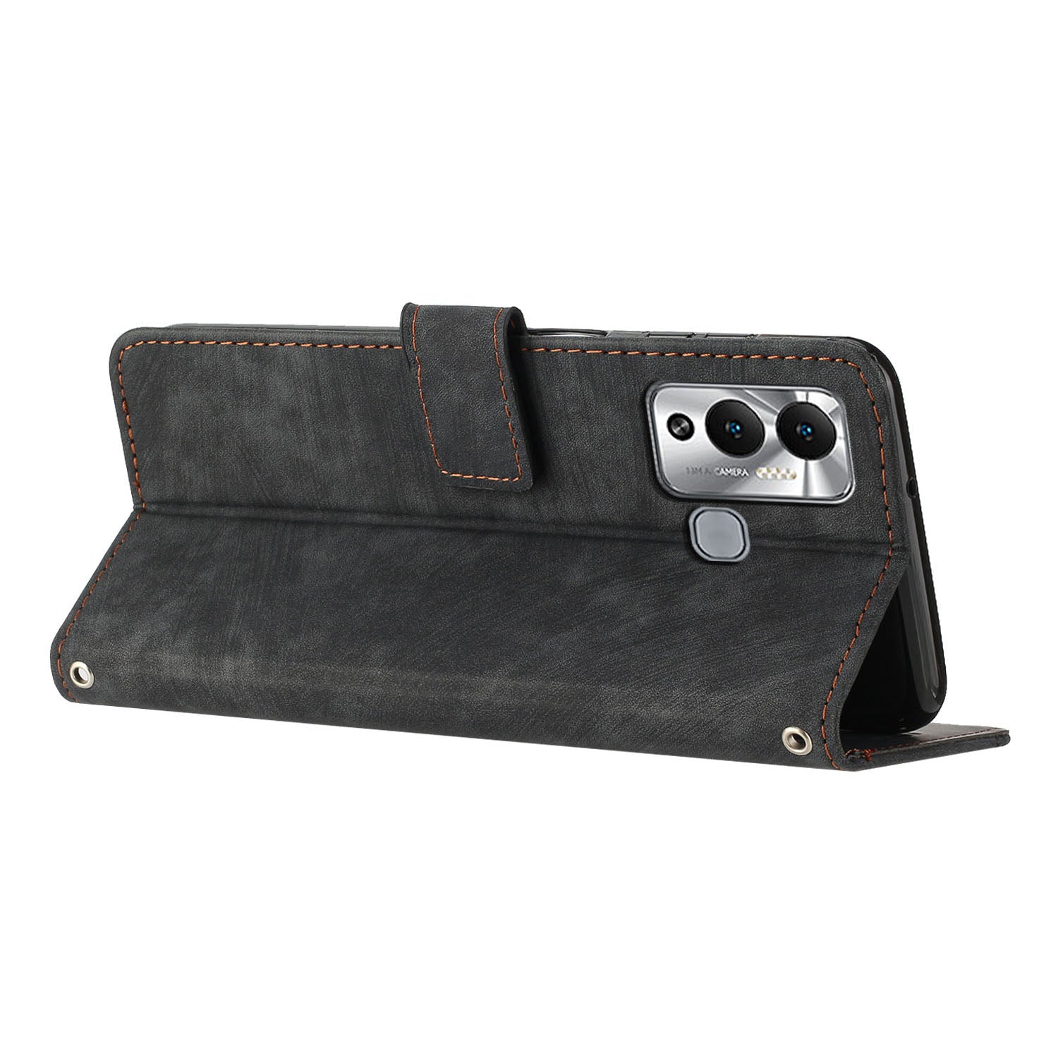 - The magnetic clasp closes easily and firmly to keep the phone, cash and cards in one place neatly and securely