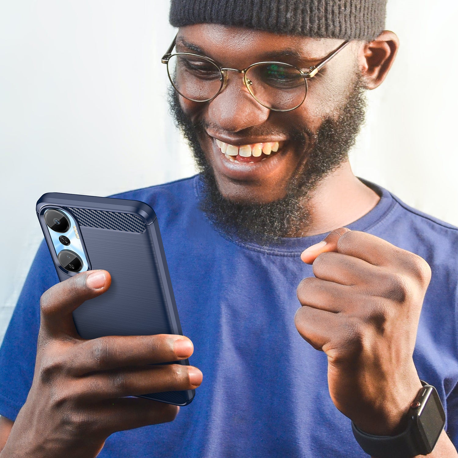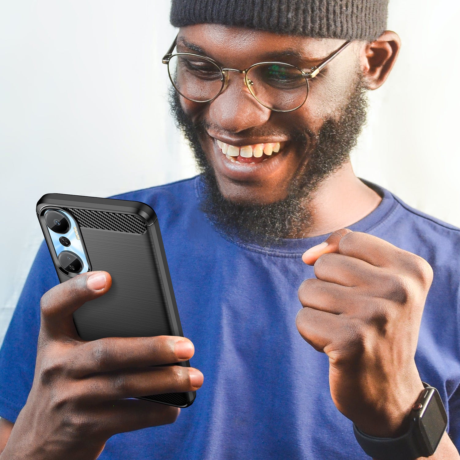 For Infinix Hot 20 4G Drop Resistant Carbon Fiber Texture Phone Case Soft TPU Brushed Surface Protective Cover