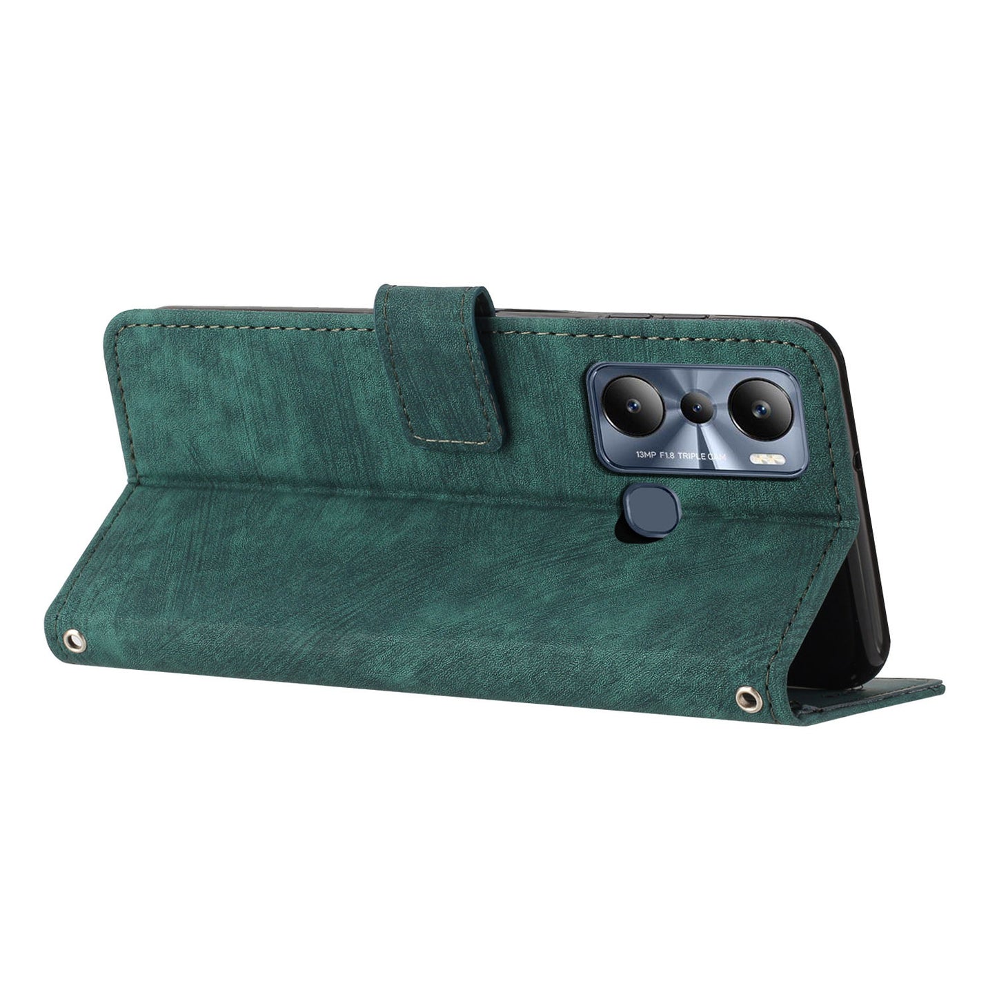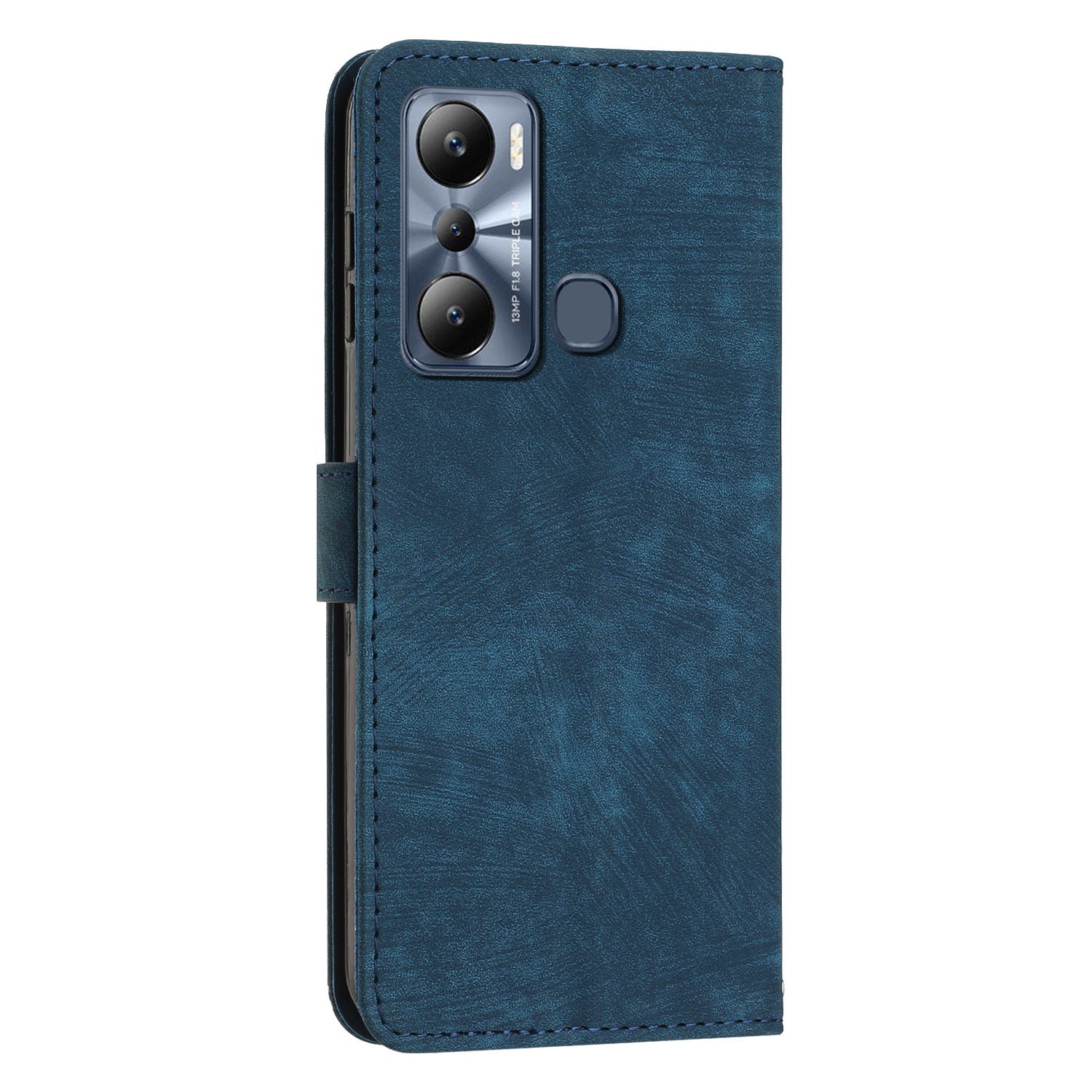 For Infinix Hot 20 Play 4G PU Leather Wallet Case Lines Imprinted Stand Skin-touch Phone Cover