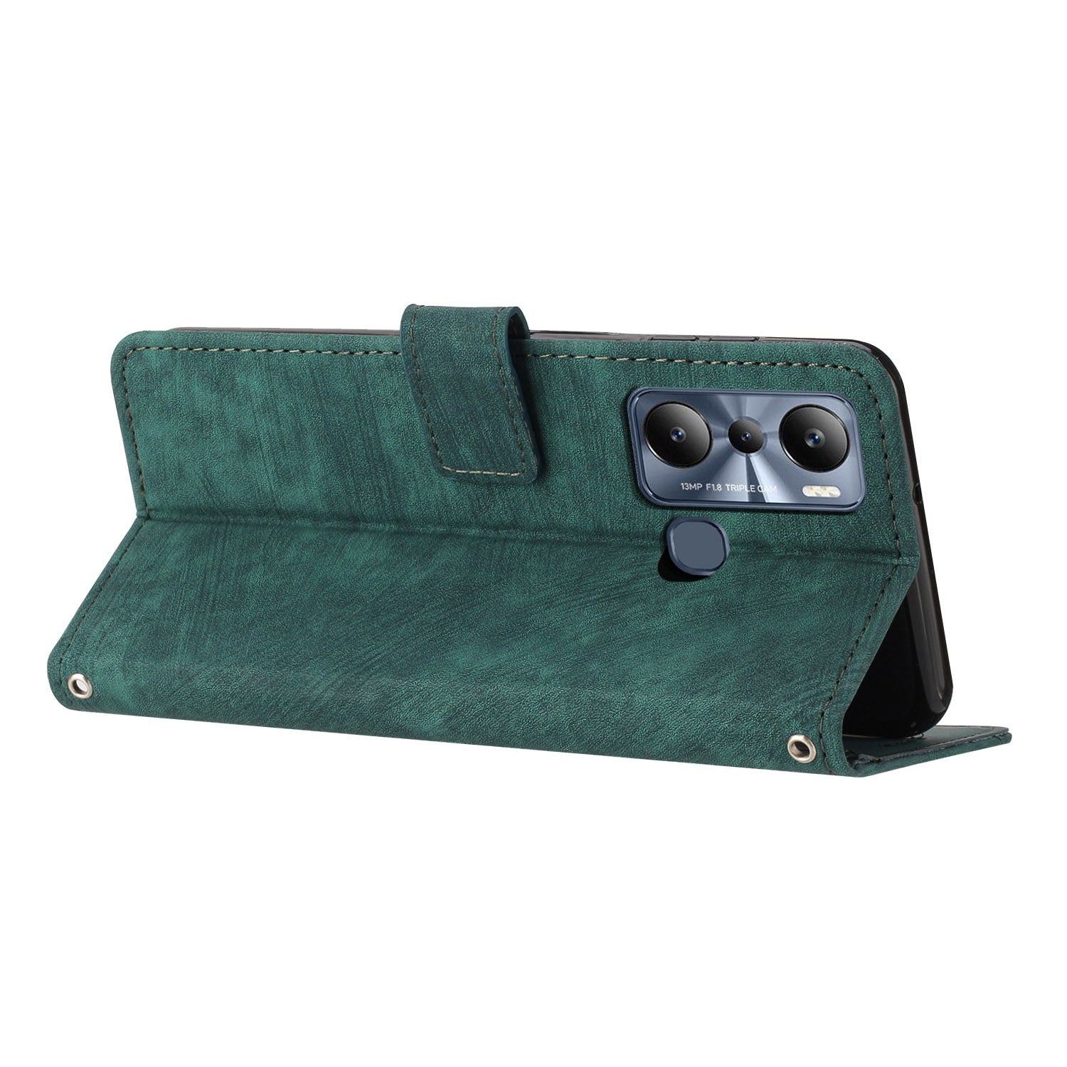 For Infinix Hot 20i 4G Stand PU Leather Case Skin-touch Lines Imprinted Phone Wallet Cover
