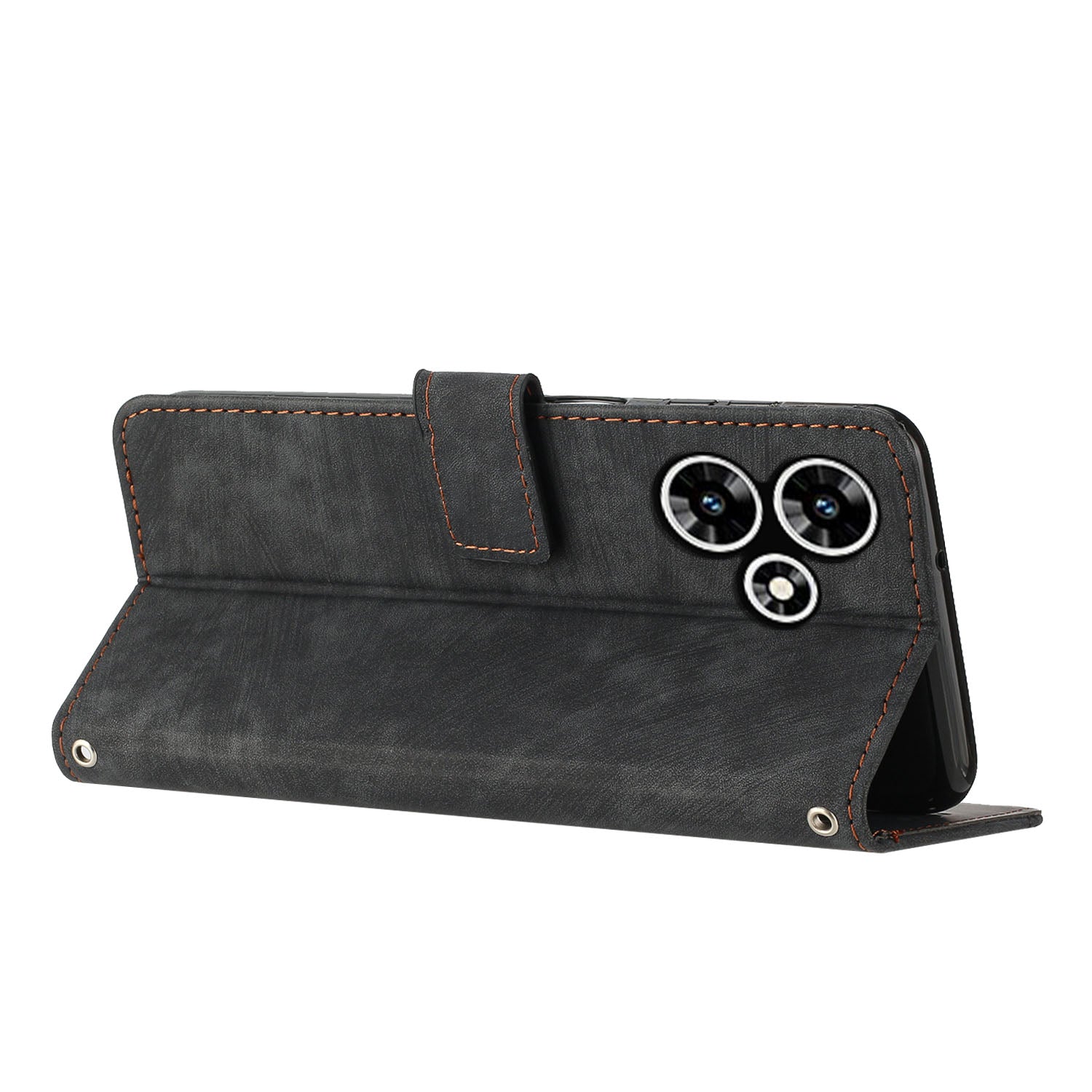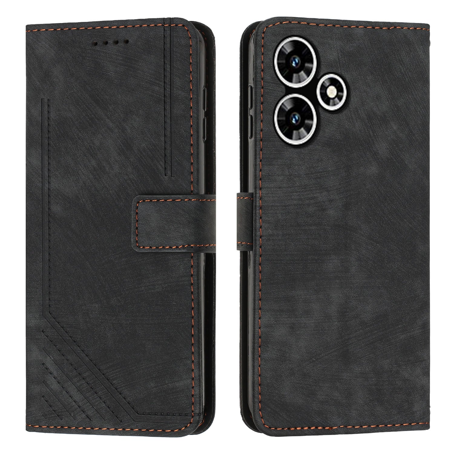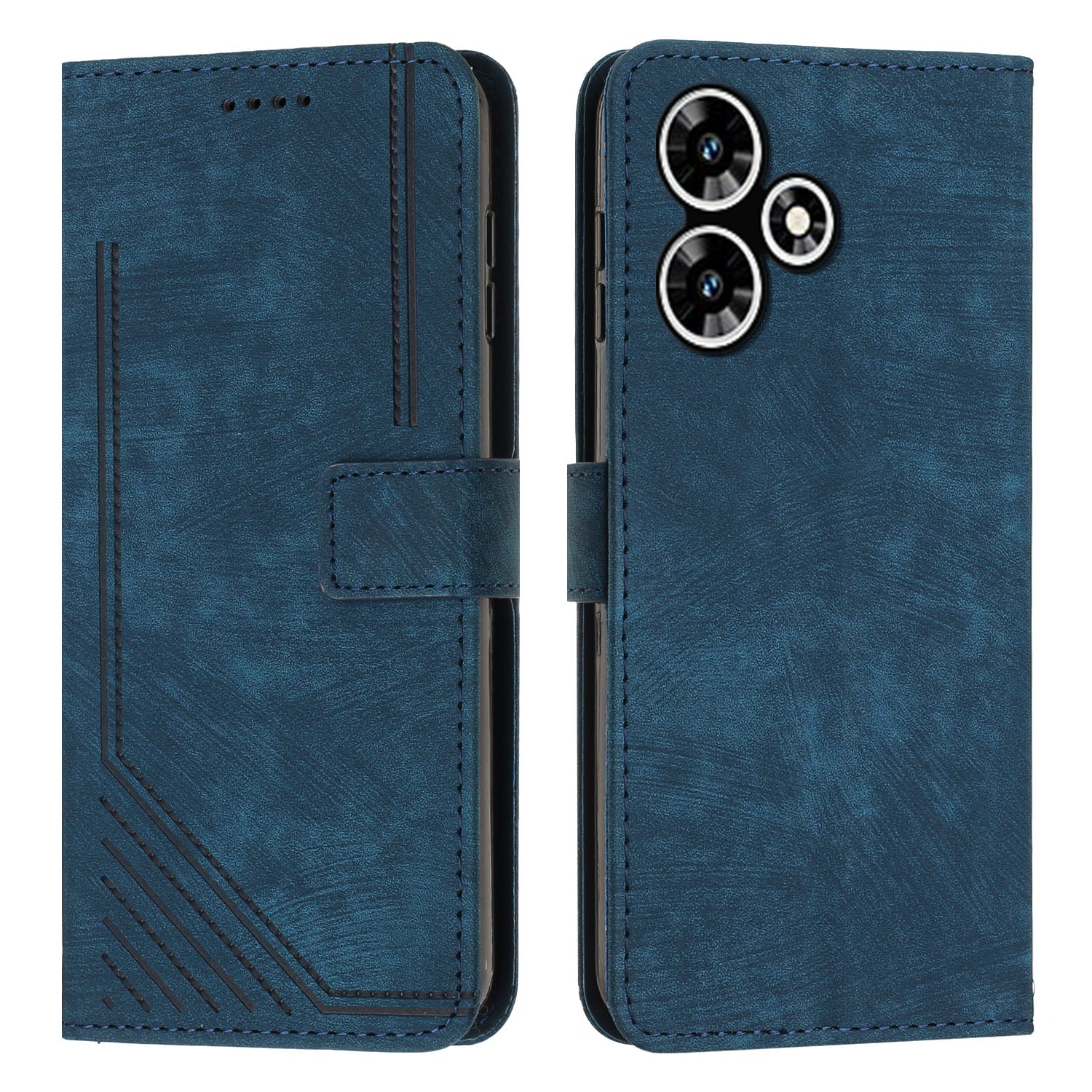 For Infinix Hot 30 Play NFC 4G Stand Wallet Phone Case PU Leather Lines Imprinted Cover with Shoulder Strap