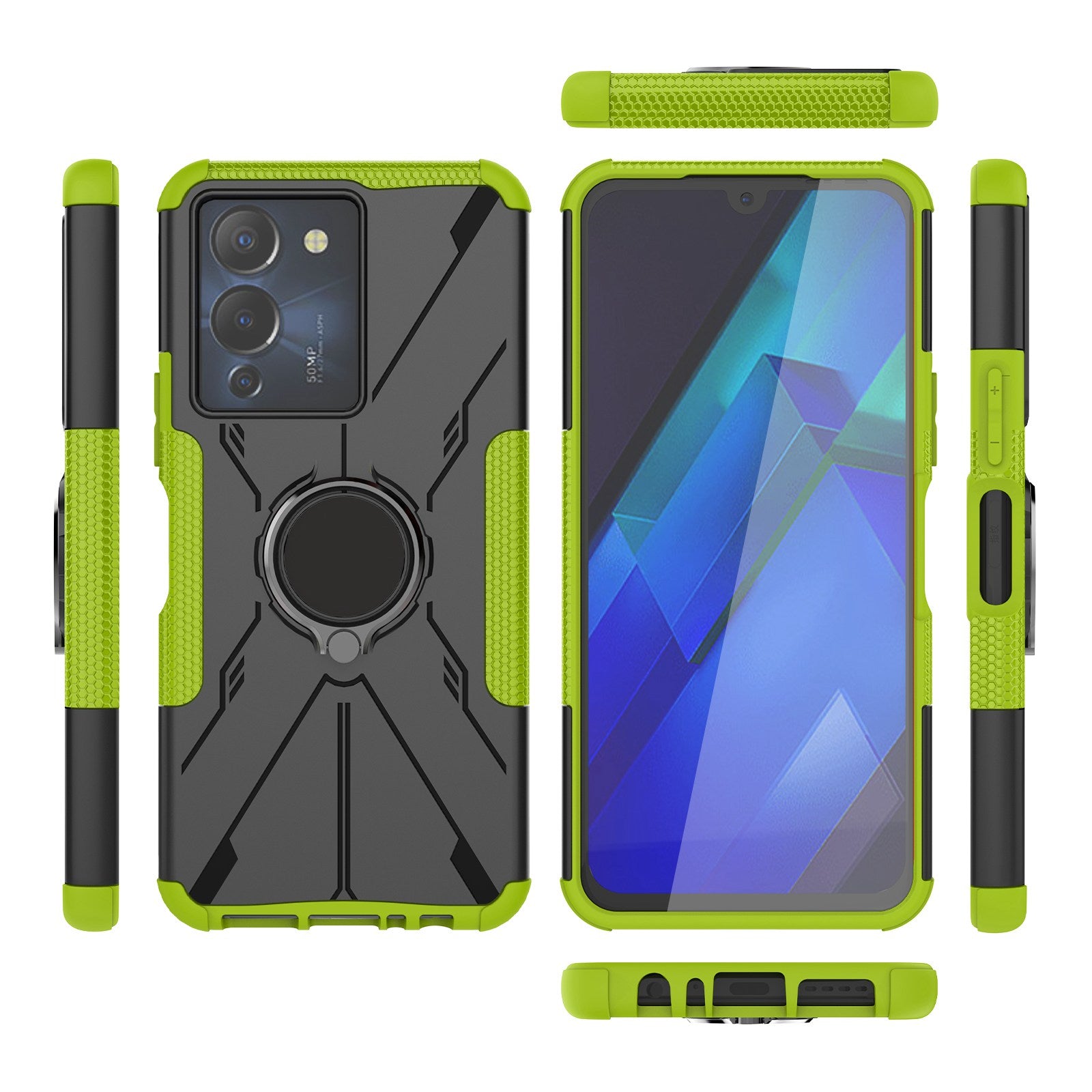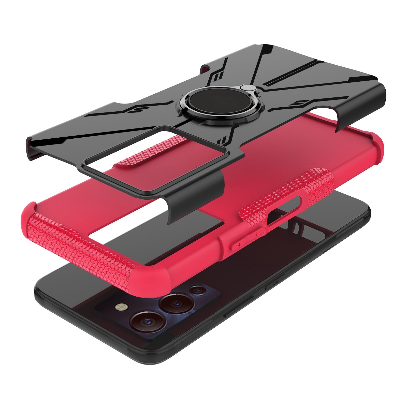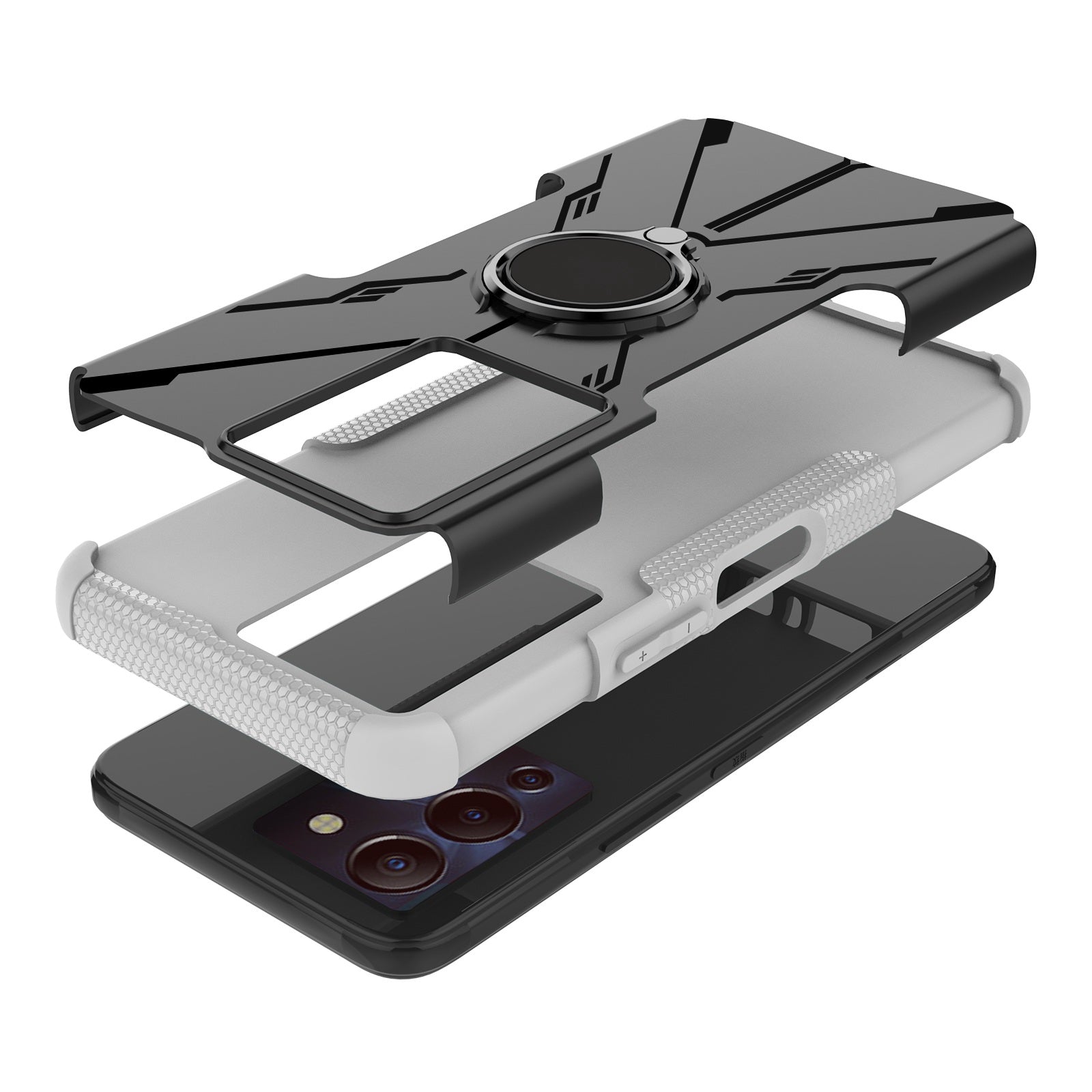 For Infinix Note 12 G96 4G X670 Hard PC Back Flexible TPU Shock-Absorbing Cover Ring Holder Kickstand Anti-Slip Phone Case Support Magnetic Car Mount