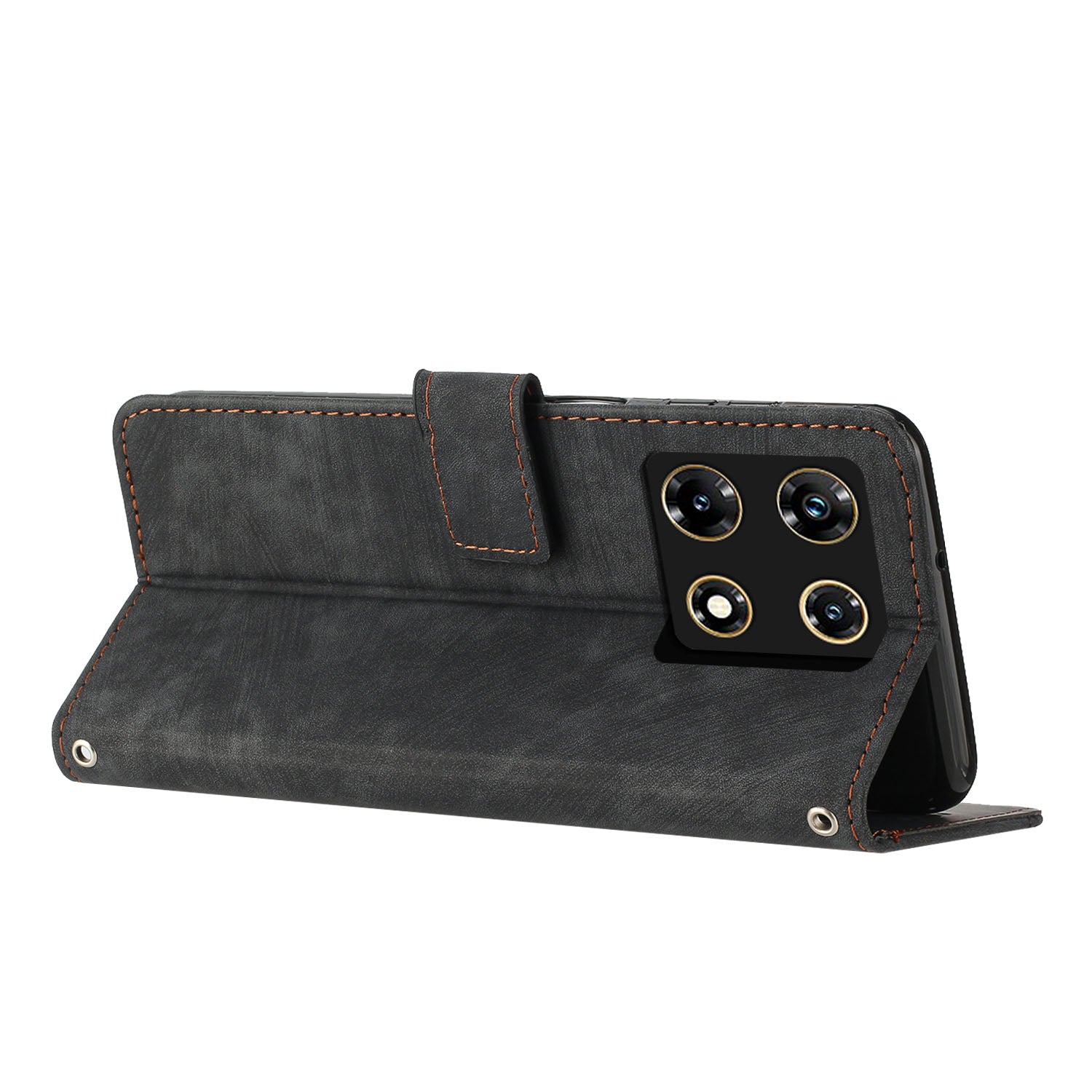 For Infinix Note 30 Pro 4G Stand PU Leather Wallet Case Skin-touch Imprinted Lines Phone Cover
