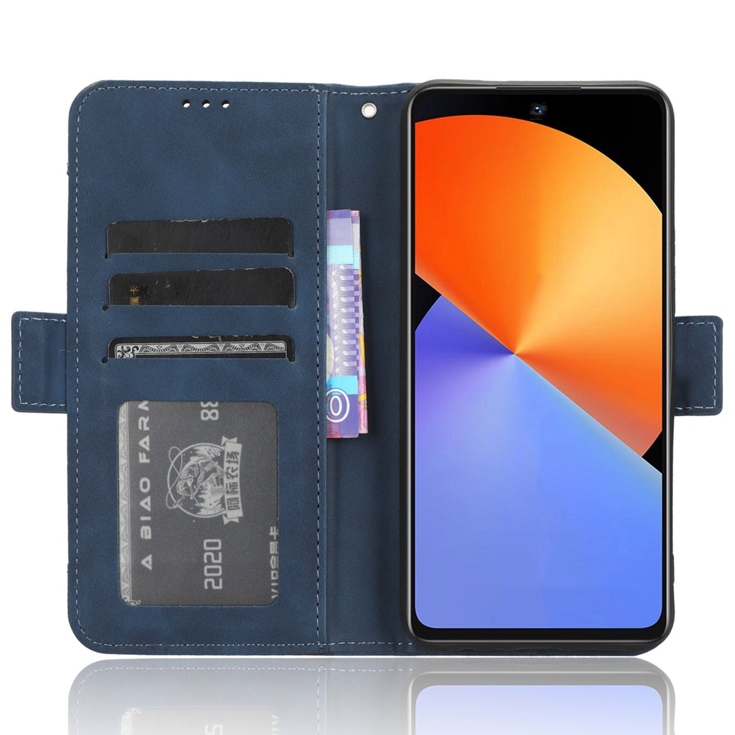 - Features 3 card slots and 1 cash pocket on the inside + separately taken-out card holder on the outside, really big capacity