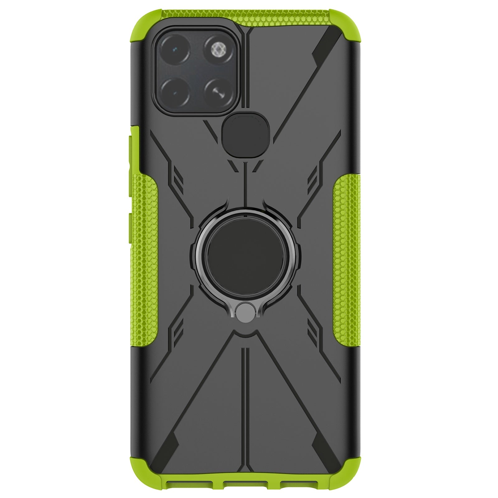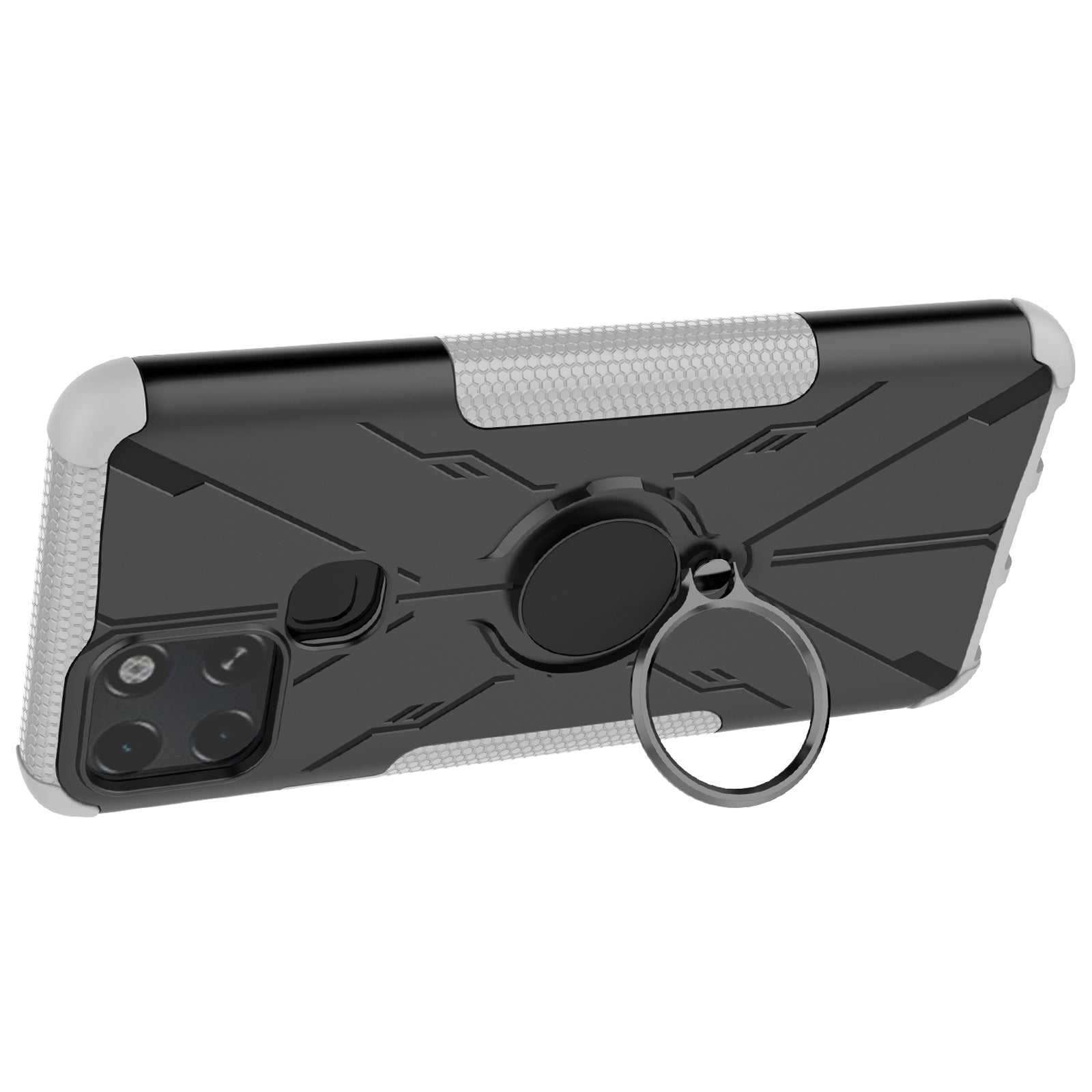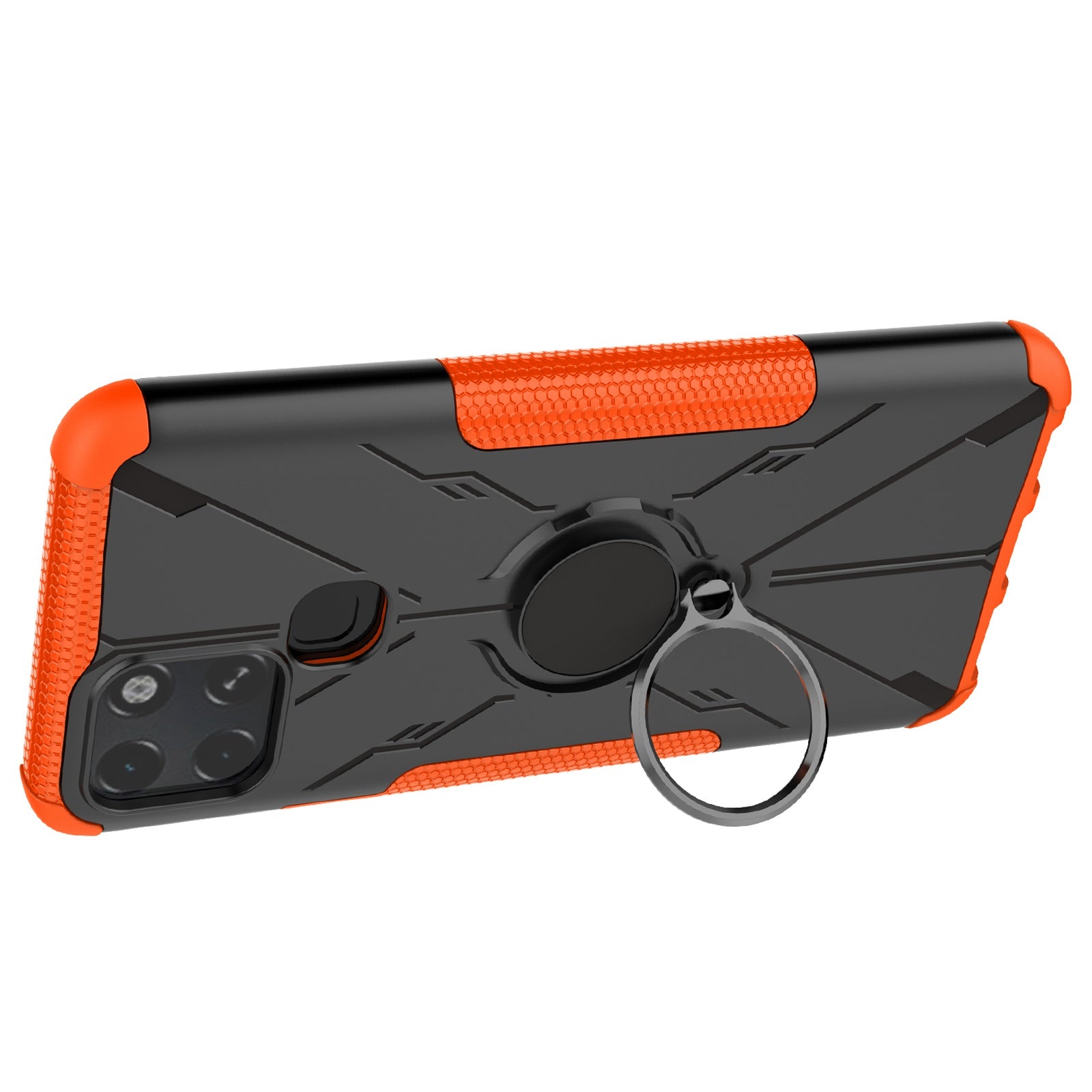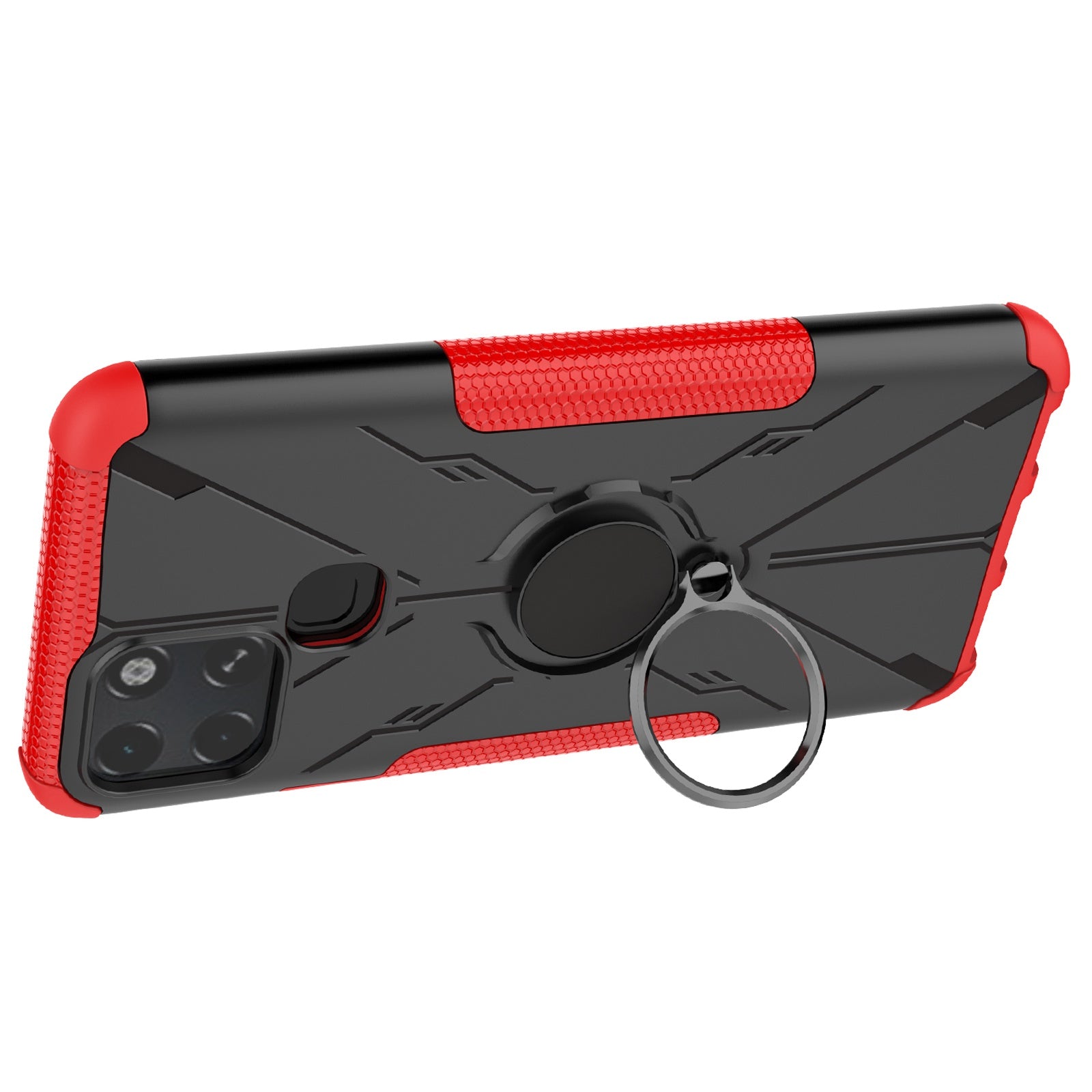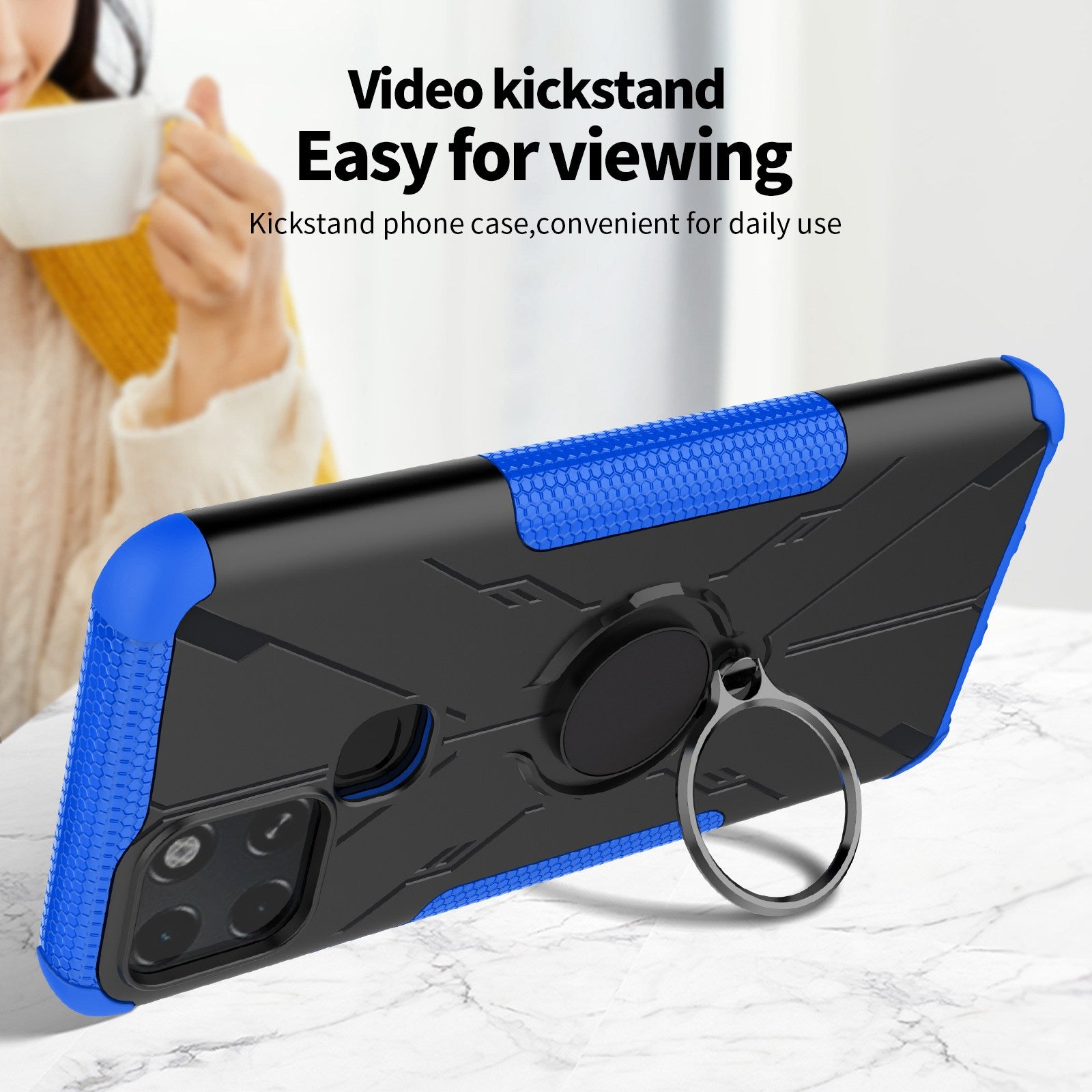 For Infinix Smart 6 Anti-drop Phone Case Ring Kickstand PC + TPU 2-in-1 Wear-resistant Honeycomb Texture Phone Back Cover