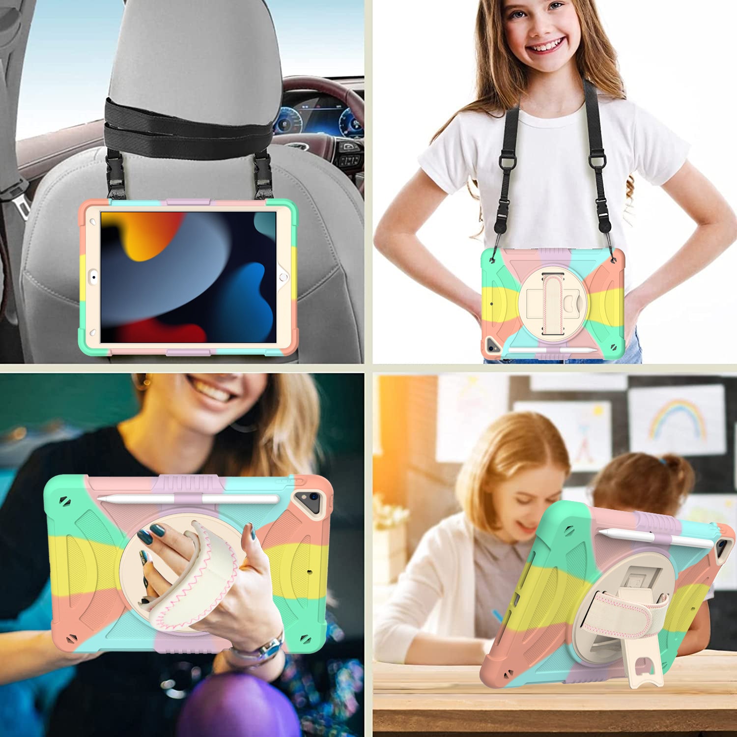For iPad 10.2 (2021) / (2019) / (2020) / Air 10.5 inch (2019) Shockproof Case Rotating Kickstand Silicone+PC Tablet Cover with Shoulder Strap