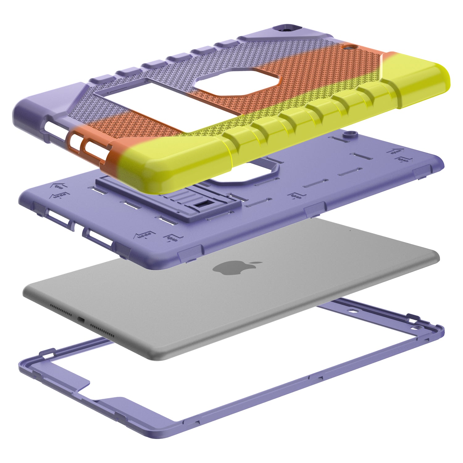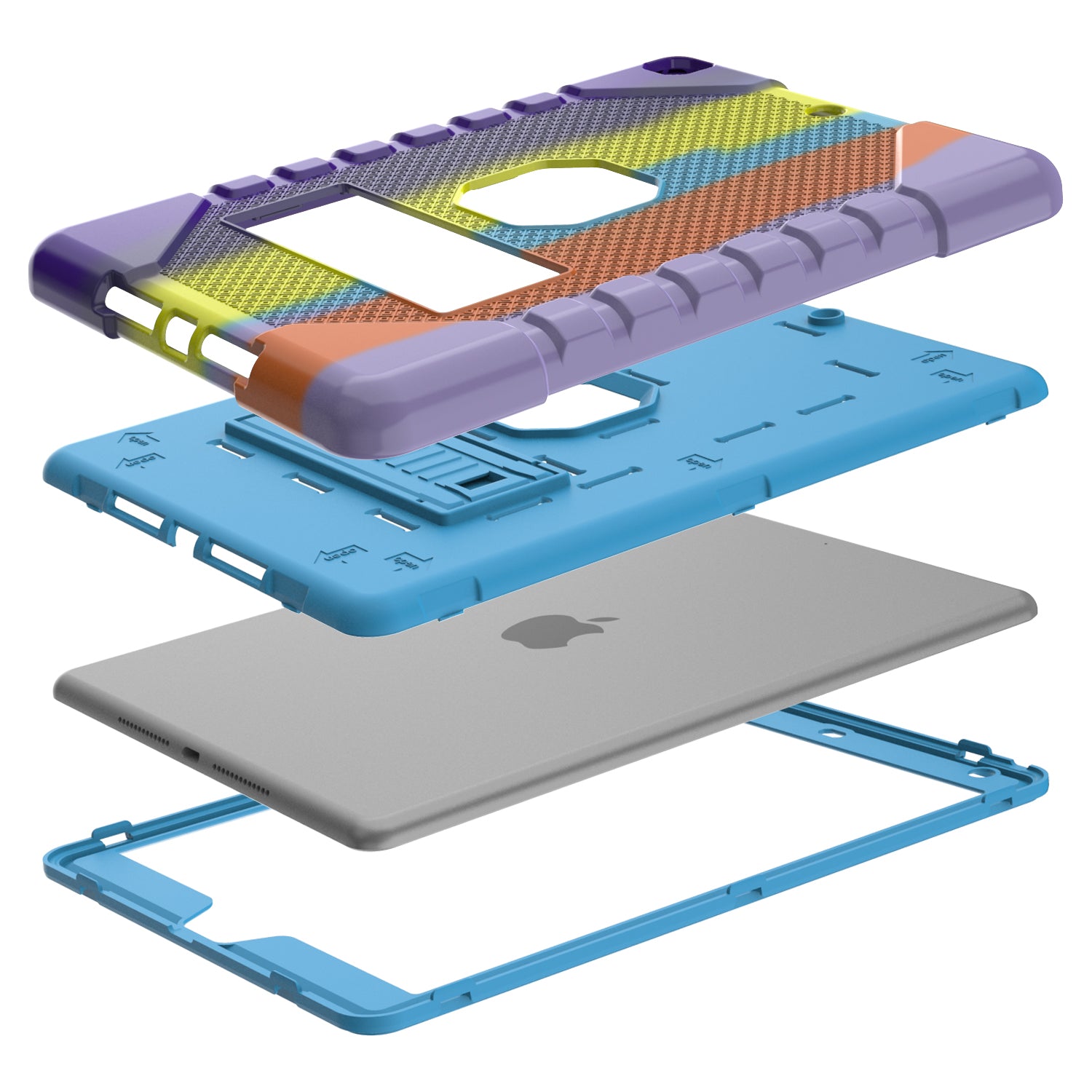 For iPad 10.2 (2021)/(2020)/(2019) Rainbow Design Tablet Cover Anti-fall Protection PC + Silicone Hybrid Case with Kickstand